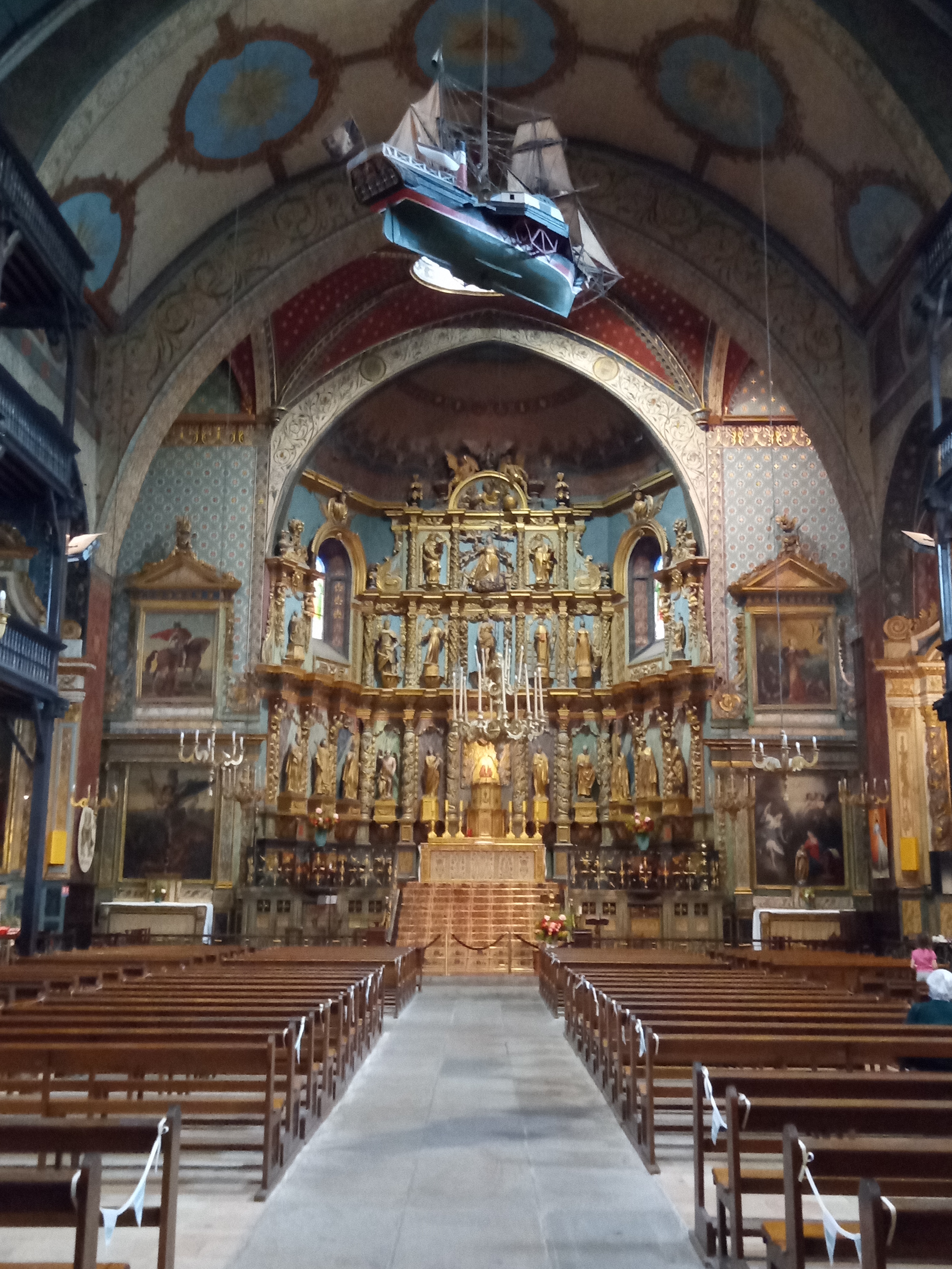 Une grande église avec le plus beau rétable de la Côte Basque et les étages de galeries latérales