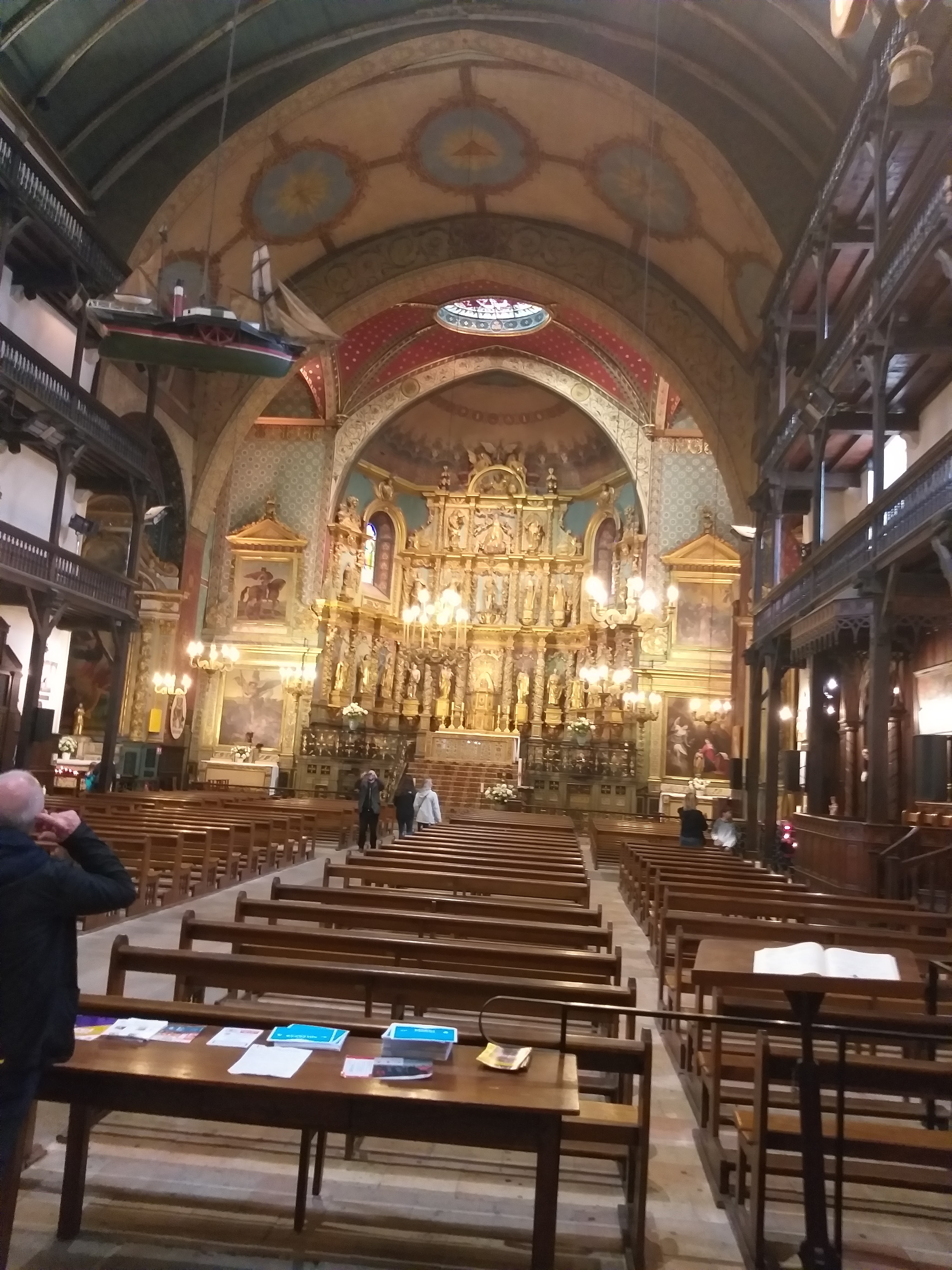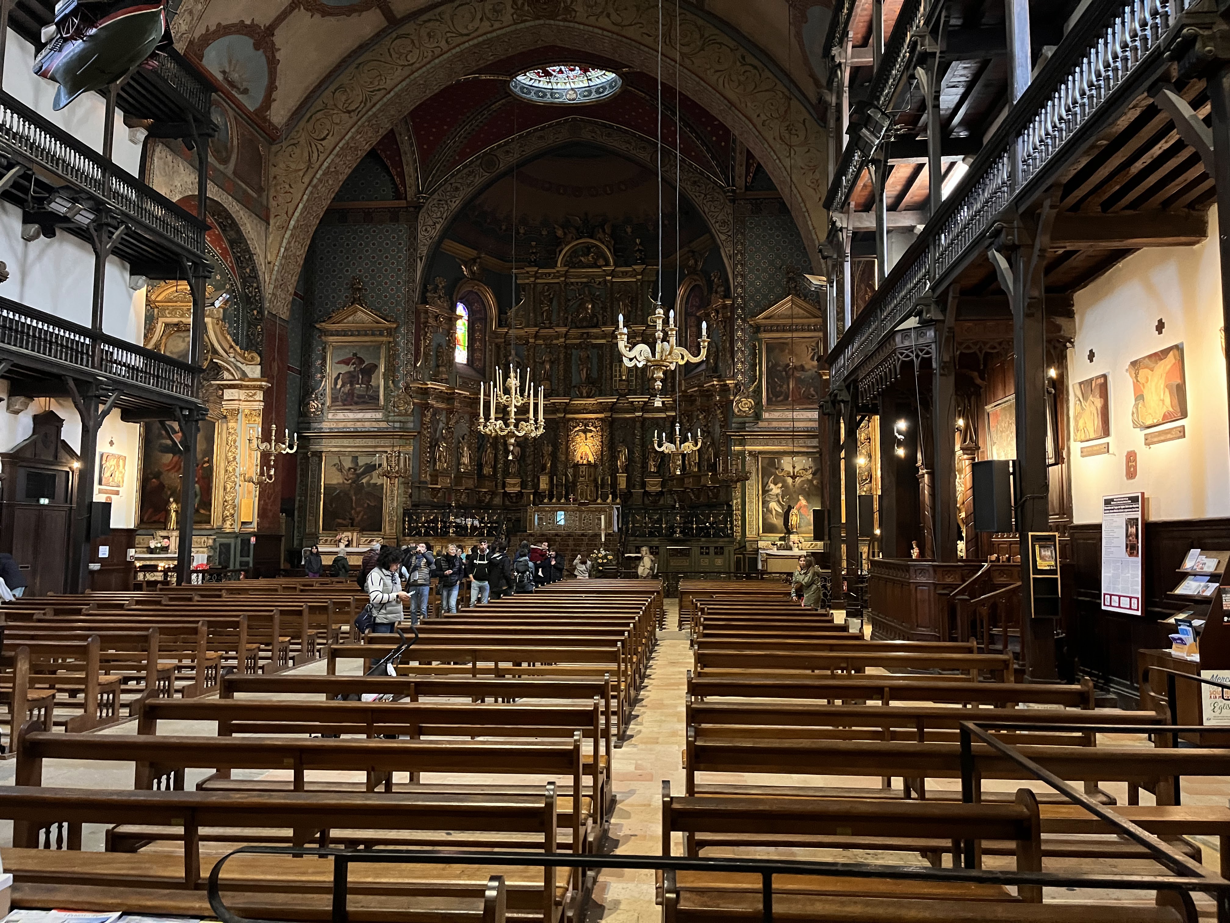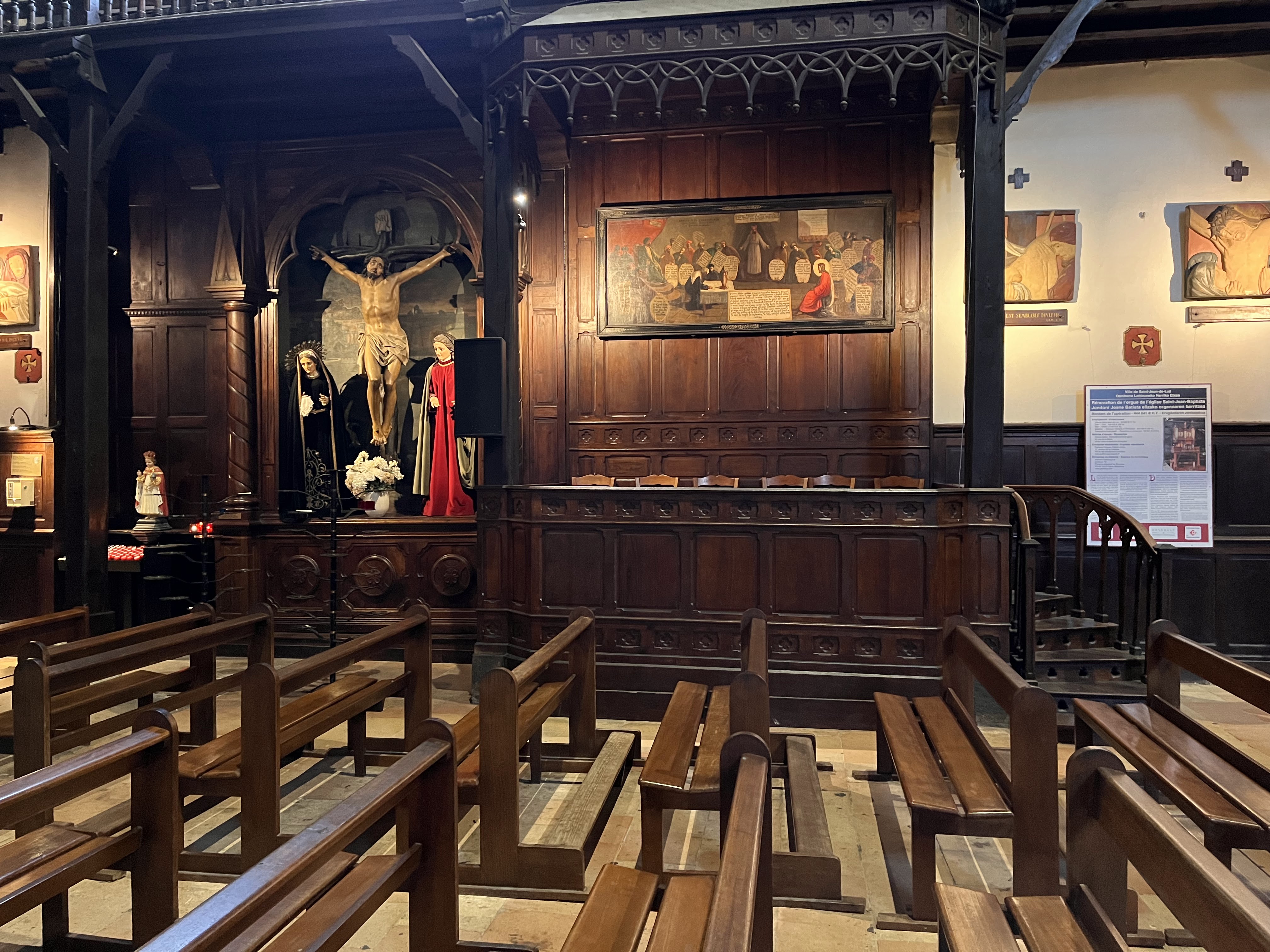 A voir absolument Un retable en bois dore vraiment superbe Un plan avec 3 balcons Dans le secteur du shopping de Saint Jean de Luz On voit vraiment qu'il y a eu un retour du passage du Roi, Louis XIV s'y est marie Les peintures encadrants les bous dores sont superbes