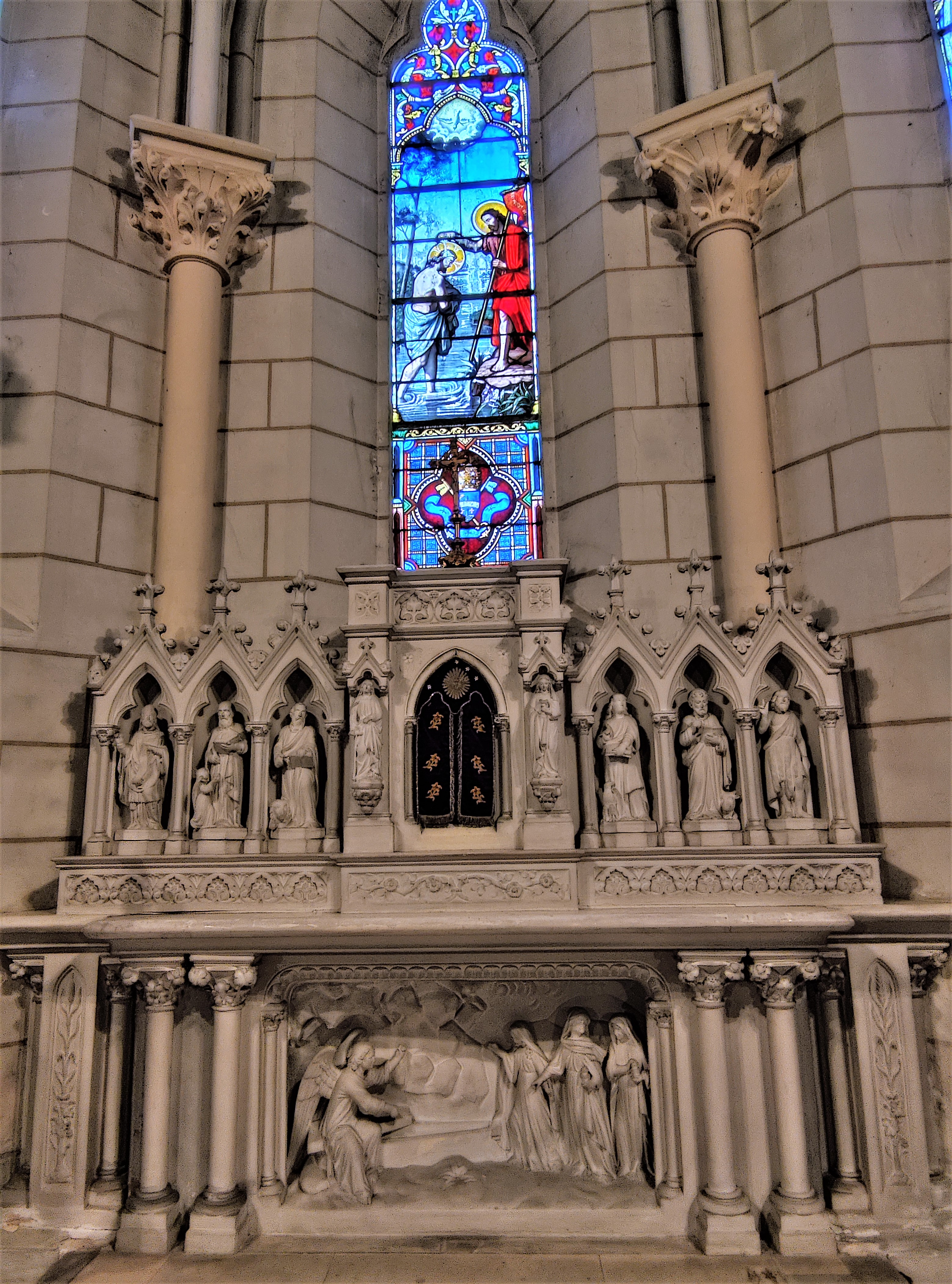 Église néo gothique du 19ème, elle est ouverte et accueillante. On entre par le clocher-porche dans un espace surmonté par la tribune, prolongé d'une nef simple à 3 travées. Cette nef s'ouvre sur un large transept de 2 travées, les croisillons sont prolongés d'absidioles. L'édifice est bien éclairé par de nombreuses baies pourvues de vitraux figuratifs. Peintures, statuaire, autels et vitraux sont autant d'éléments fort agréables à découvrir. Une belle église qui a remplacé un édifice roman dont les éléments du bâti ont été réemployés.