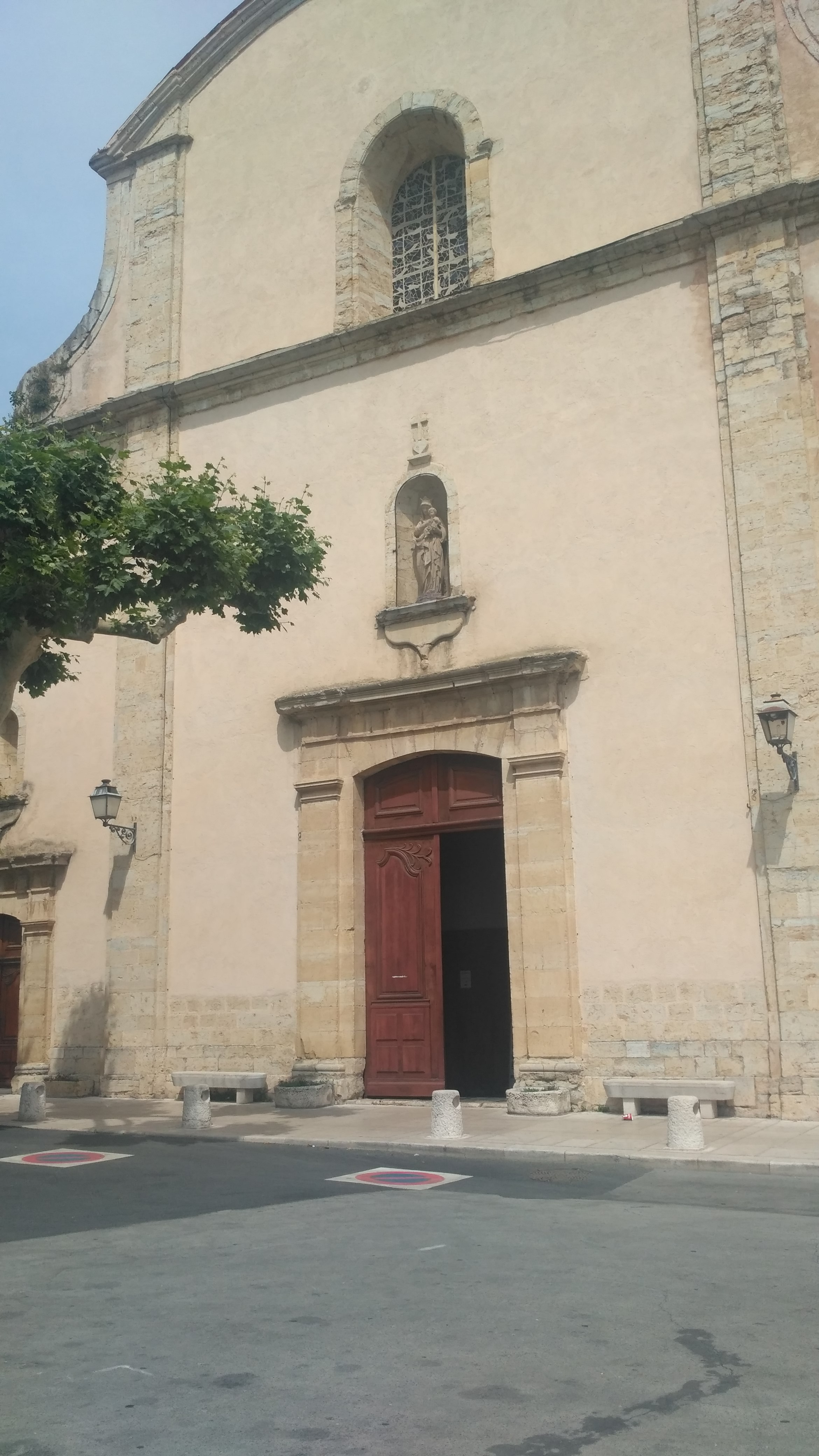 Belle vieille église. Chaque samedi a lieu un marché à l'ambiance provençale.