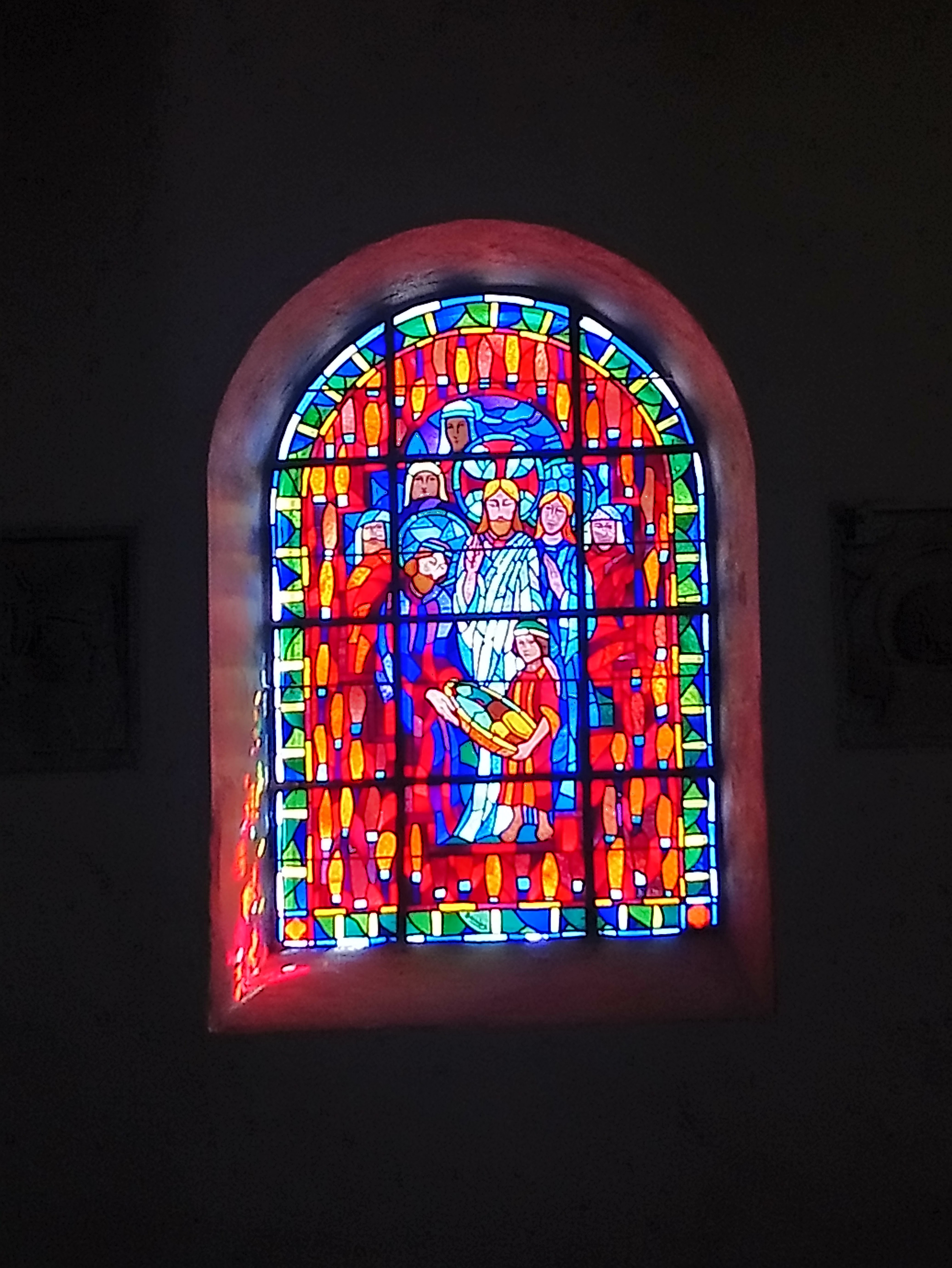 Petite église avec des moches vitraux modernes