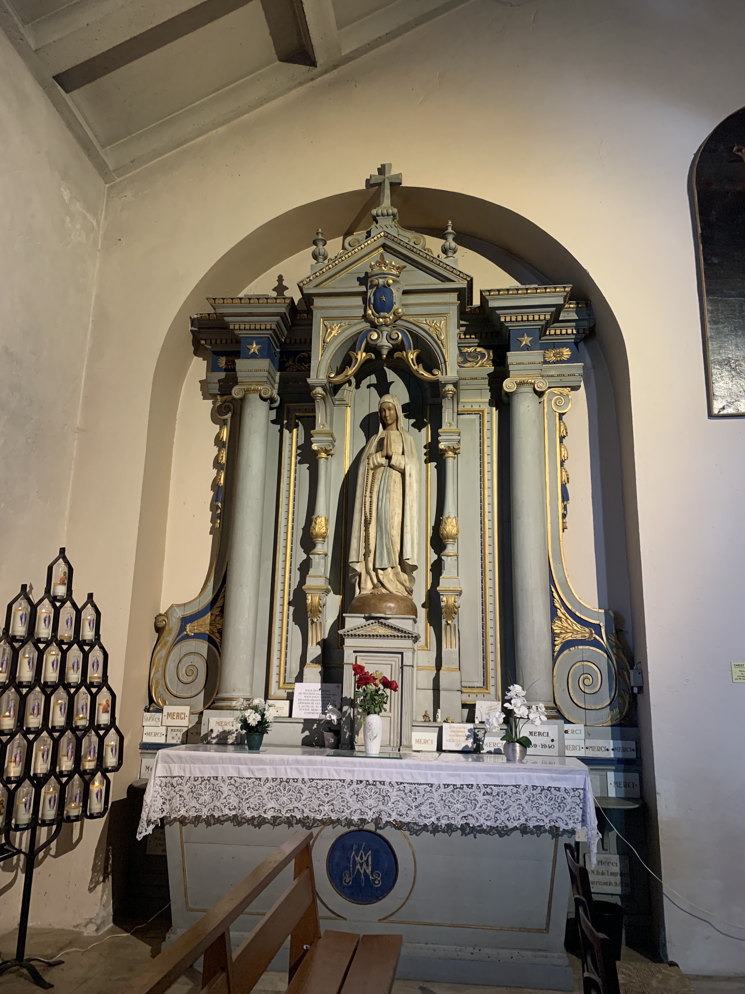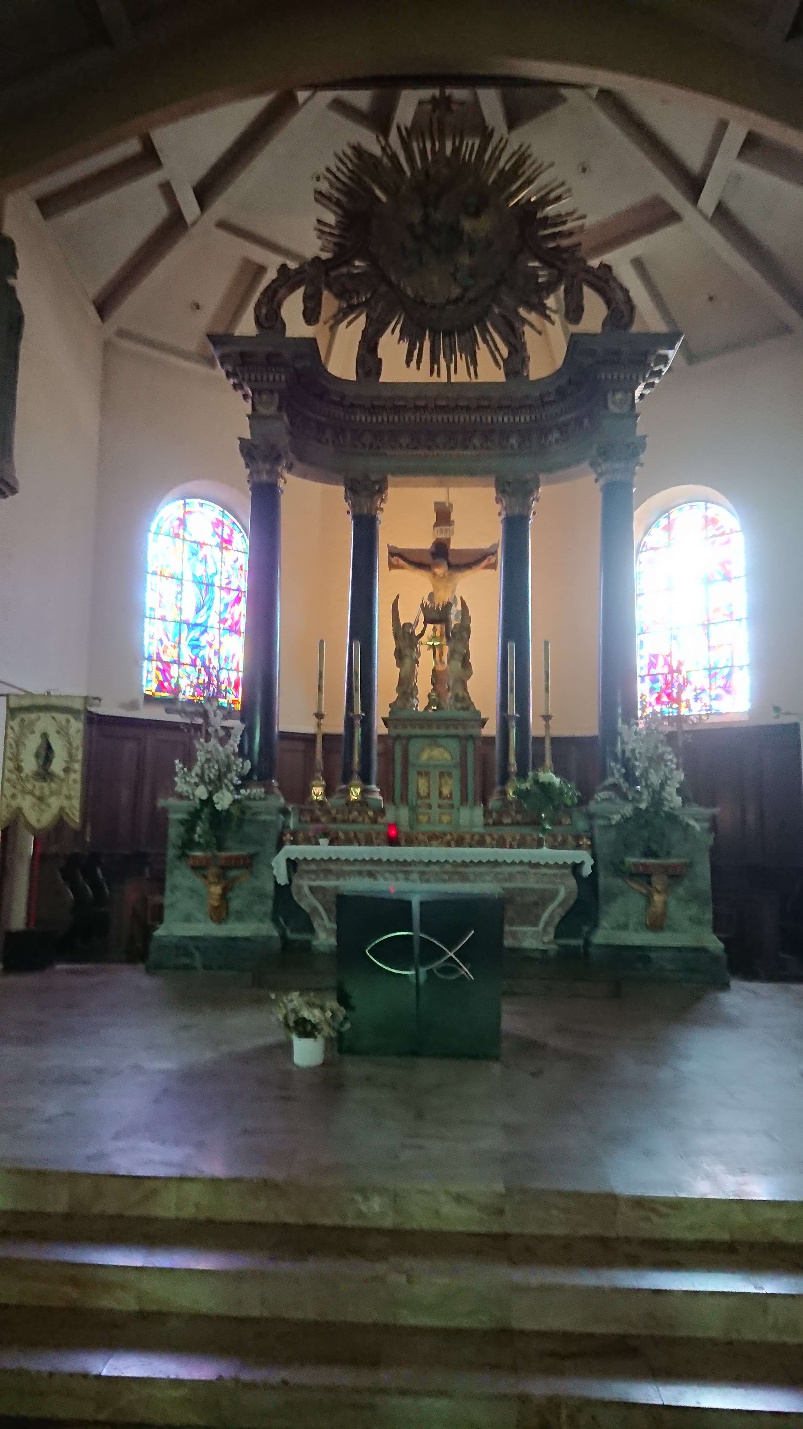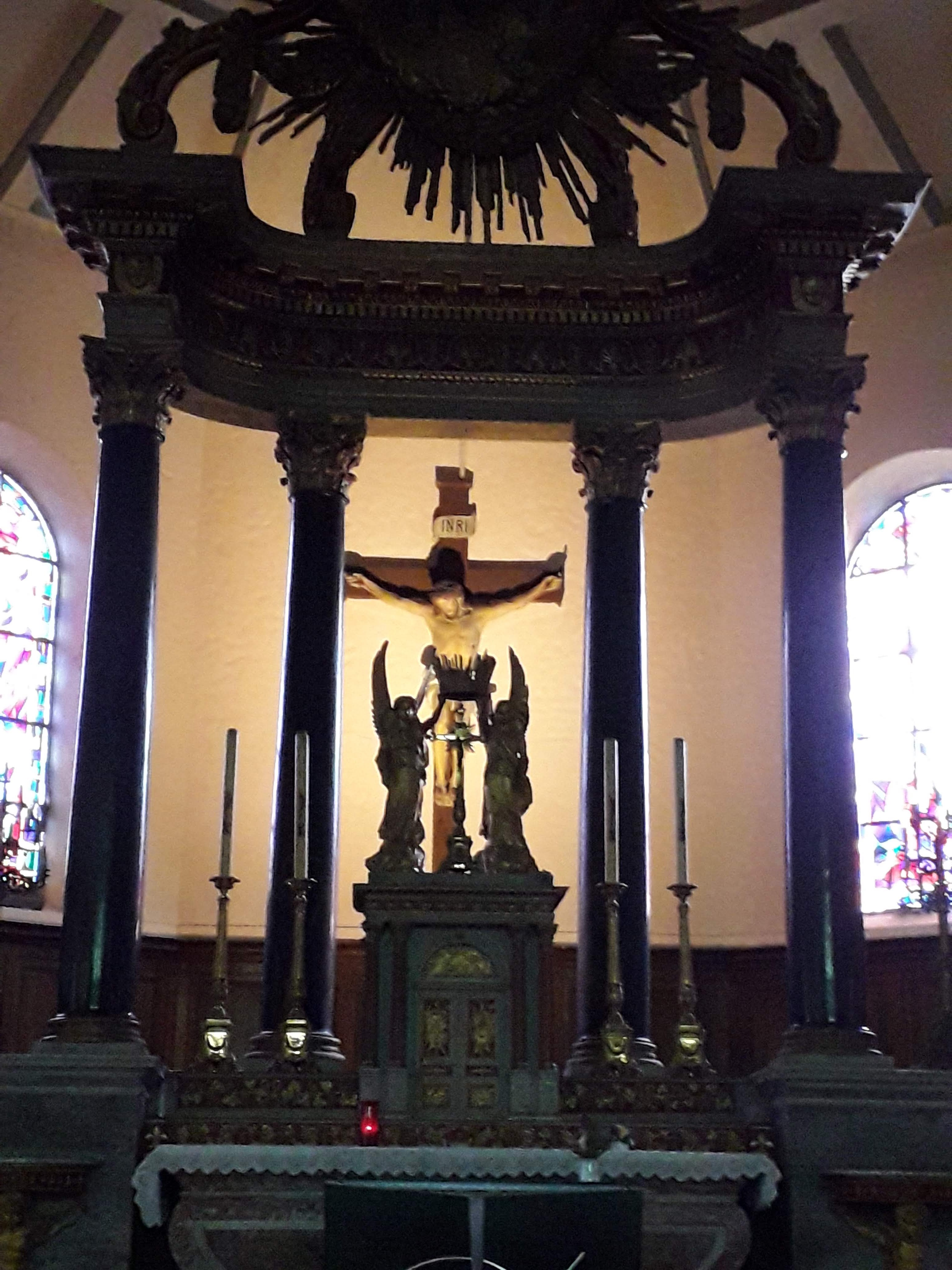 Très jolie petite église avec un très bel autel et de magnifiques vitraux.
