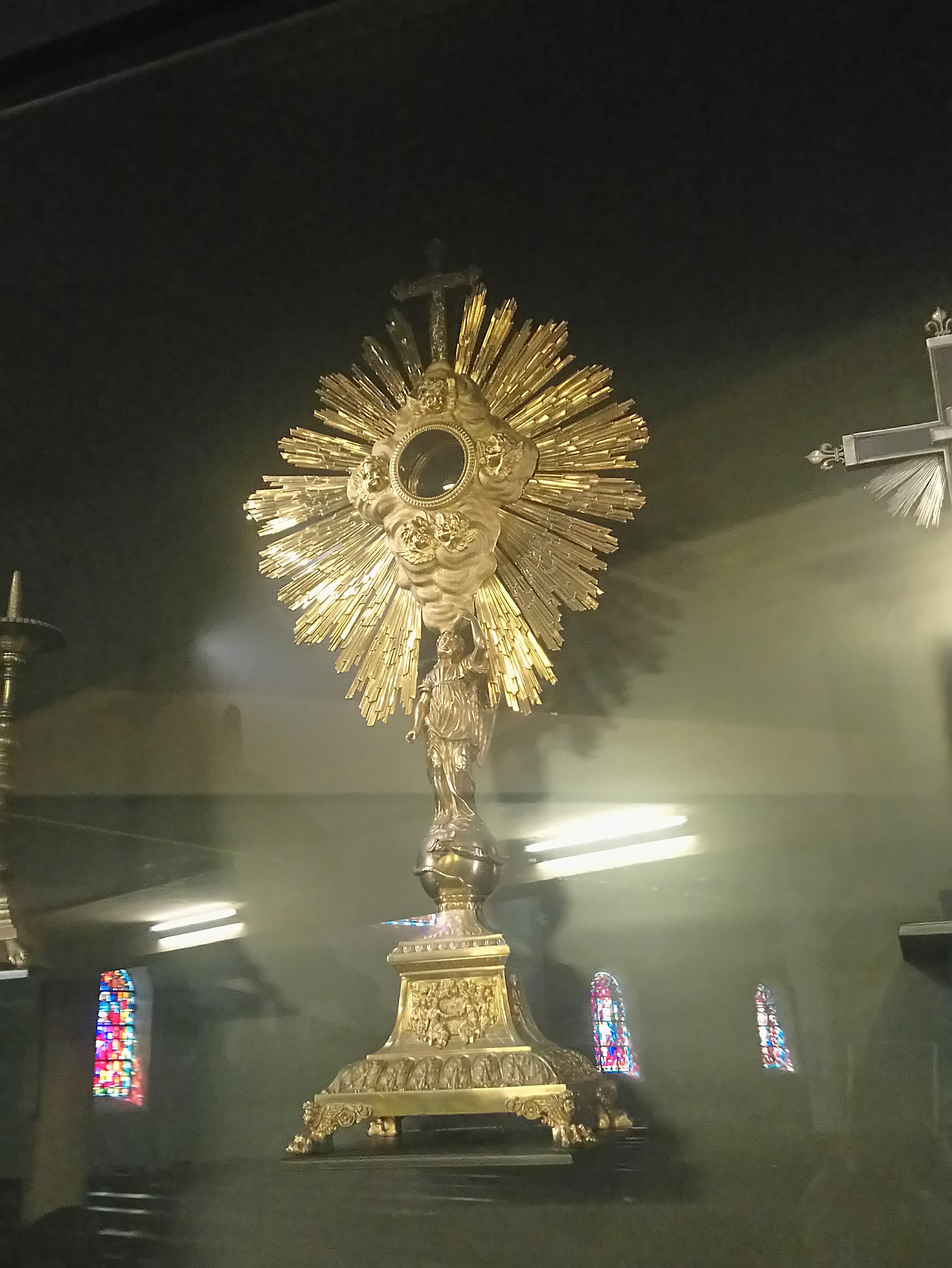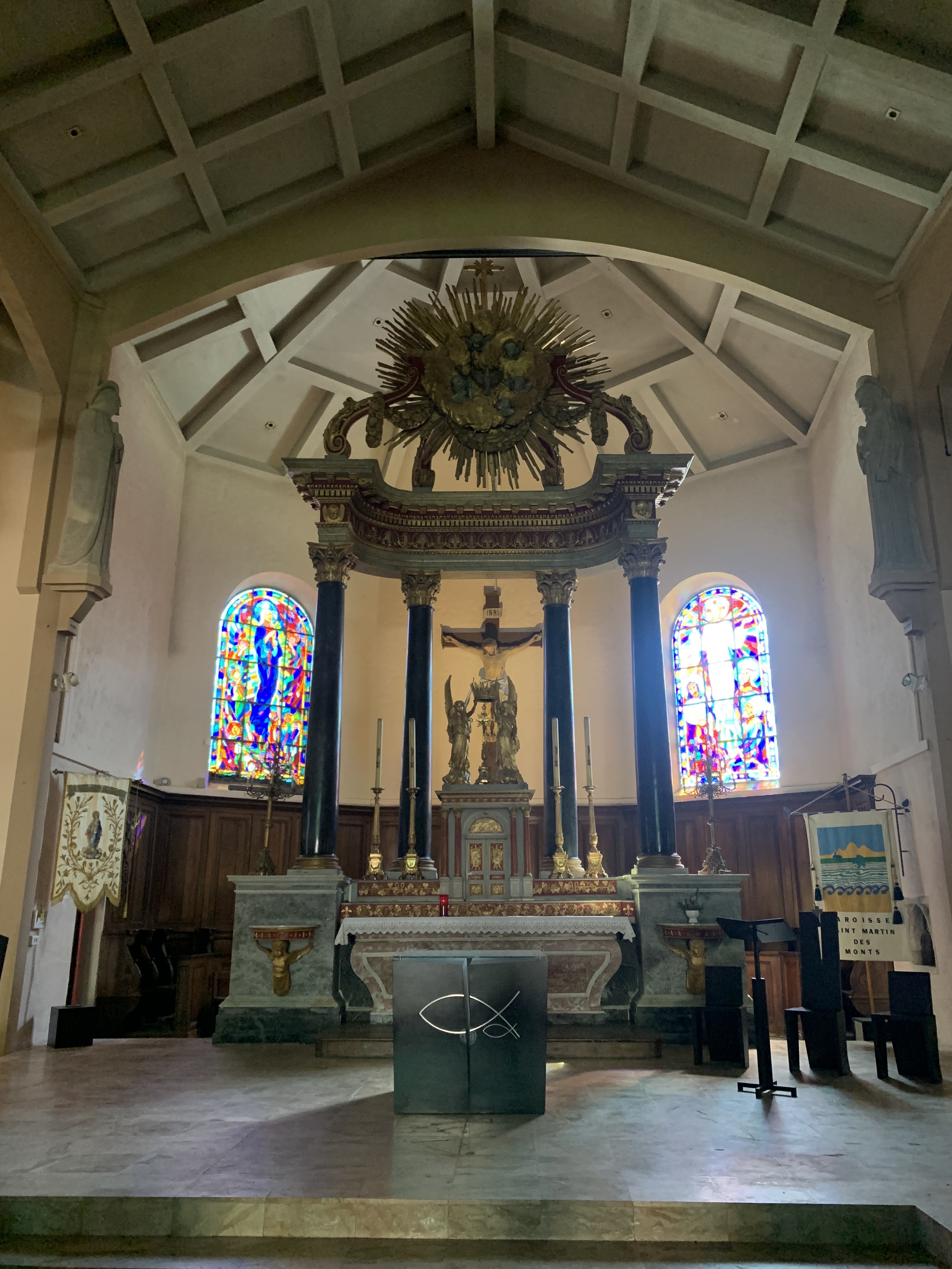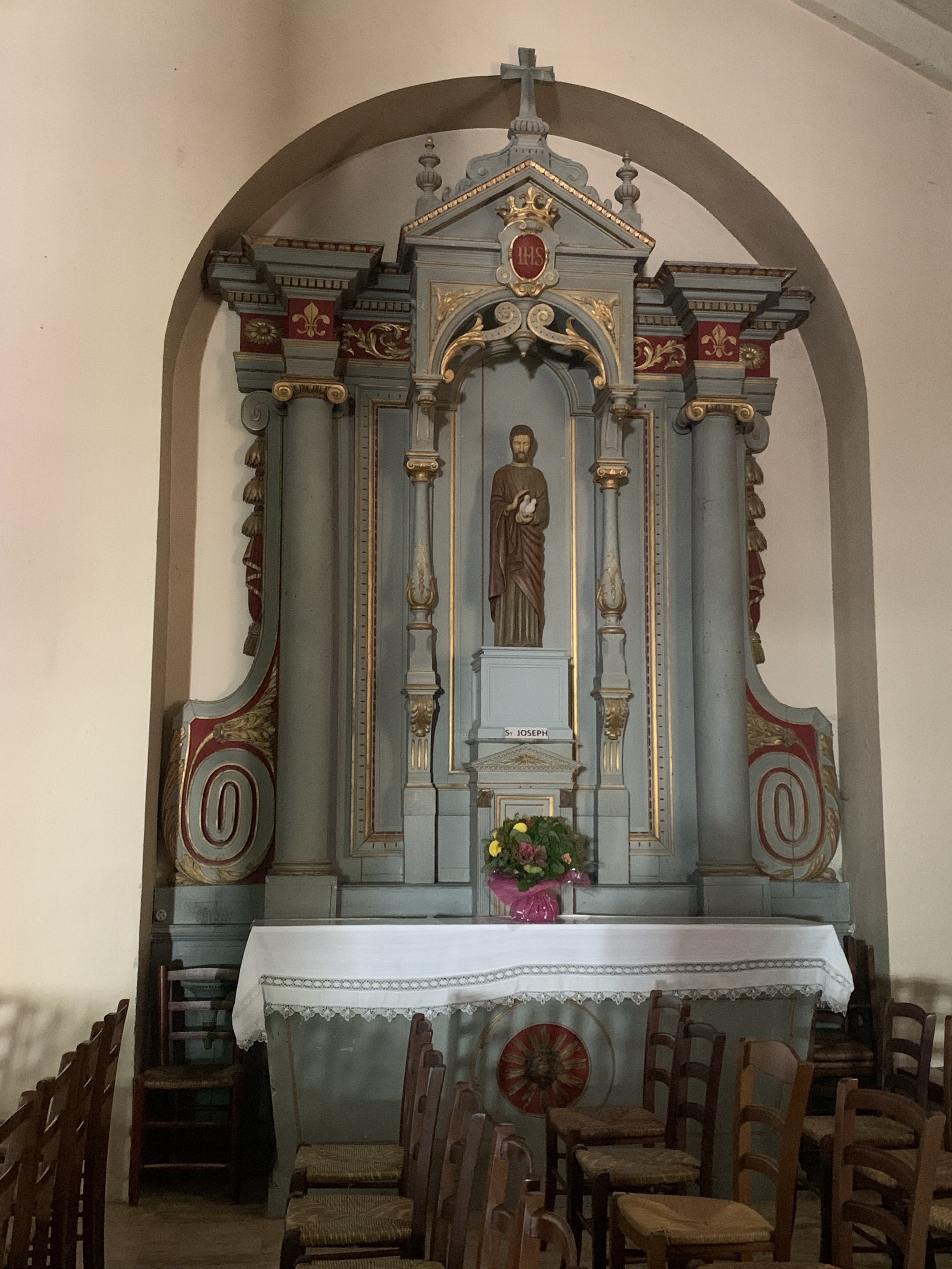 Très jolie petite église avec un très bel autel et de magnifiques vitraux.
