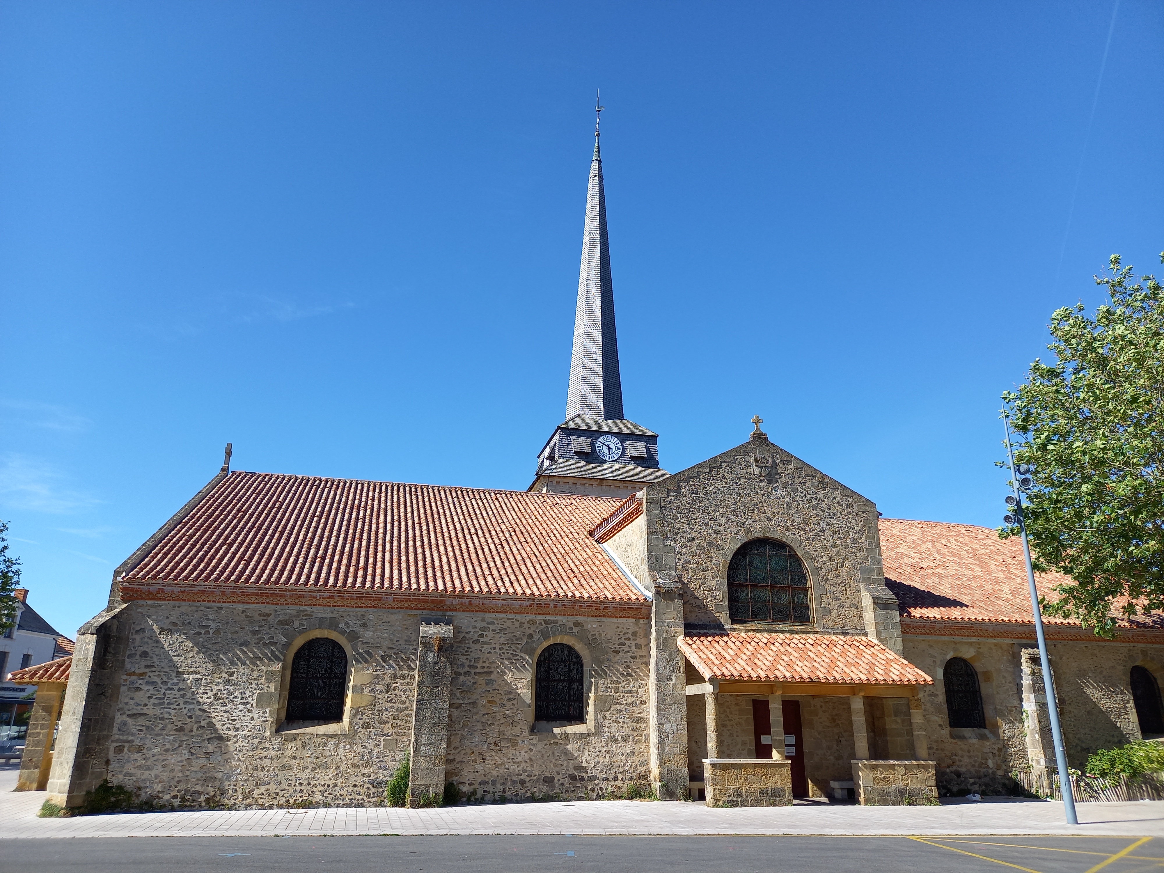 Charmante église ouverte et accueillante, un beau mobilier, des vitraux intéressants, et un trésor exposé. Une chapelle du 12è, reconstruite pour agrandissement au 14è, son clocher élevé au 15è sera terminé au 17è. Restaurée après le passage dévastateur des huguenots au 17è, elle subira les affres des guerres de Vendée en 1793, fut abandonnée comme étable, puis relevée début 19è. Une histoire que traduit son architecture, mélange de styles d'un bel équilibre. Cette église est chaleureuse, parfaite pour trouver le calme et la sérénité. Restaurée au 20è et 21è, bien entretenue et bien tenue, située au cœur de la cité, elle mérite un détour, pour son excellence dans la simplicité.