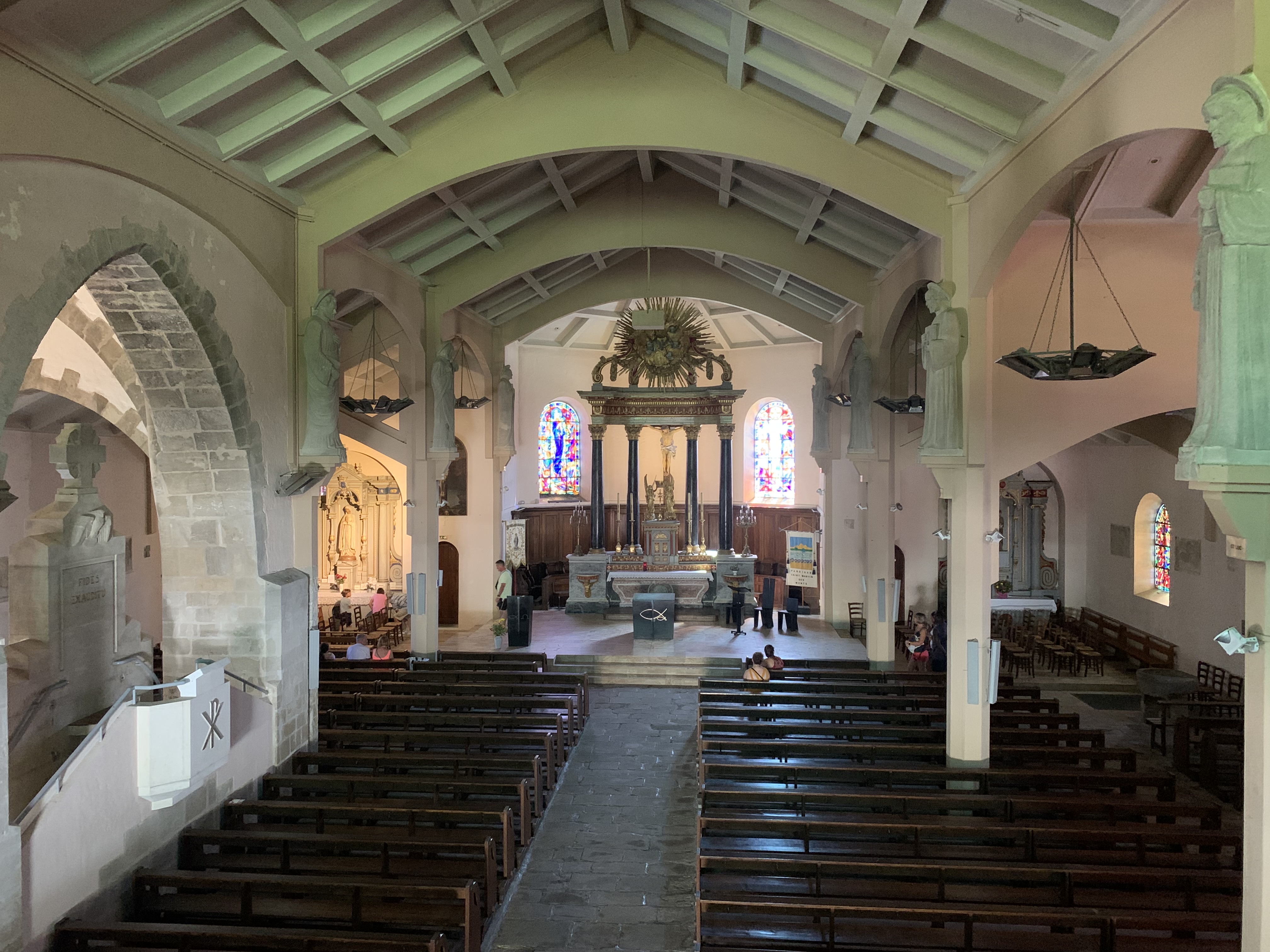 Église classique à l'exception de sa voûte en béton datant des années 30.