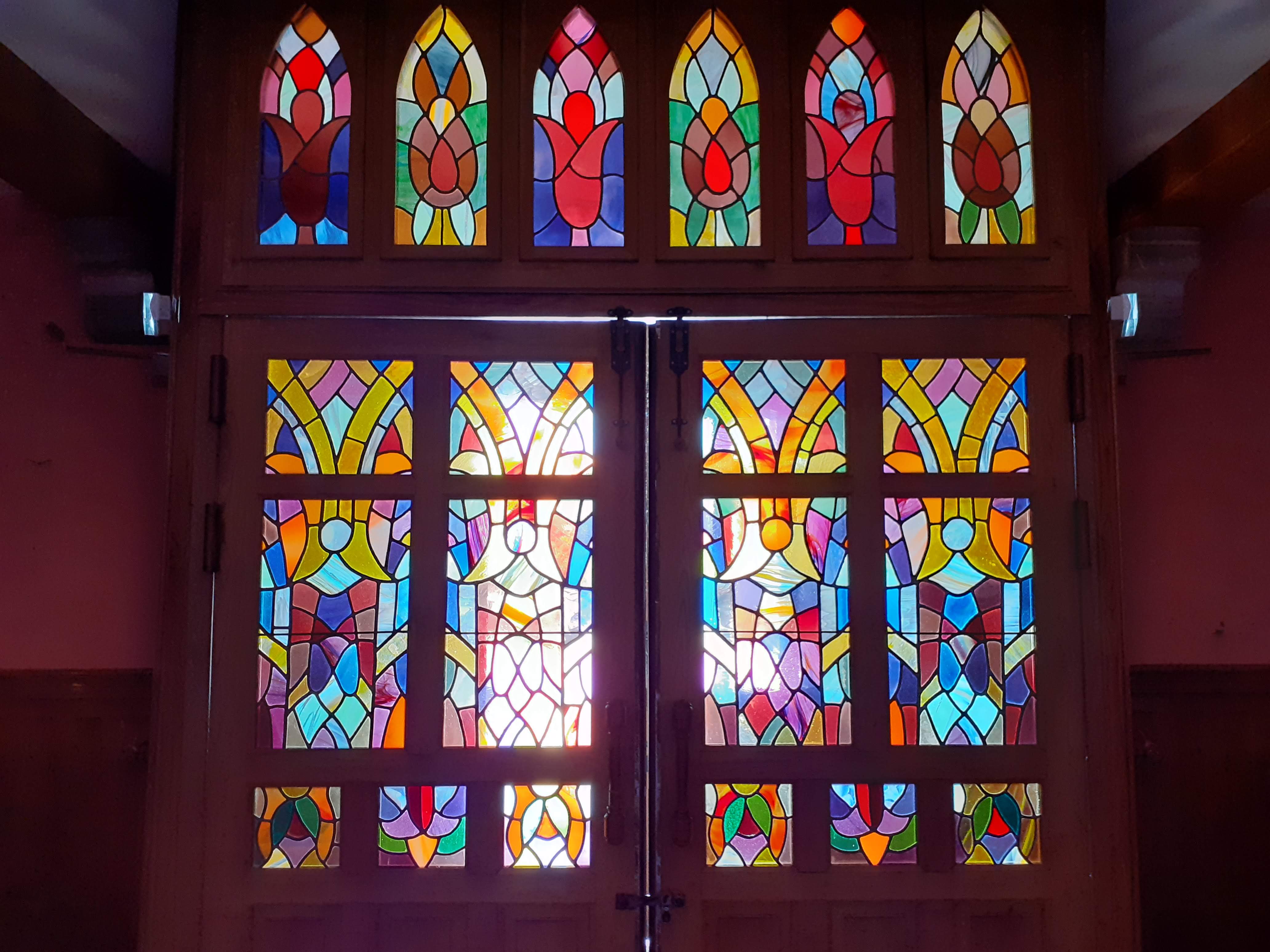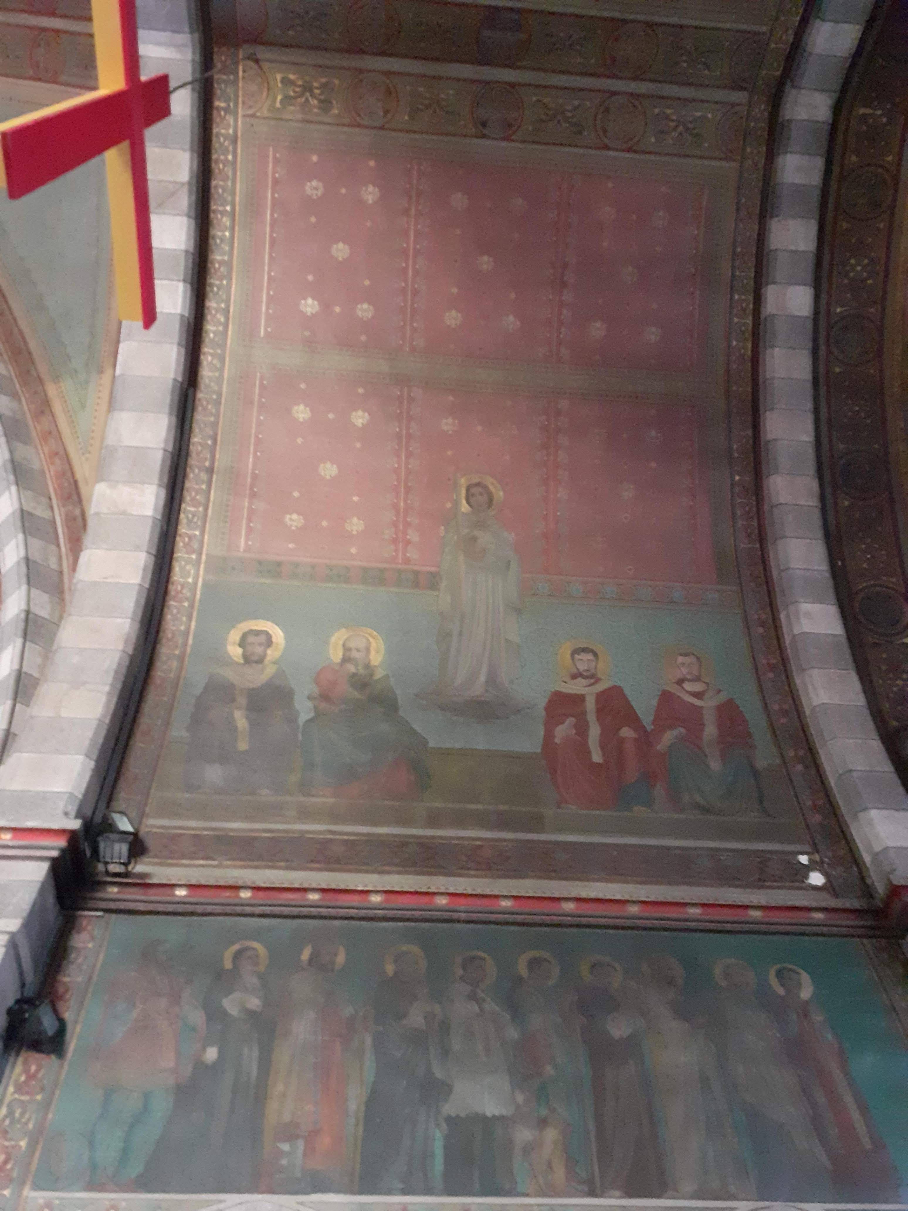 05/2020 - Belle Église sur sa gd place. Bel intérieur avec beaux vitraux et peintures murales.