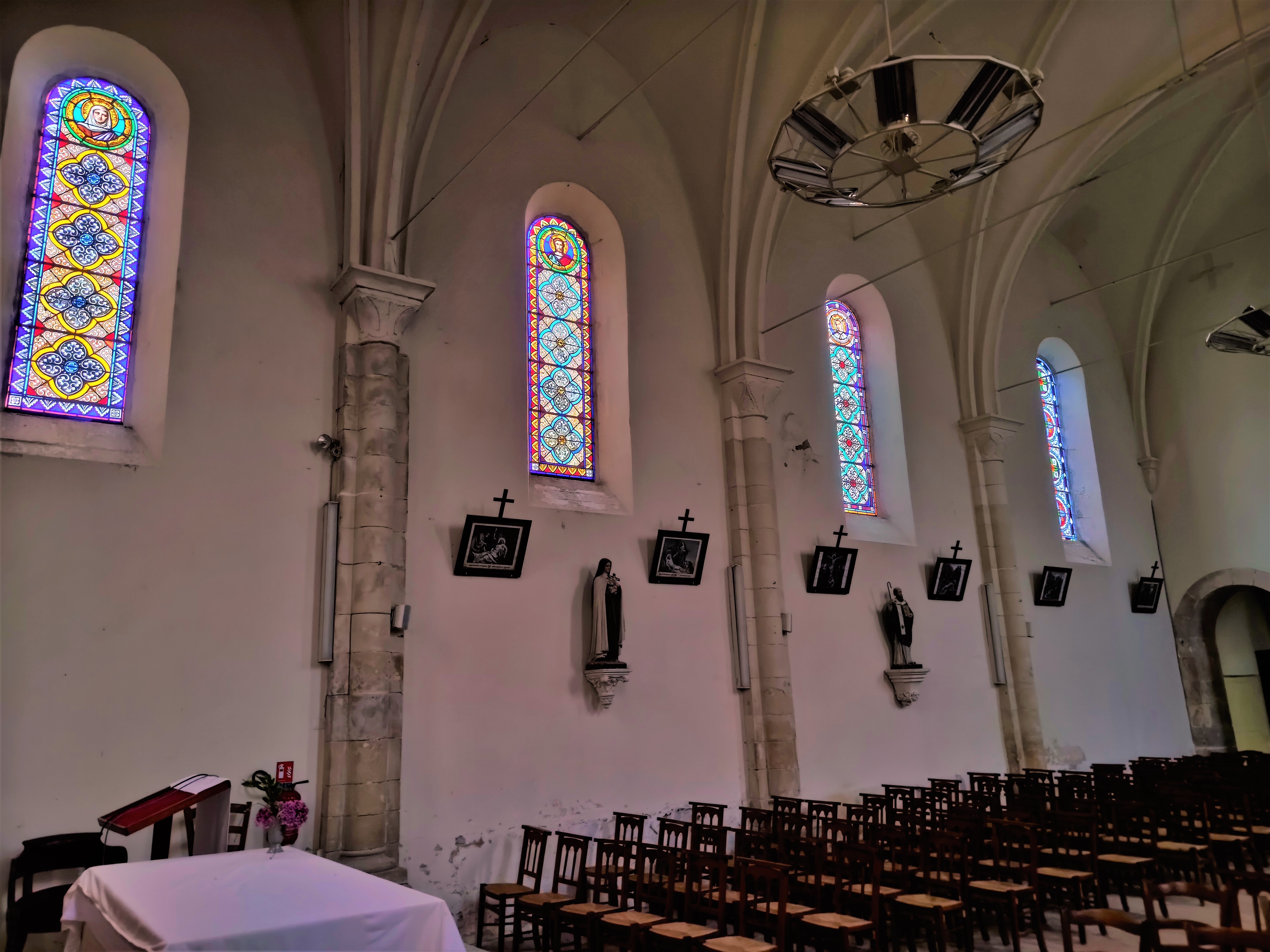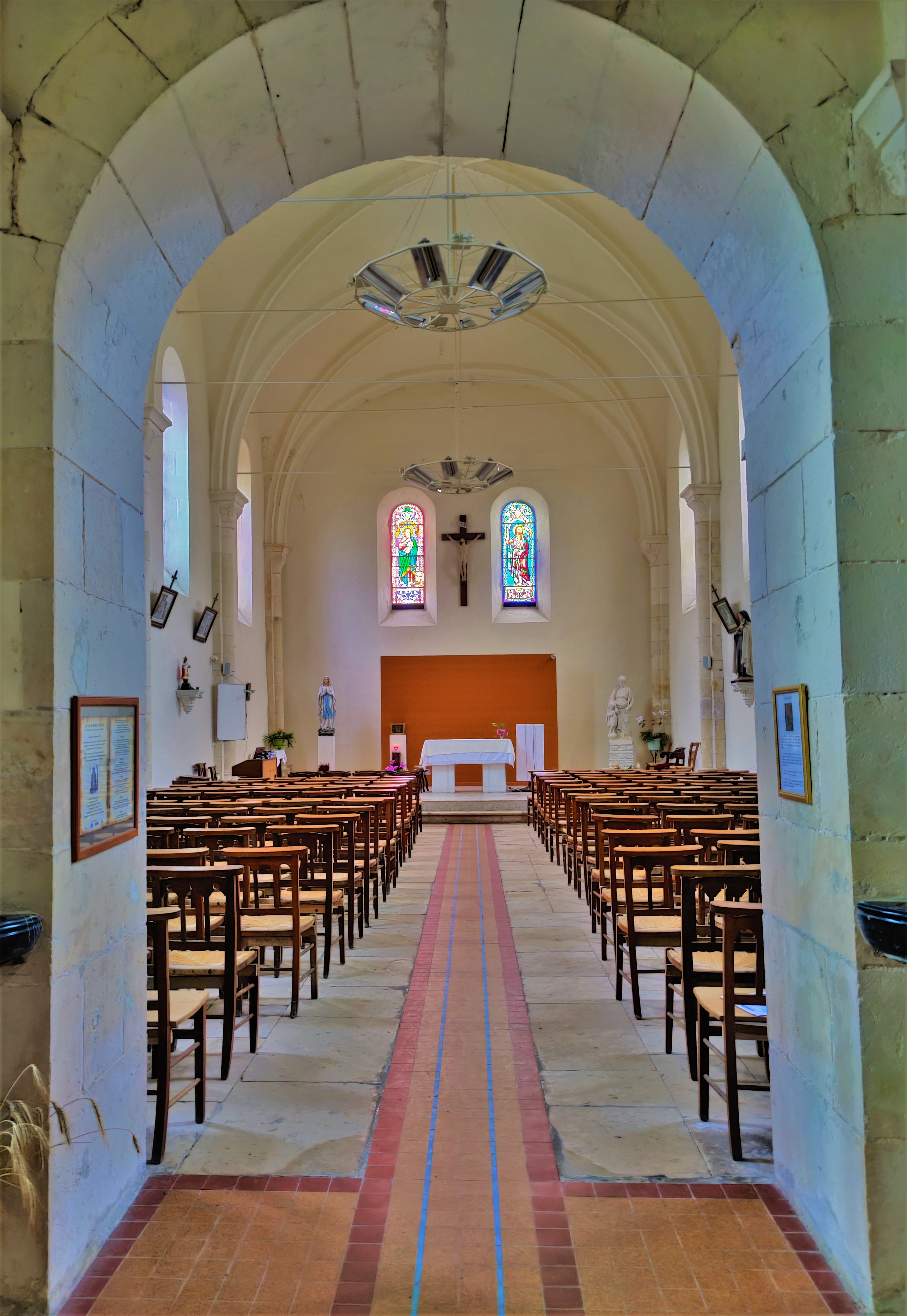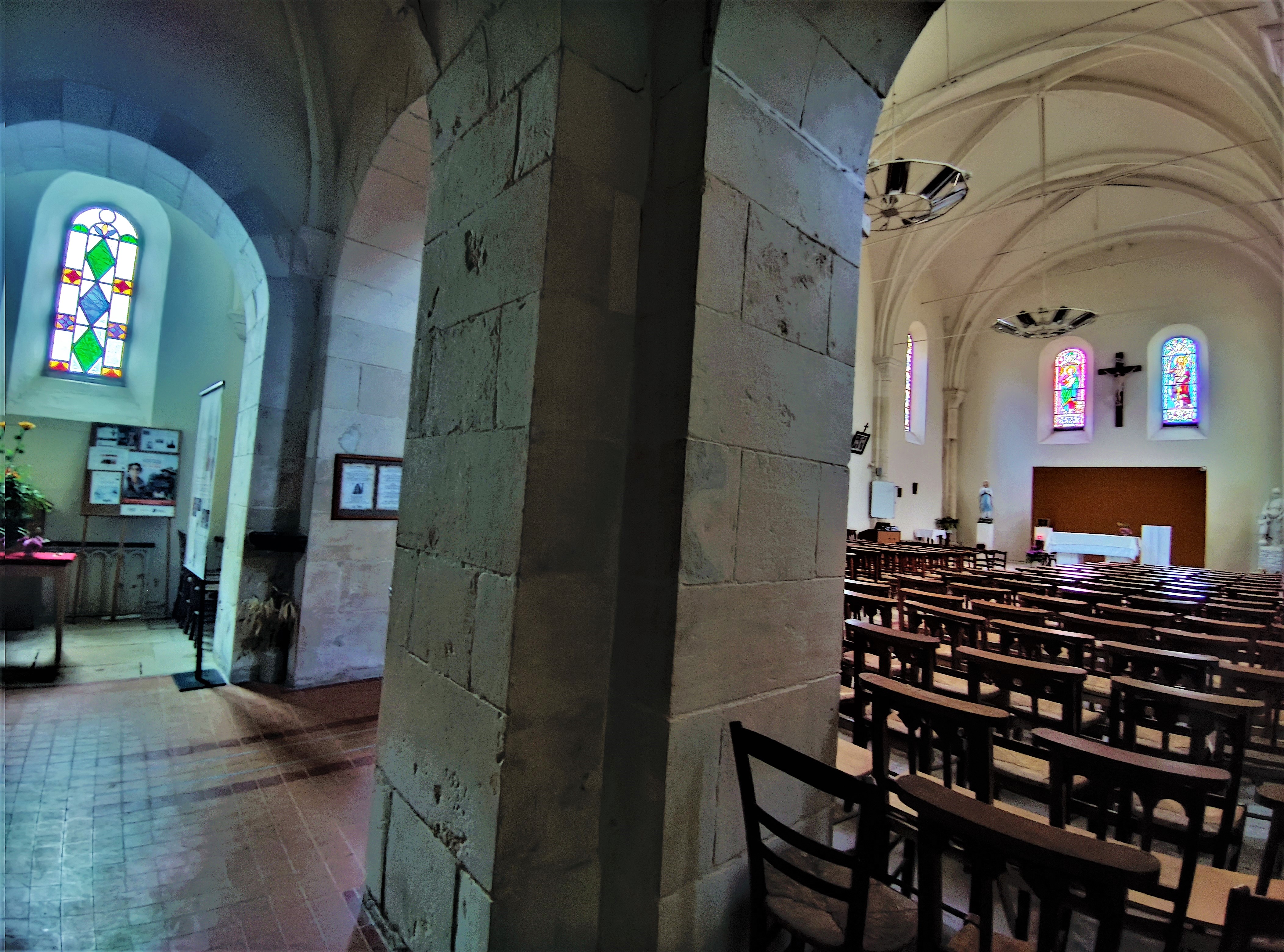 Cette église ouverte et accueillante mérite une visite, lieu idéal pour prier, méditer ou pour un moment de détente Vers le milieu du premier millénaire, une première église fut construite, elle sera remplacée par une nouvelle église au 13ème qui ne survécut pas aux conflits religieux du 16ème, on remonta un nouvel édifice fin 16ème et début 17ème. Cette 3ème église était très dégradée au milieu du 19ème, quelques restaurations eurent lieu. La décision de reconstruire fut prise après 1850, des fonds furent trouvés, le chantier débuta en 1870. C’est donc le 4ème édifice qui accueille les visiteurs aujourd’hui, héritier de plus de 1500 ans d’histoire chrétienne. Des défauts de construction imposèrent la suppression de la travée Est, raccourcissant la nef