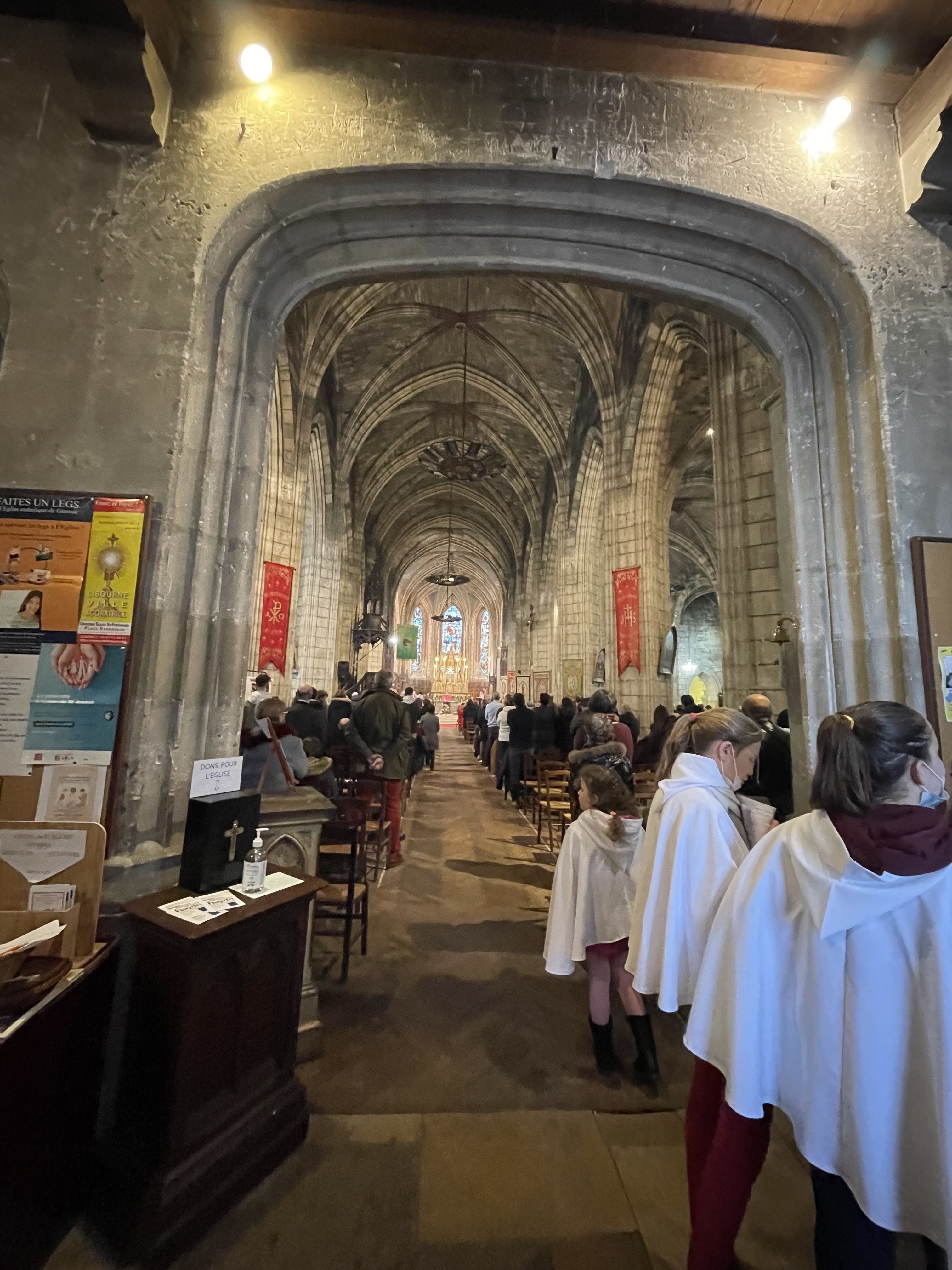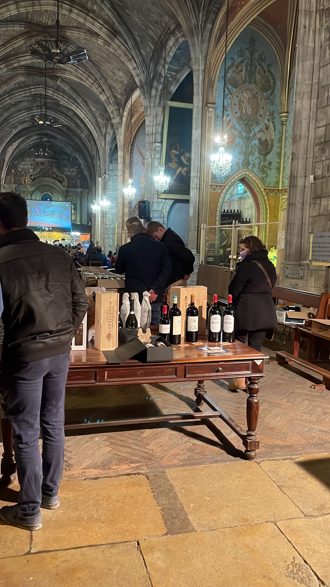 Belle église, avant Noël, avec vente de vin après la messe du dimanche