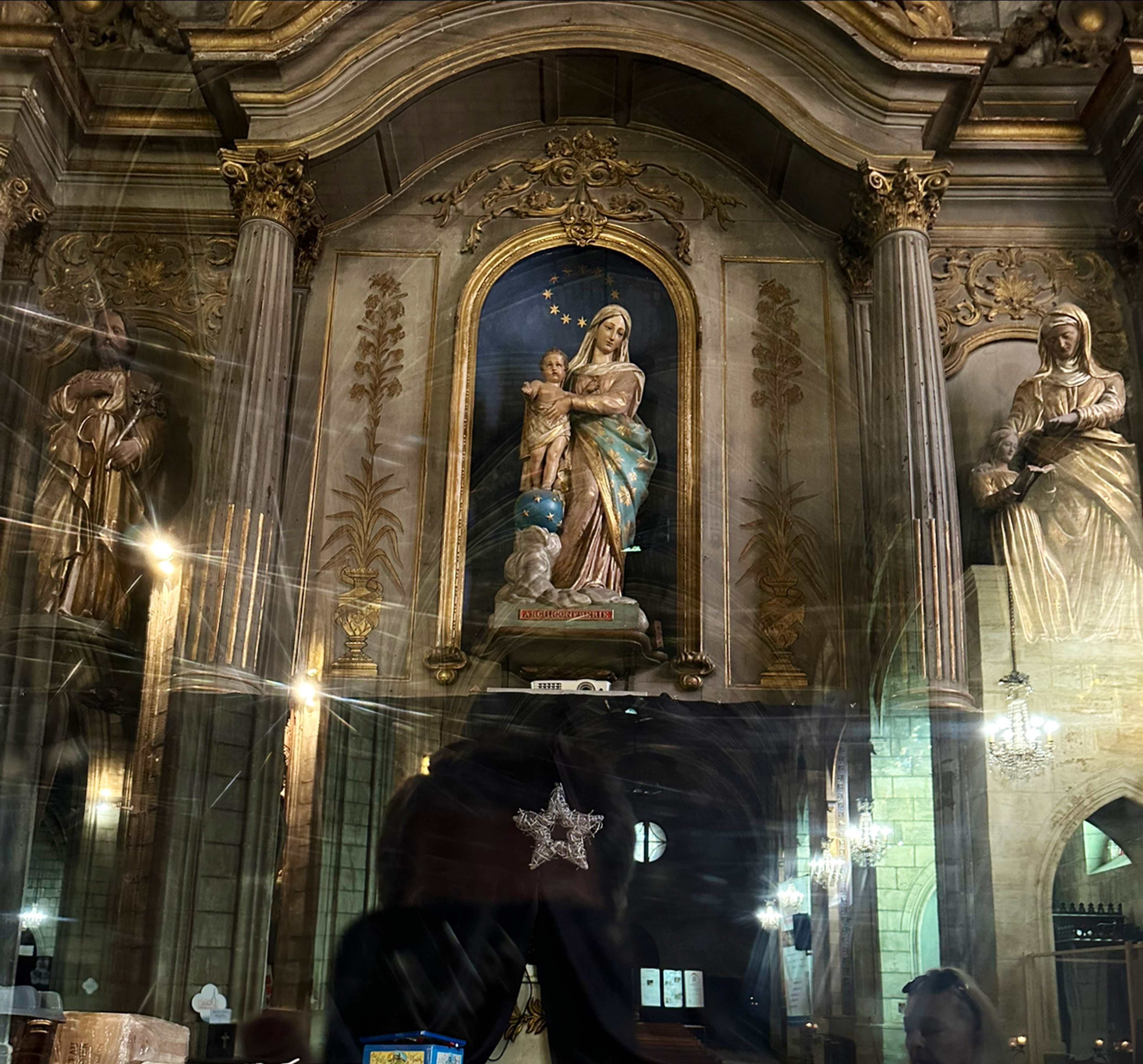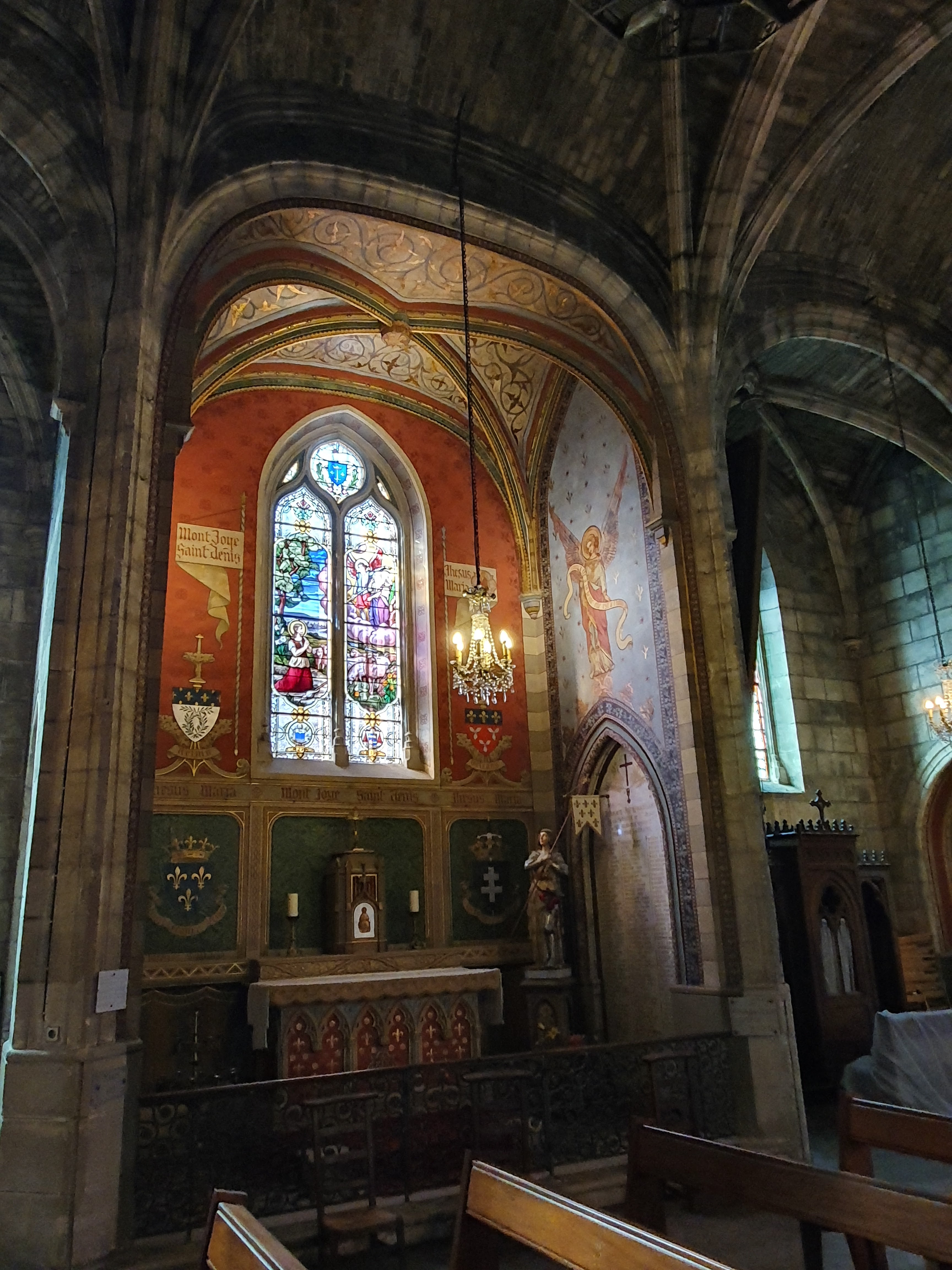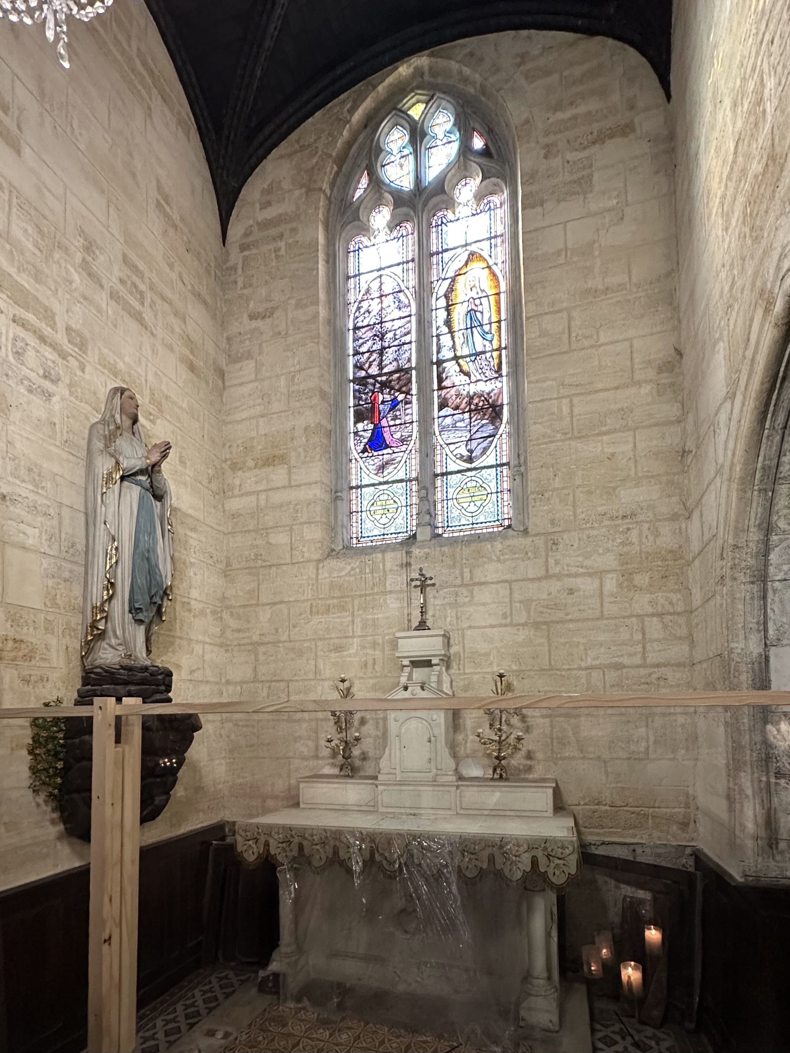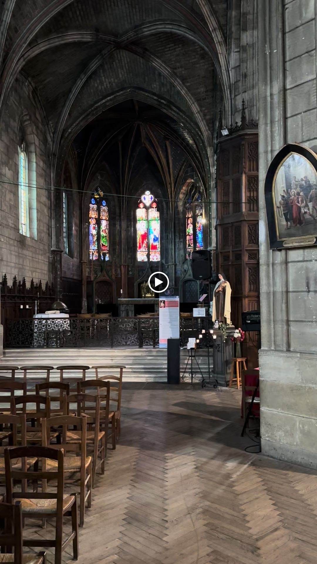 La tête de flèche reviendra mais cette magnifique église est en souffrance. Intérieur et exterieur aux murs marqués et usés par le temps, les gaz d échappement, qui auraient besoin de nettoyage pour remettre ce lieu aux couleurs lumineuses dans sa configuration multi centenaire... Un peu comme condat.