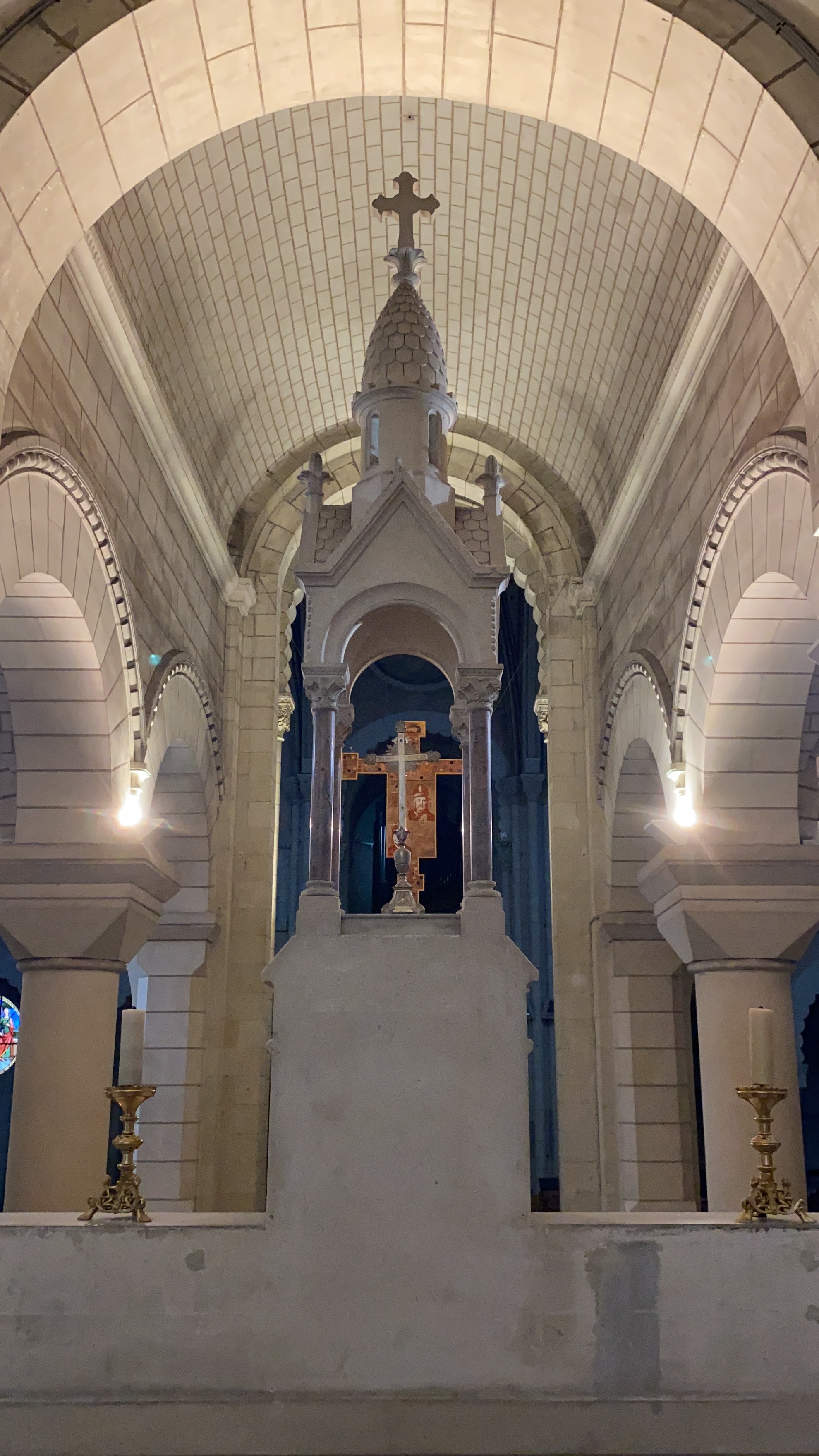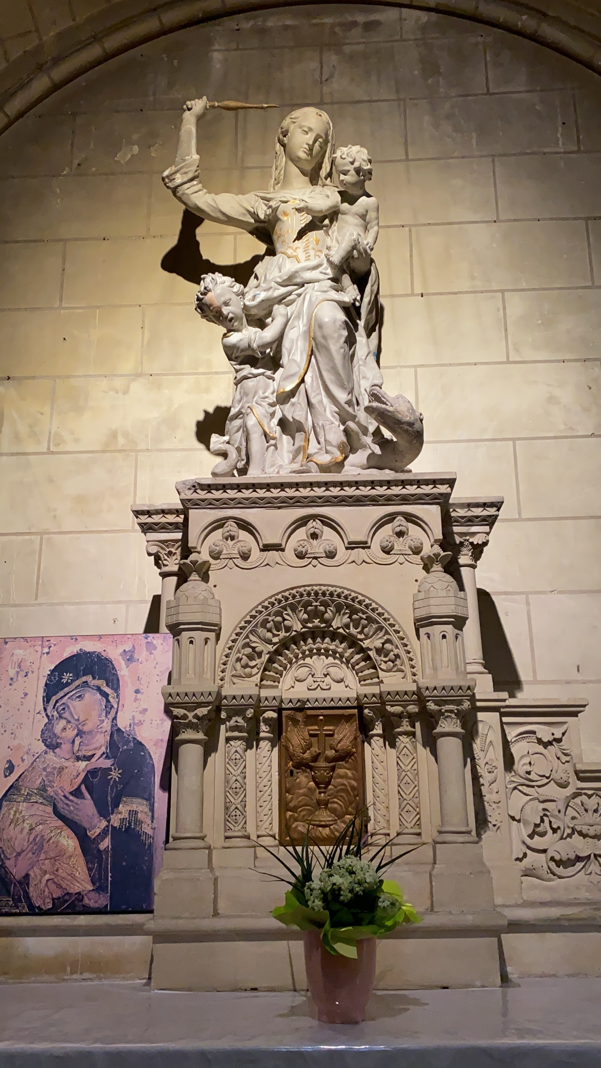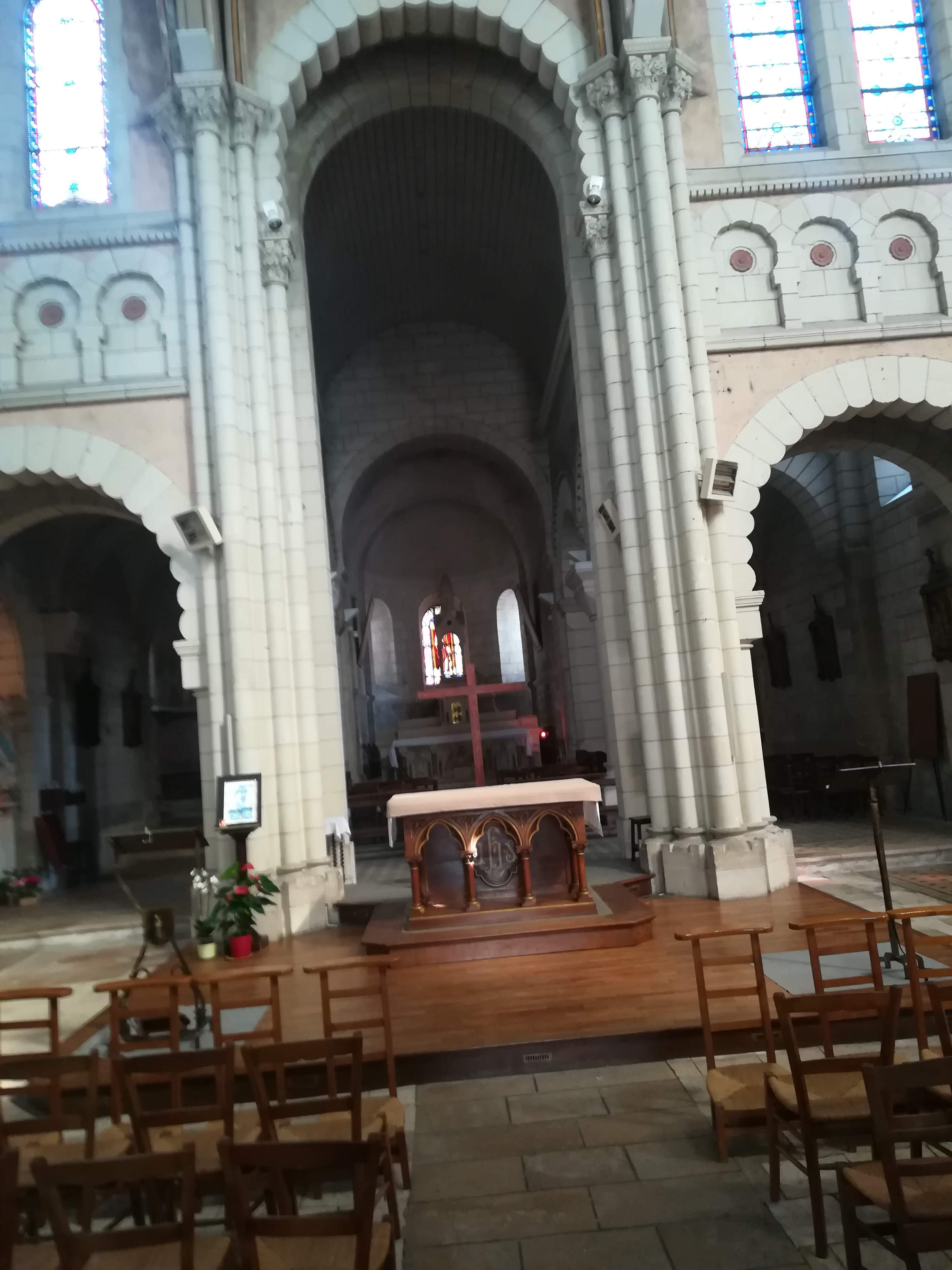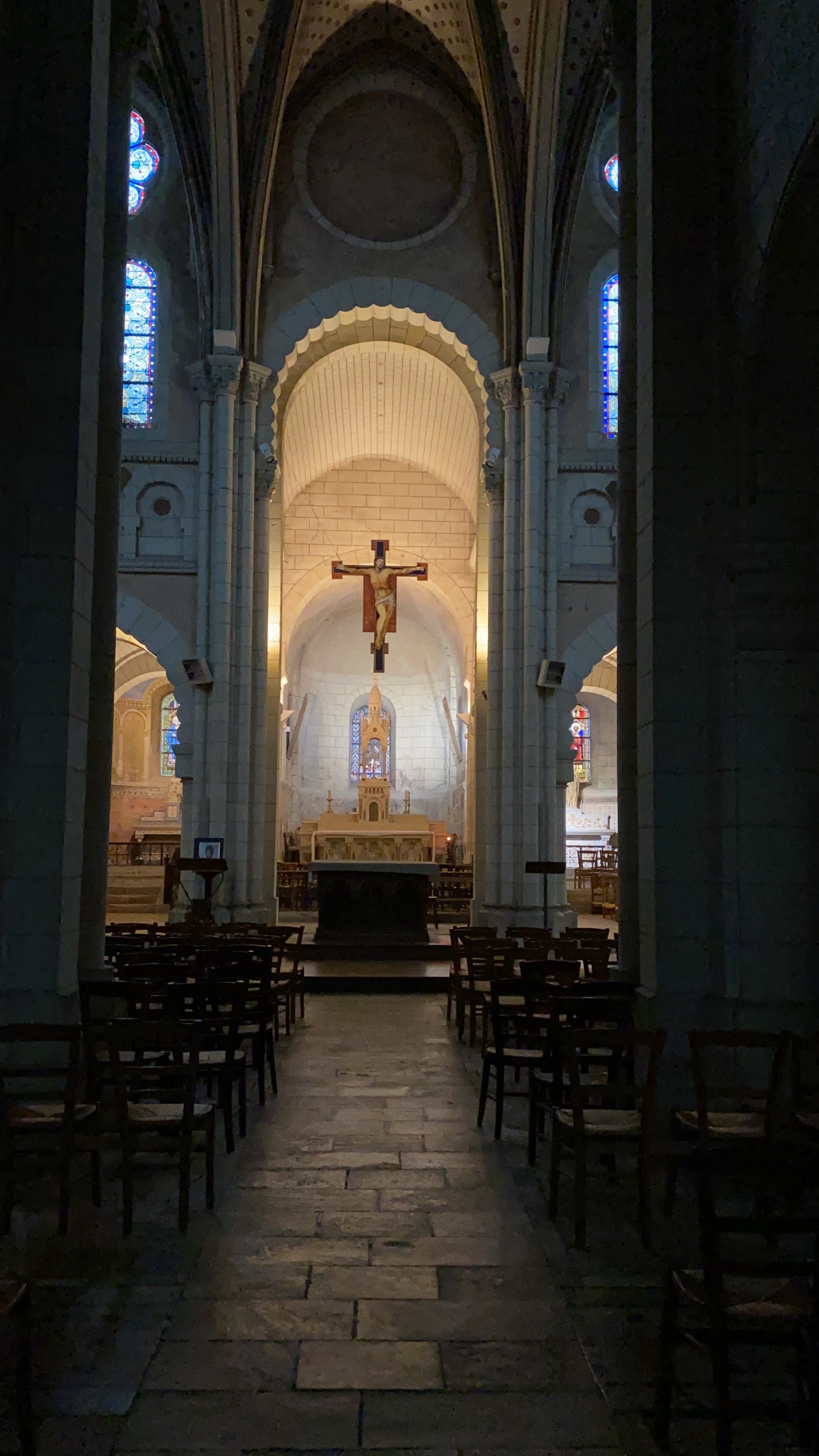 Lorsque Catherine et moi entrons dans l'église Saint-Jean-Baptiste de Langeais, un calme immédiat nous enveloppe. La lumière tamisée des bougies jette des reflets sur les vitraux, créant un jeu de couleurs sur les vieilles pierres. L'église, fondée au IVe siècle par Saint Martin, dévoile une histoire riche à travers ses murs. En me déplaçant doucement, j'admire l'orgue de Louis Bonn, un chef-d'œuvre situé au revers de la façade ouest. Sa présence majestueuse ajoute une dimension historique et artistique à l'atmosphère. Catherine et moi échangeons des regards et des chuchotements, impressionnés par la beauté de l'instrument et le sens de continuité qu'il apporte à ce lieu sacré. Nous nous déplaçons avec révérence, observant les détails architecturaux qui racontent des siècles d'histoire et de foi. Nos conversations sont des murmures, en harmonie avec le silence solennel de l'église. Lorsque les cloches sonnent les douze coups de midi, le son résonne avec force, remplissant l'espace sacré. Catherine, surprise, laisse échapper un rire joyeux. Ce moment d'insouciance, bien qu'inattendu, rompt agréablement le silence et ajoute une touche de spontanéité à notre visite. En sortant, je me sens imprégné de l'histoire et de la spiritualité de l'église, reconnaissant pour ce moment partagé avec Catherine dans un cadre aussi empreint d'histoire.