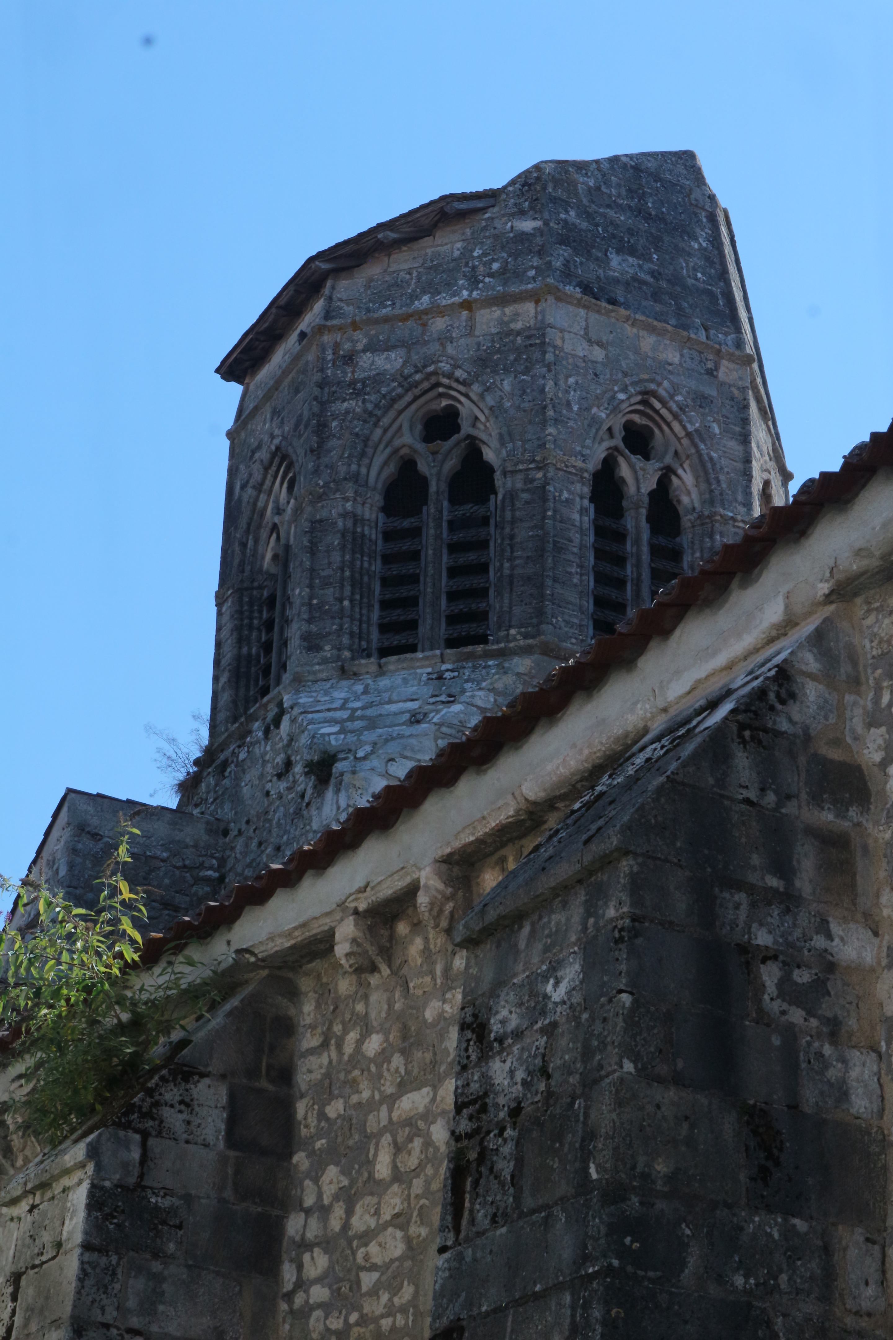 Charroux jolie cité de caractère, clocher de l'église tronqué.