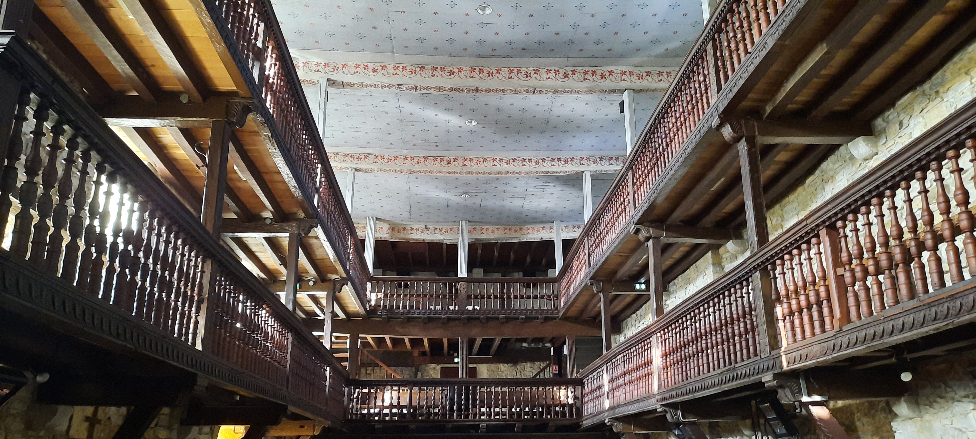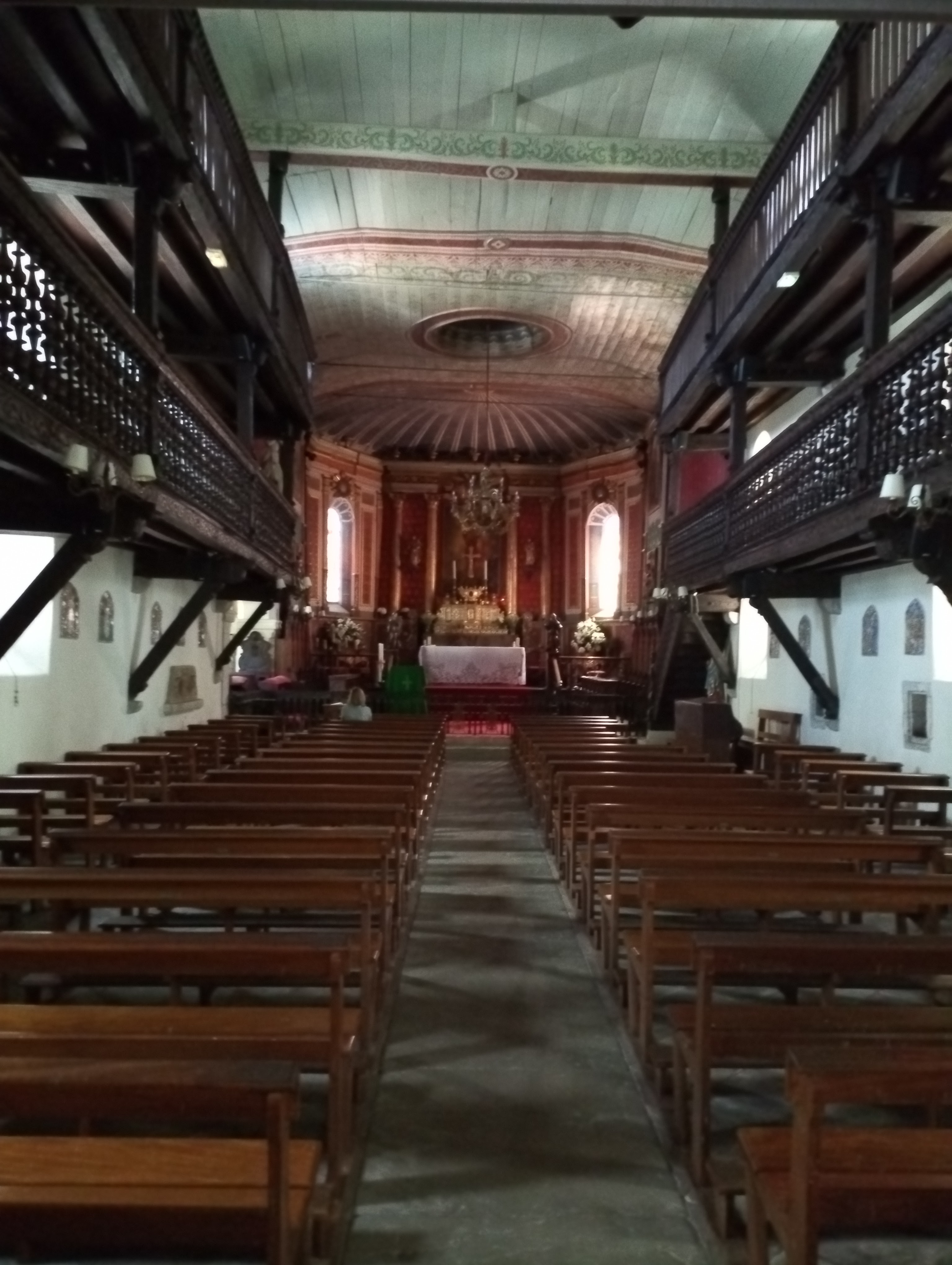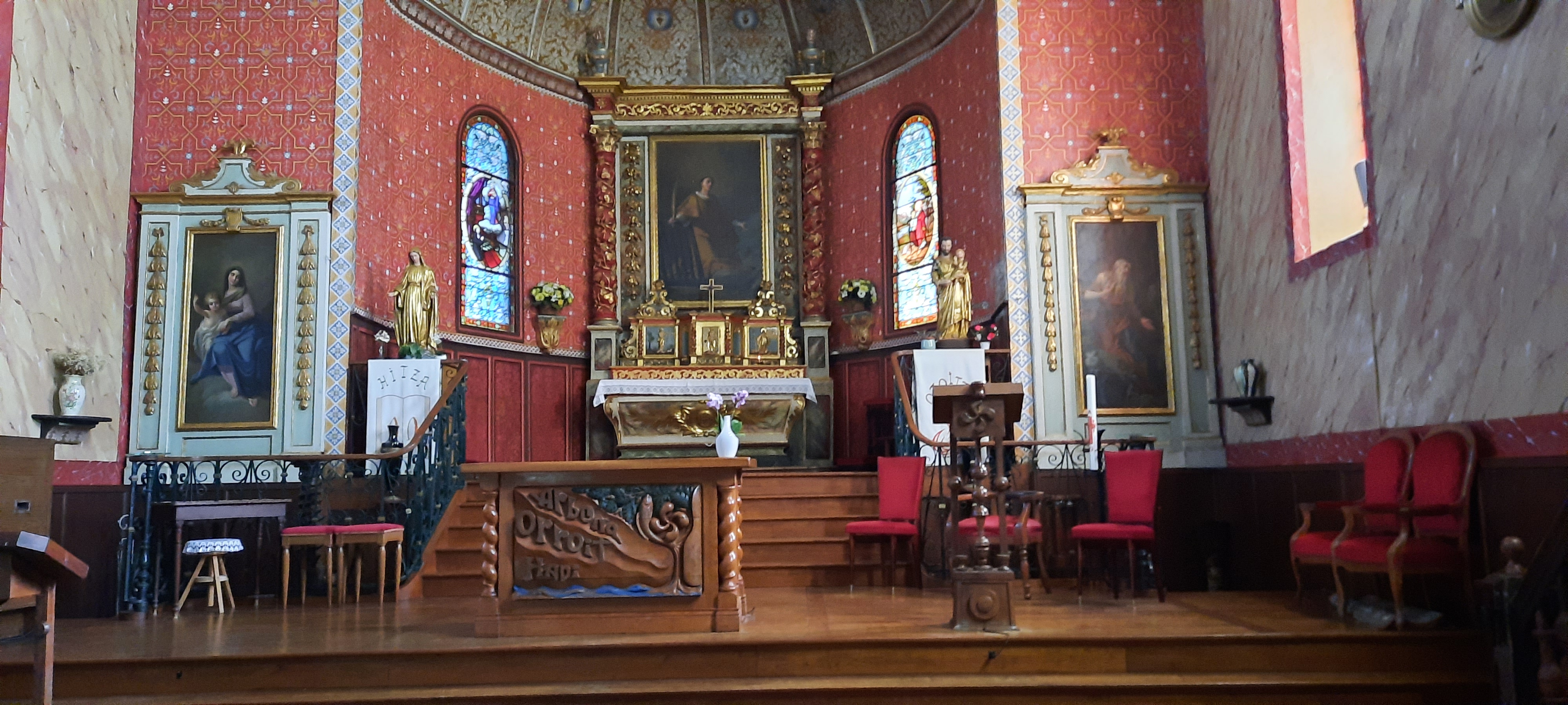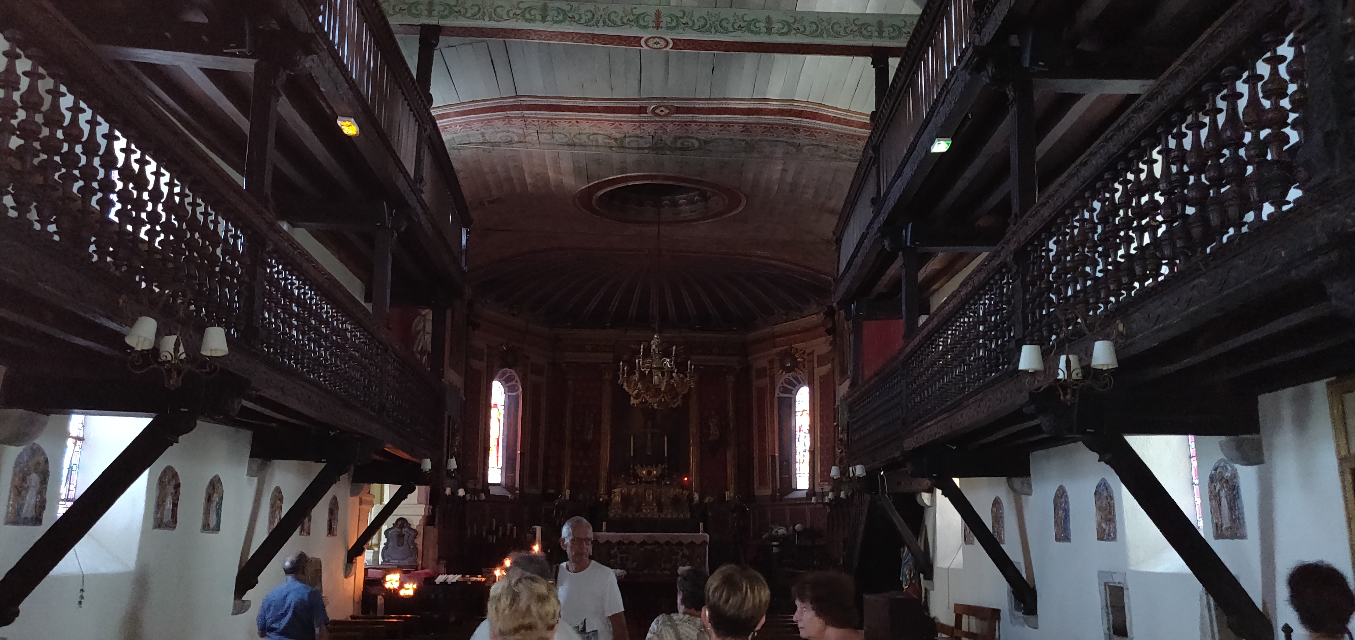 Jolie petite église typiquement basque avec ses deux niveaux de galeries en bois et son plafond en bois peint.