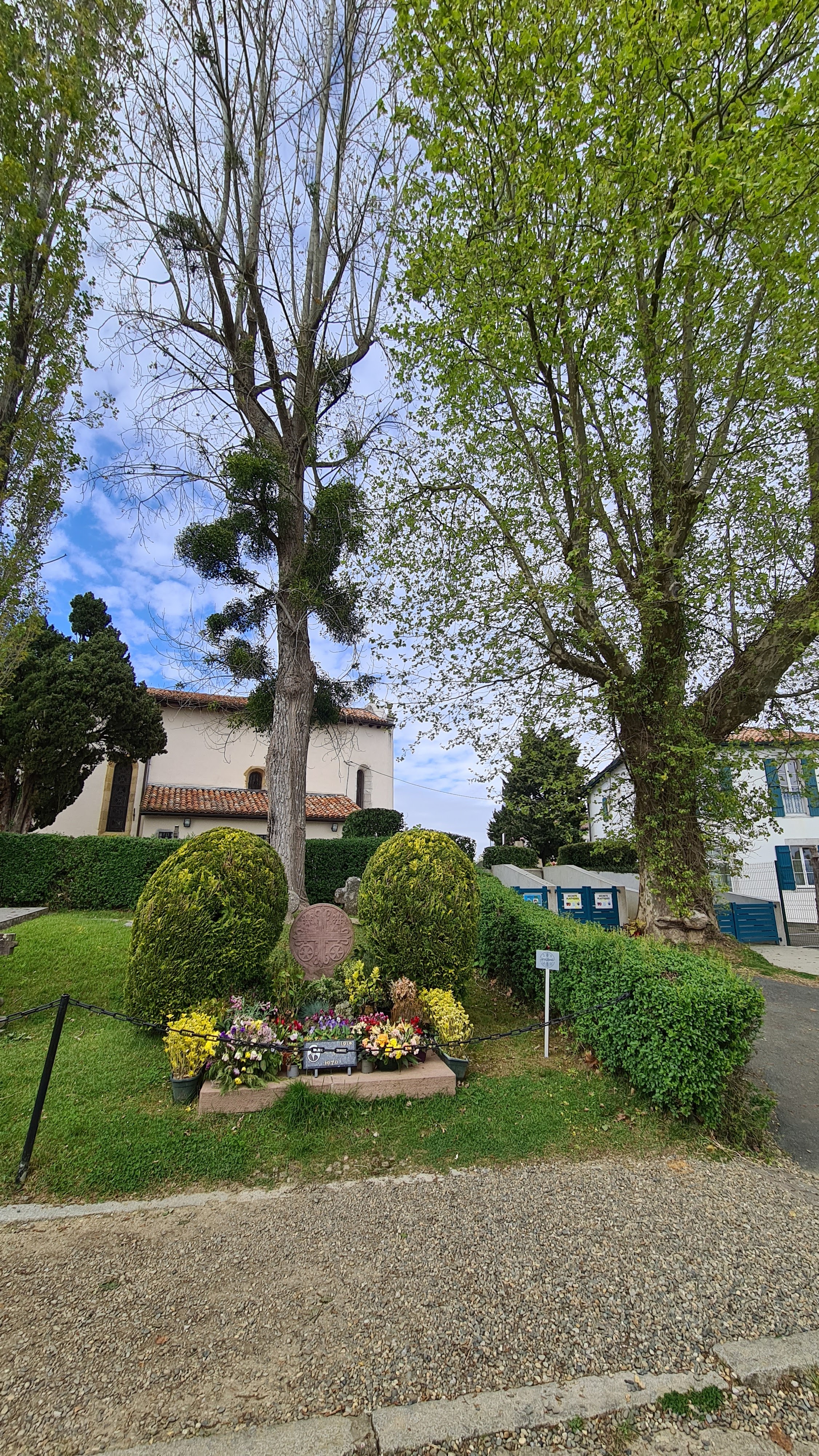Nous n'avons pas pu pénétrer dans l'église ce jour là il y avait un mariage❤. Nous avons fait le tour..dans le cimetière repose le célèbre chanteur Luis Mariano. Une table immense sur le devant invite à un banquet😉.