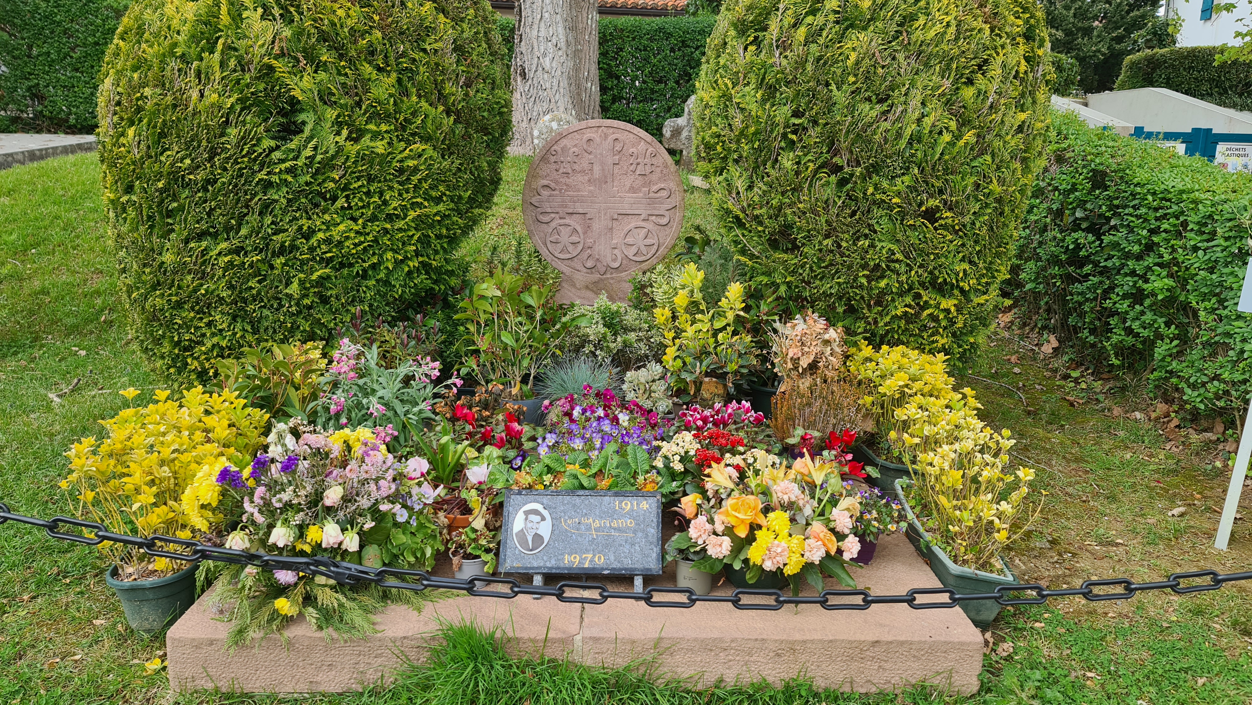 Bonsoir l'église se trouve être une magnifique bâtisse avec surprise le cimetière où se trouve être enterré monsieur Luis Mariano