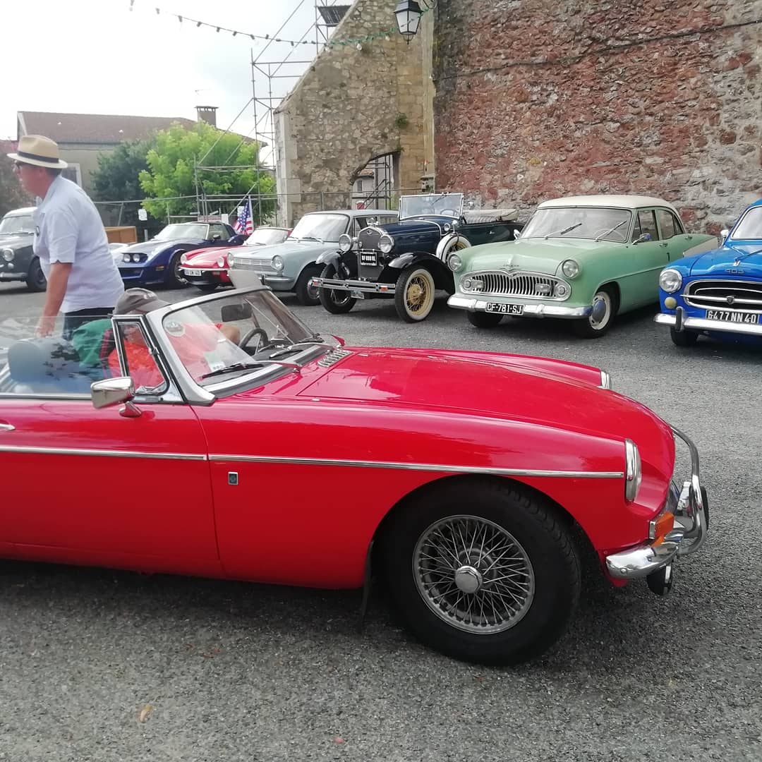 Suite à une manifestation de vieilles voitures sur le parvis de la petite place de l'église de Saubusse pour le barricot 2019