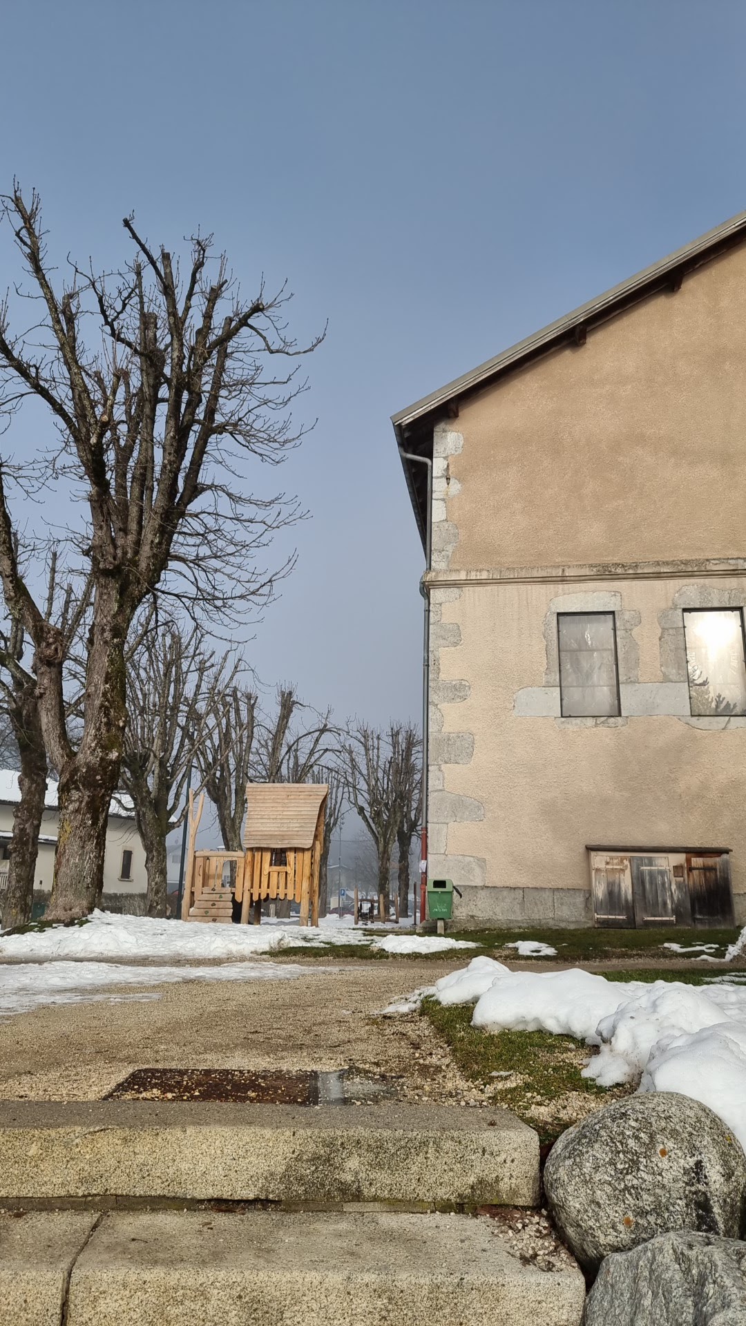 Gros bâtiment massif avec jeux pour enfants côté foron