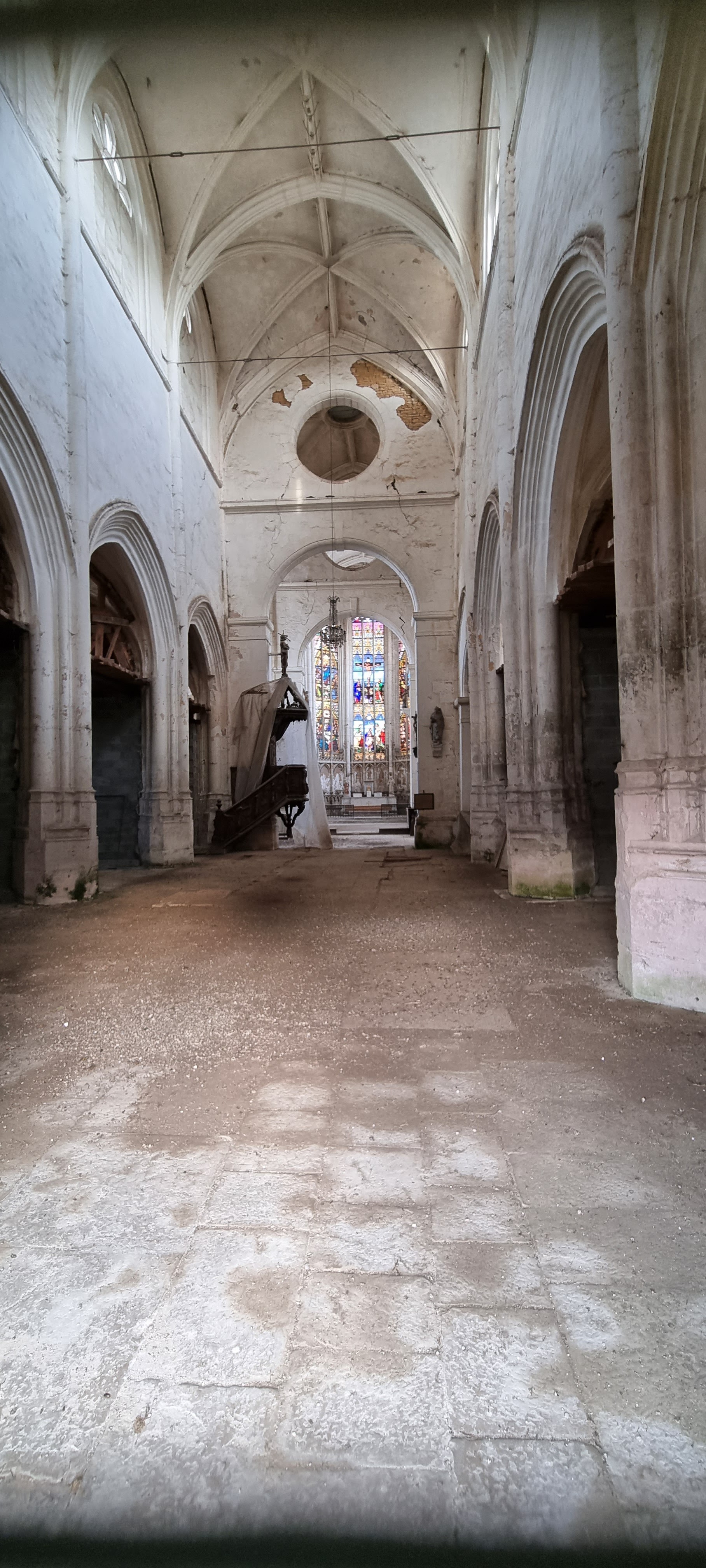 Comment décrire une église classée monument historique pour son architecture et ses vitraux depuis 1919, et pourtant désacralisée depuis plus de 30 ans, complètement fermée, et complètement laissée aux éléments et aux pigeons qui la ruinent complètement ? Et pourtant de 1563 à nos jours, son histoire est riche, et le bâtiment mérite le détour même que d'extérieur (à regret). Si son clocher, touché par la foudre, a été remplacé par un simple toit, le reste de l'édifice présente de belles parties à admirer.