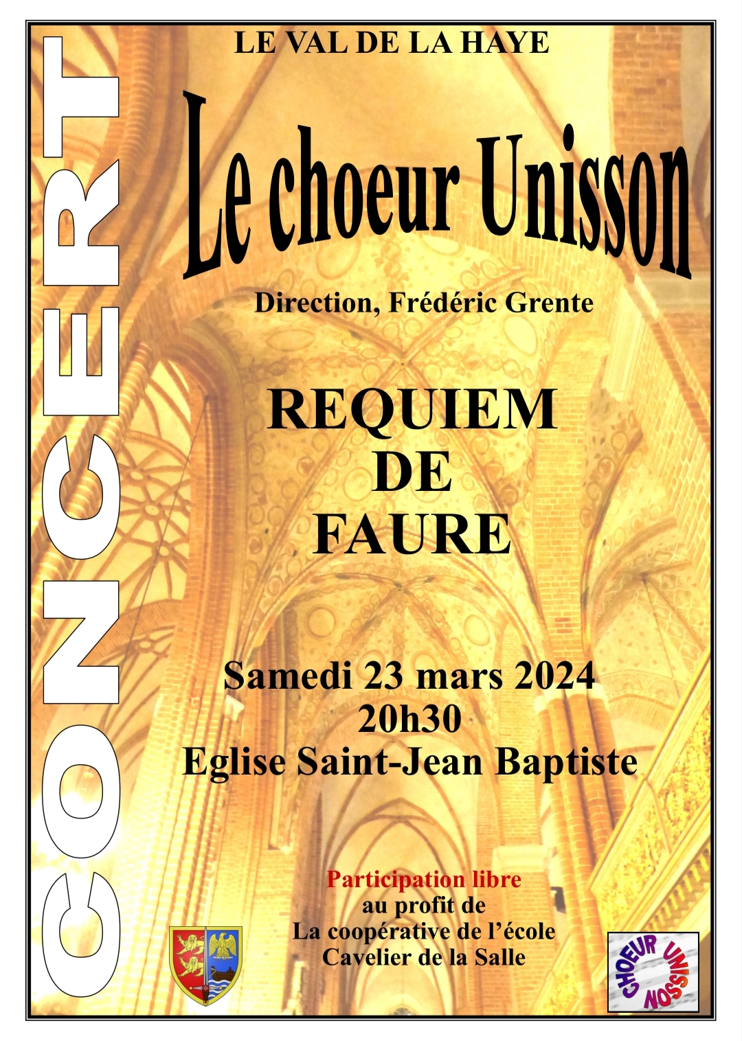Belle église Normande. Concert de la chorale Unisson (7 musiciens et 86 chanteurs) le samedi 23 mars 2024 à 20h30.