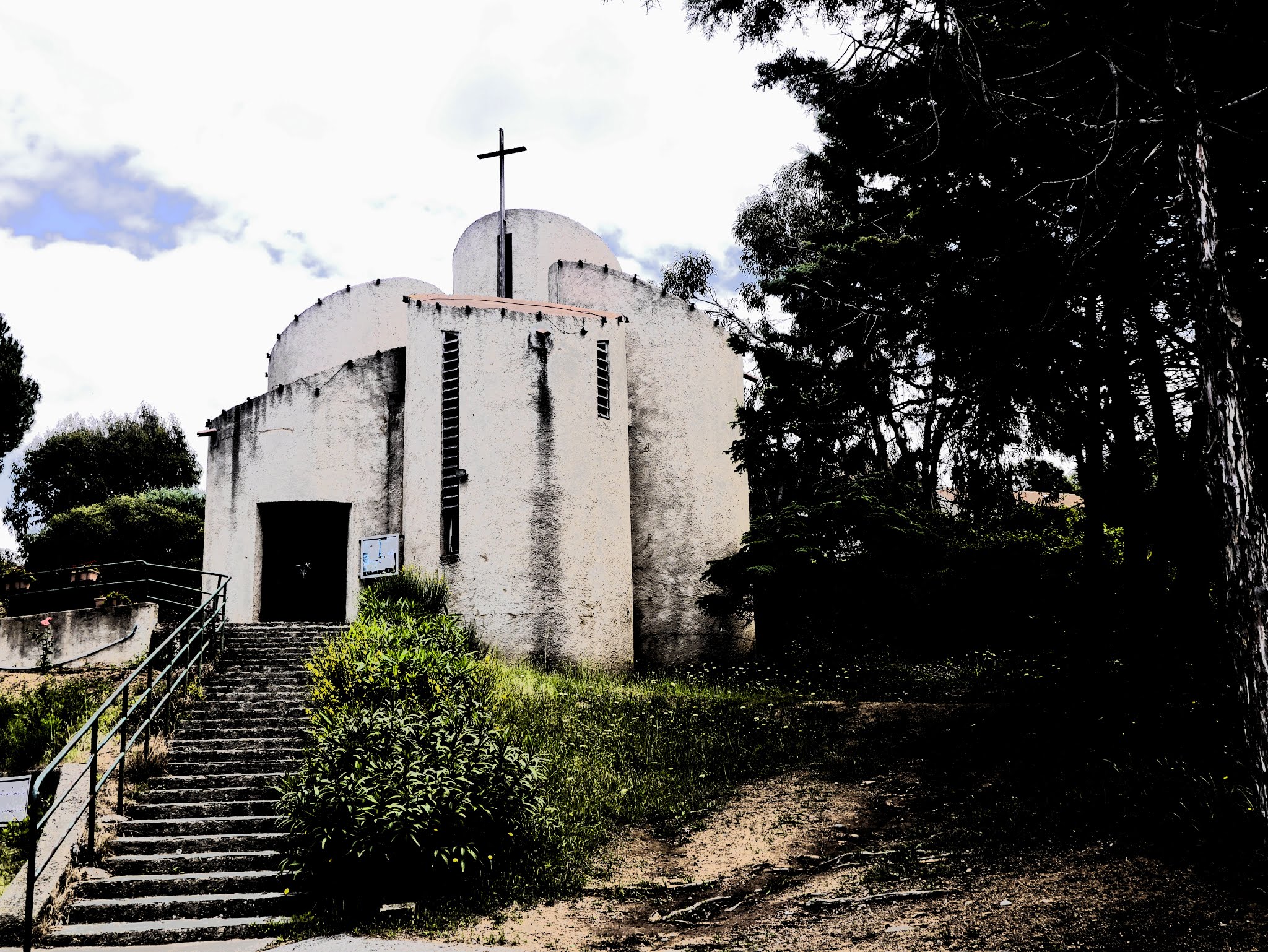 Petite église très agréable en amphithéâtre extérieur, avec une communauté paroissiale très accueillante. Nous aimons beaucoup participer aux célébrations au cours de nos vacances d’été.
