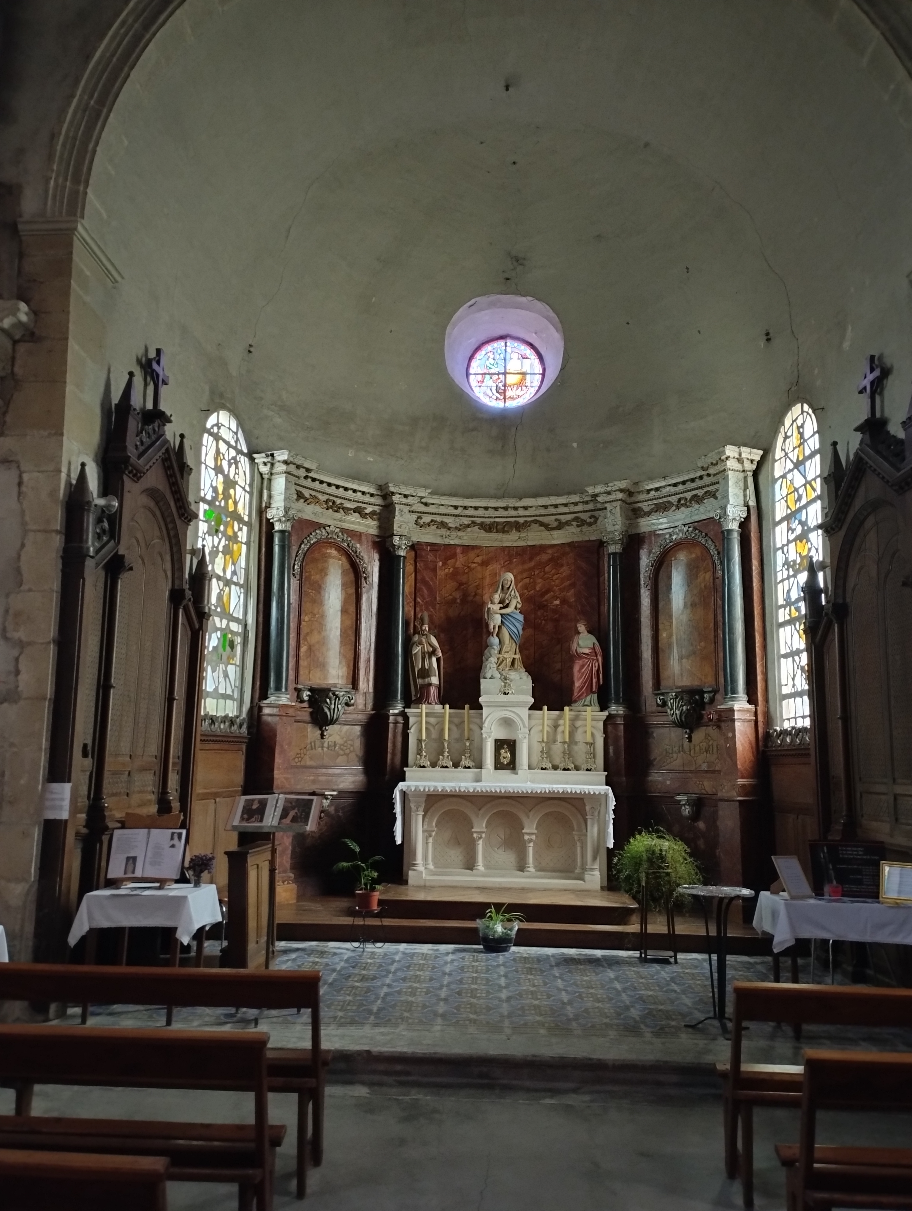 Construite à partir du 11è, cette église fut modifiée au 17è, 18è, 19è, et restaurée au 20è. Son clocher, chef-d'œuvre d'un compagnon charpentier du 18è, attire l'œil par son originalité. On y entre par une petite porte au Nord, l'intérieur à ce charme particulier des églises de village, accueillant par sa modestie dont émane une chaleureuse intimité ; parfait pour la prière, le recueillement ou tout moment consacré à la spiritualité. Le croisillon Nord et l'espace qui abrite les fonts baptismaux ont conservé leurs voûtes primitives en claveaux. Témoin millénaire hérité des anciens bâtisseurs, la visite de cette église séduira les curieux intéressés par le petit patrimoine bâti, tout comme les croyants. Peu importe sa place sur l'échelle des croyances, ce genre d'édifice est l'occasion, si rare aujourd'hui, d'échapper à ce monde de consommation compulsive.