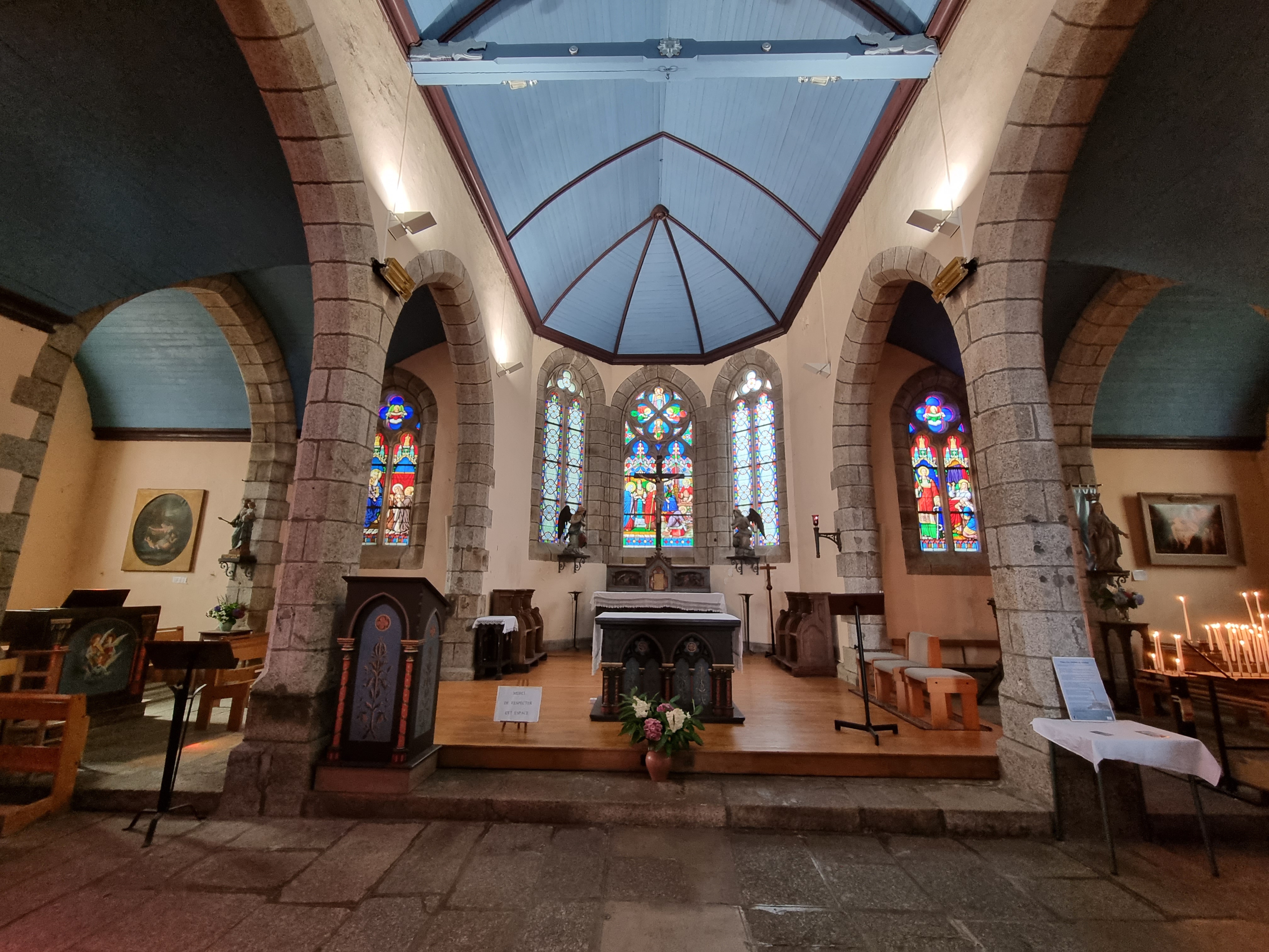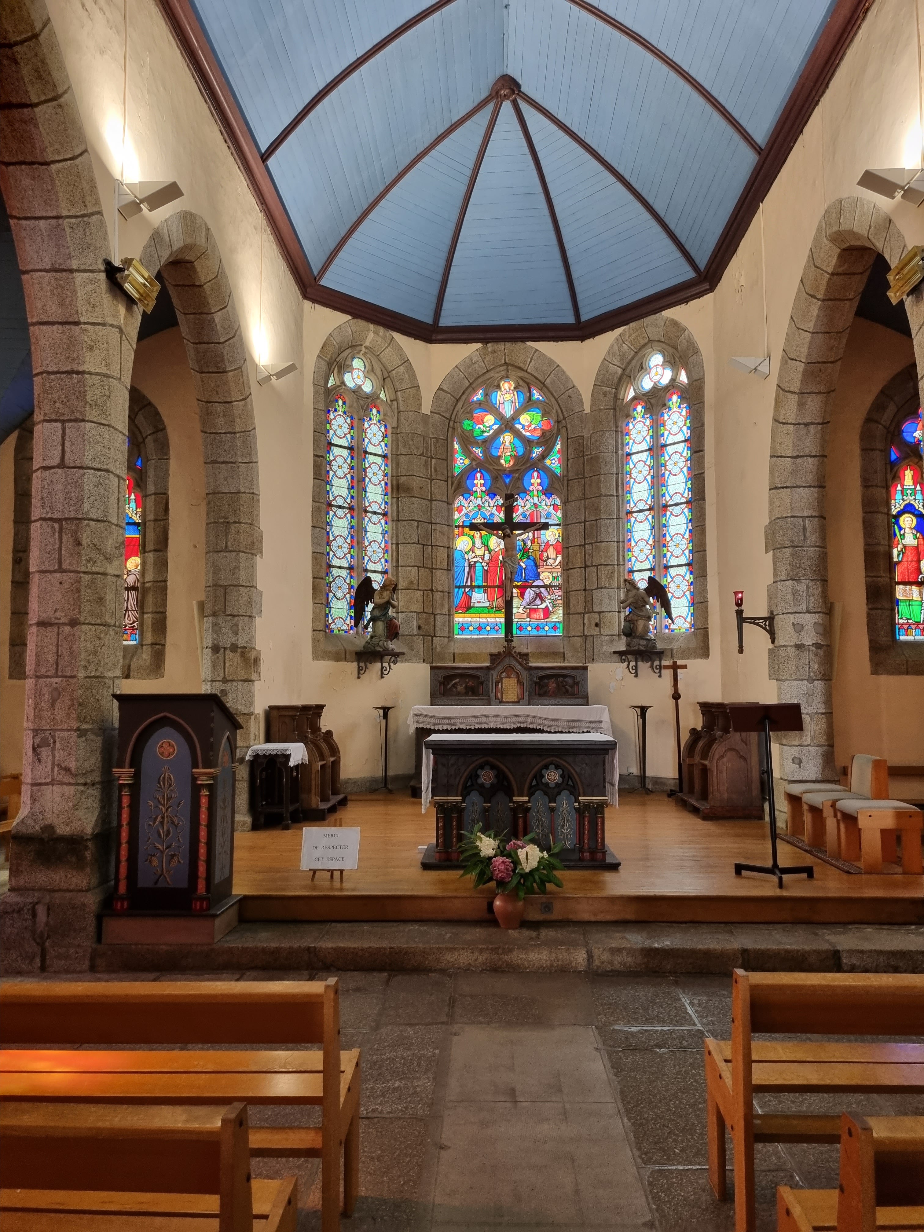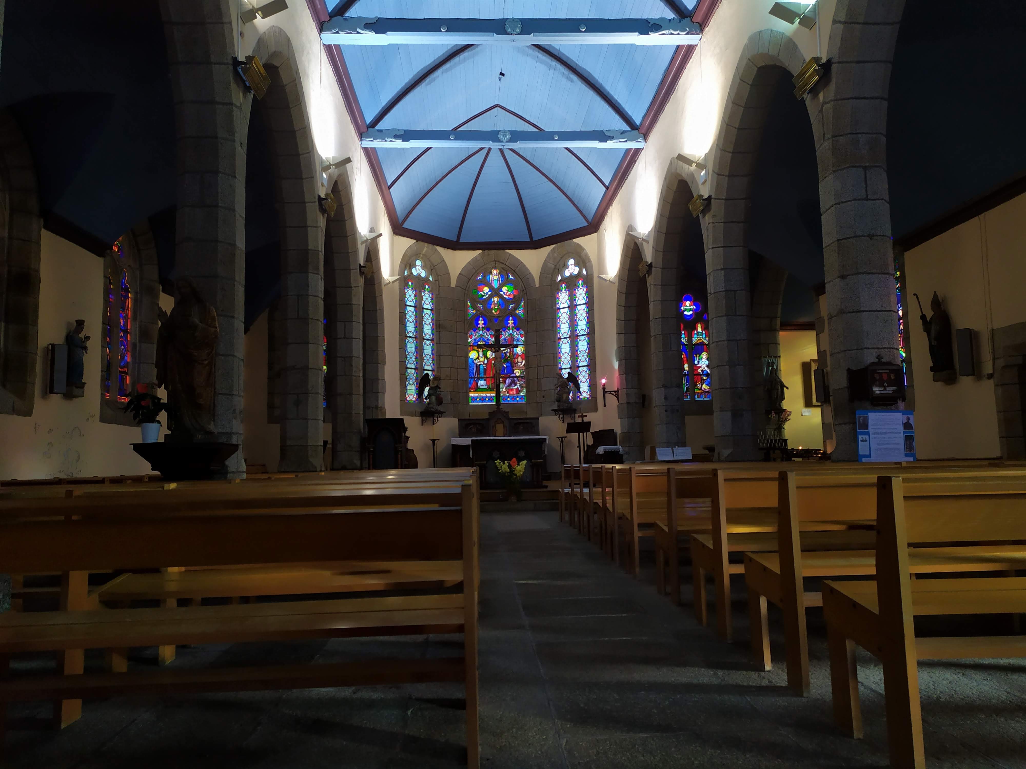 09/2021 - Église assez petite. Quelques beaux vitraux, modernes et plus anciens. Intérieur assez simple.
