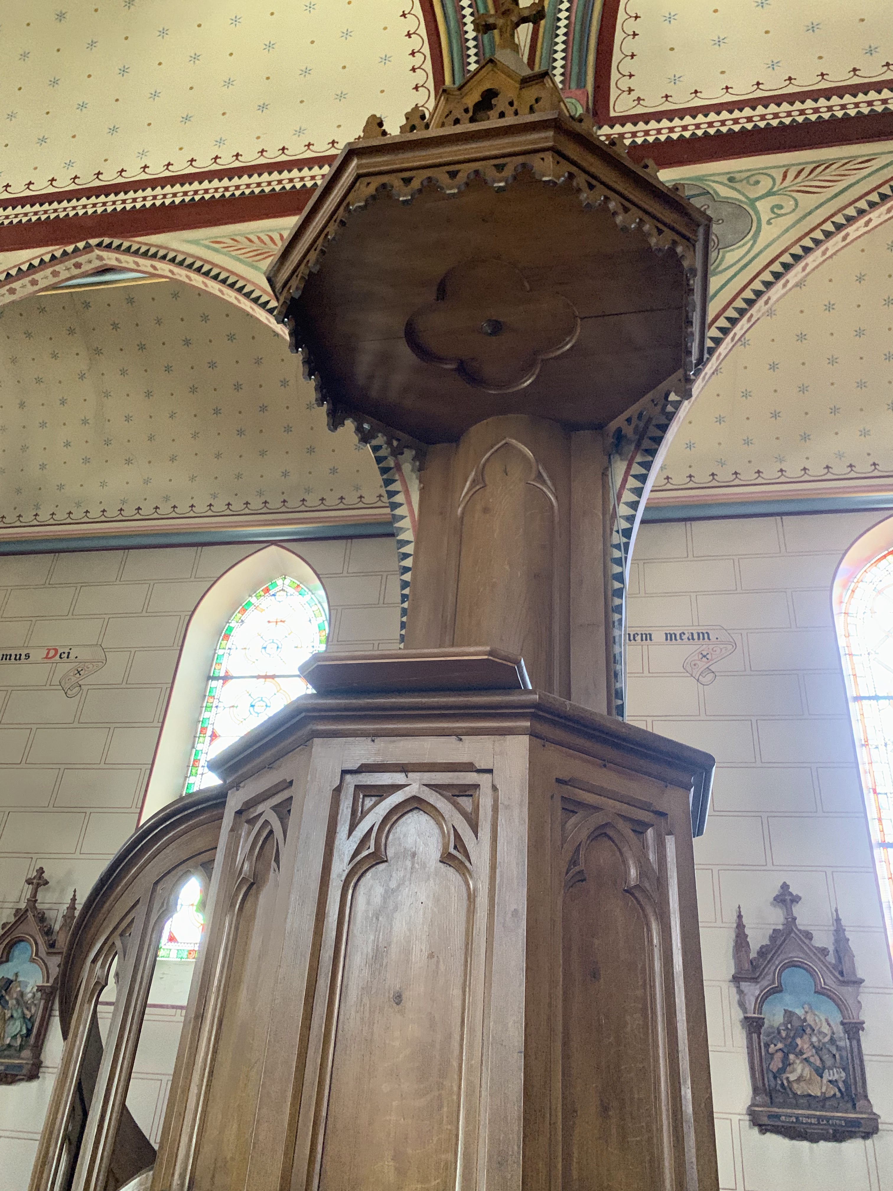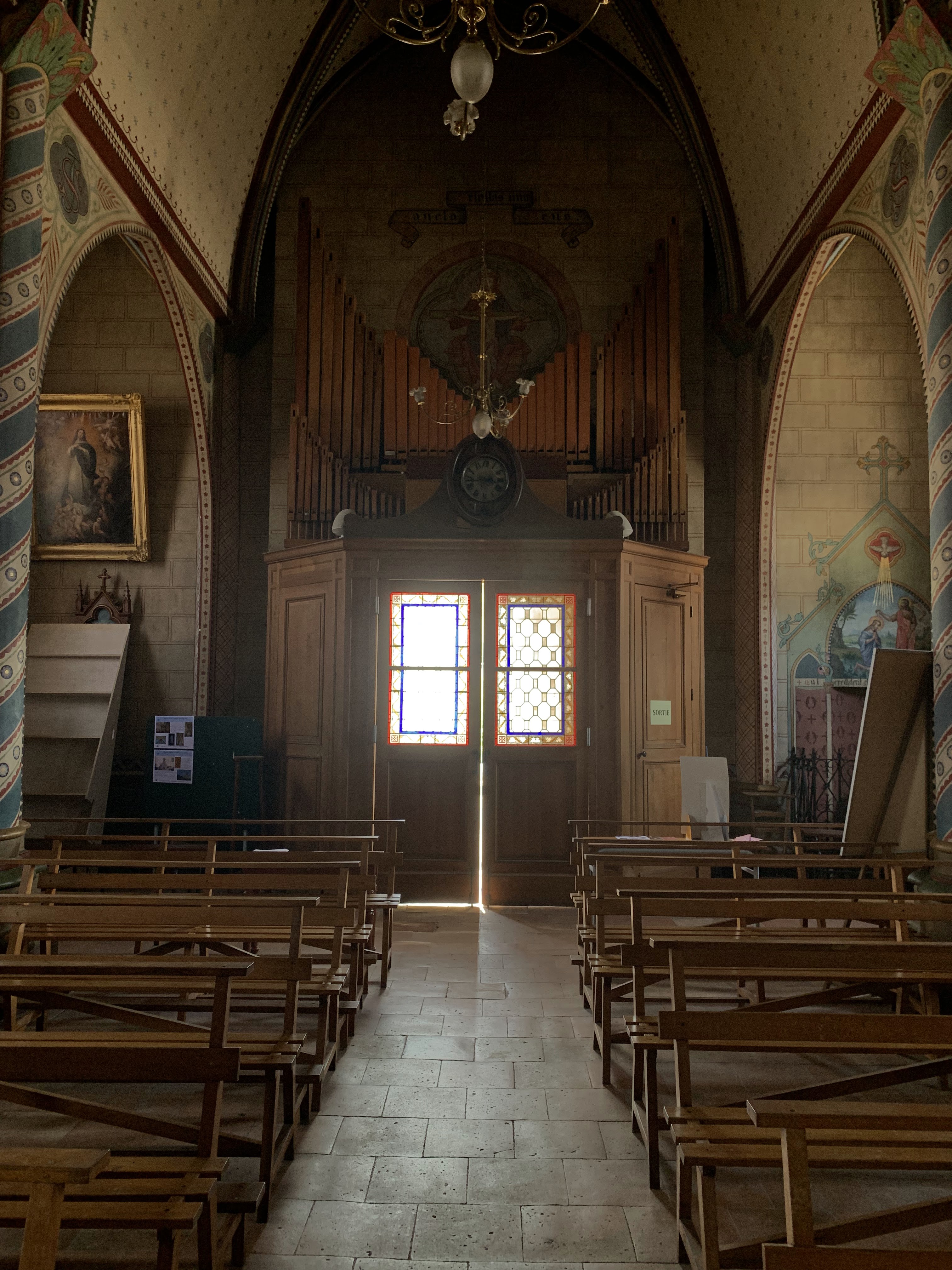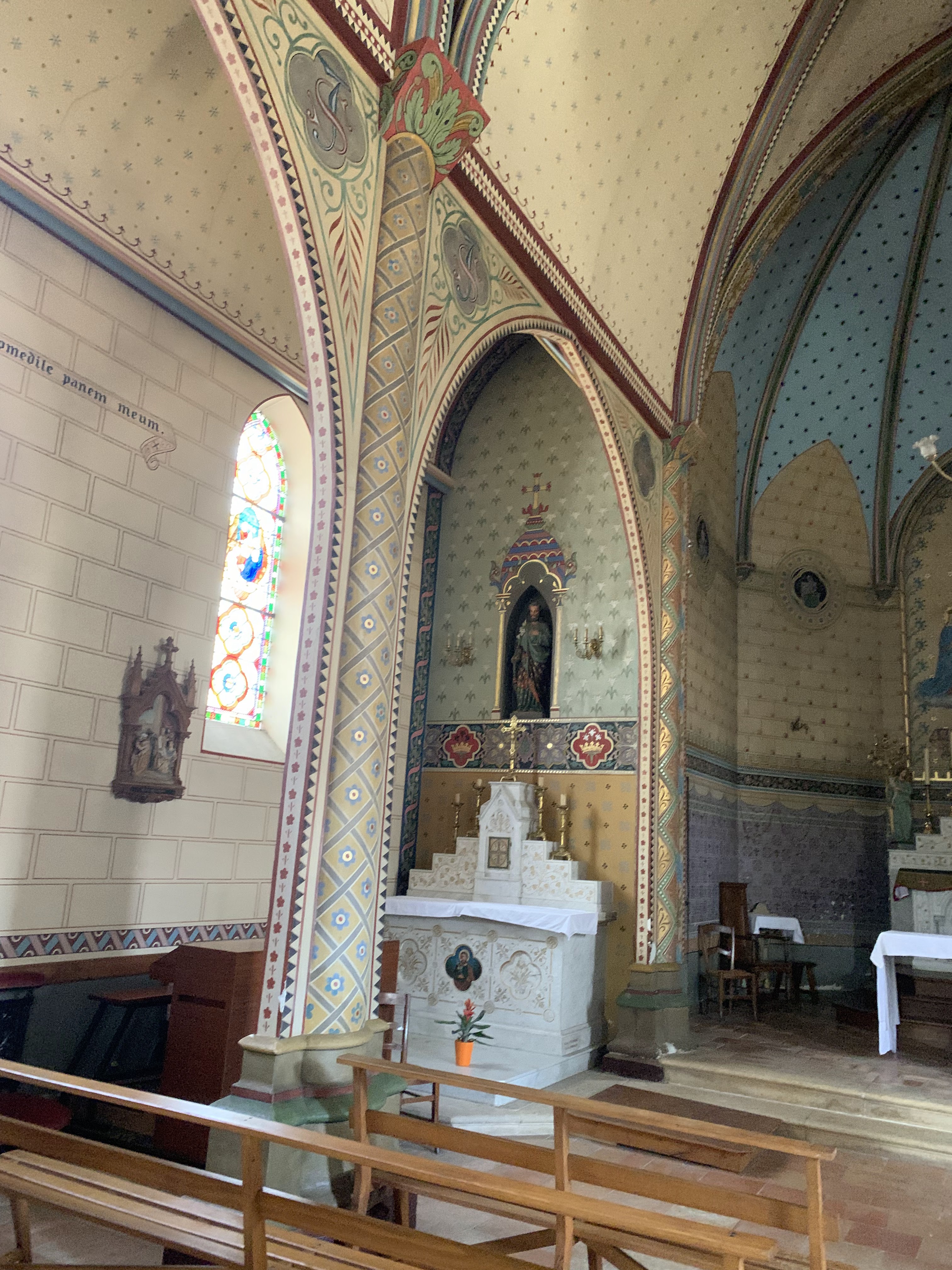 Cette petite église restaurée assez récemment est fort reposante et assez fraîche en plein mois d’août. Les vitraux et la décoration, certes relativement modernes pour un tel édifice, sont cependant de bon goût. Quelques chaises et d’autres bricoles qui mériteraient d’être entassées en quelque endroit approprié encombrent hélas différentes parties de l’église, près de l’entrée, et nuisent ainsi à l’agréabilité générale du lieu.