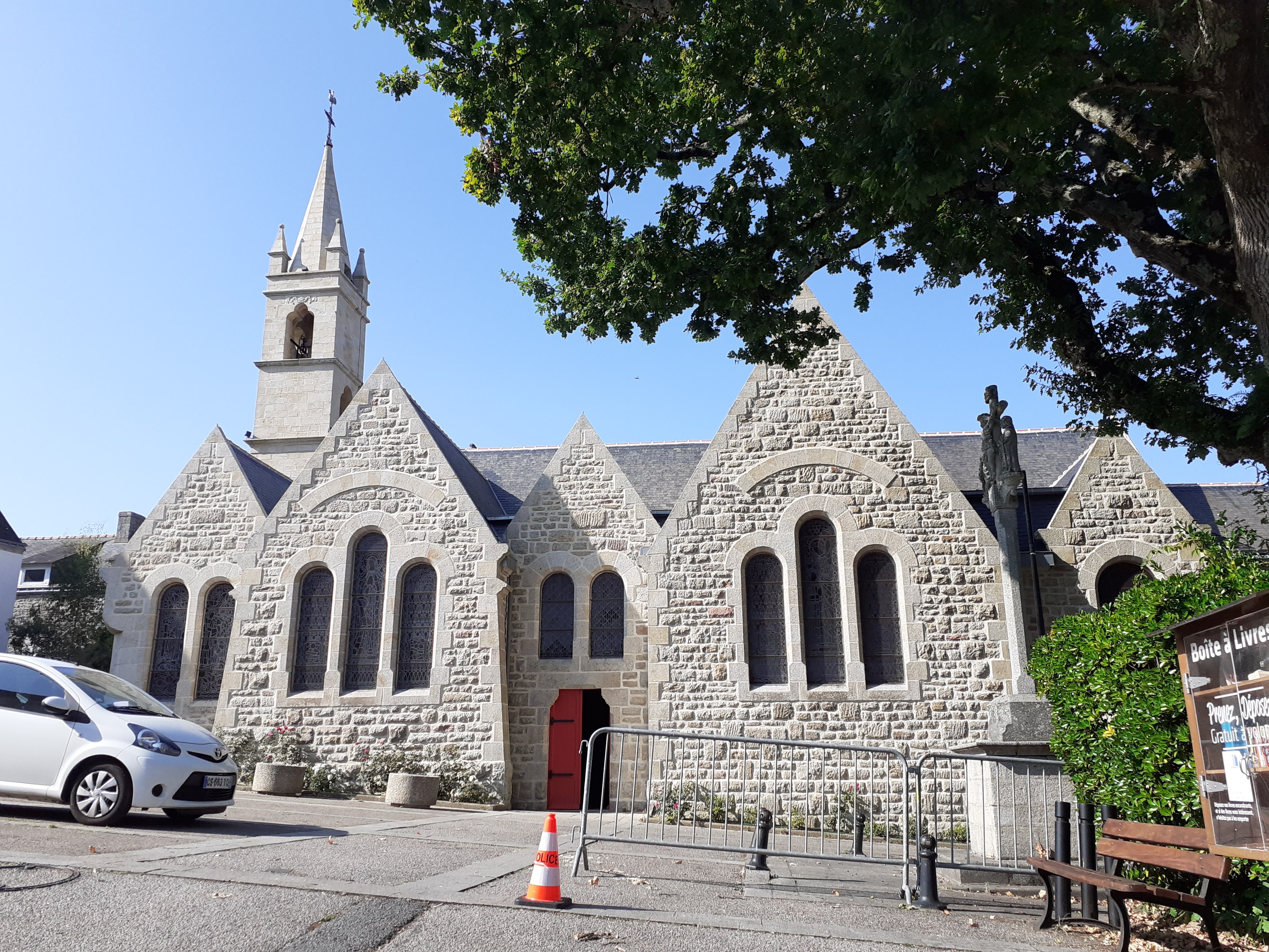 Jolie église bretonne traditionnelle. Elle rassemble une communauté active et fervente. Mais elle est un peu fraîche. Bien se couvrir.