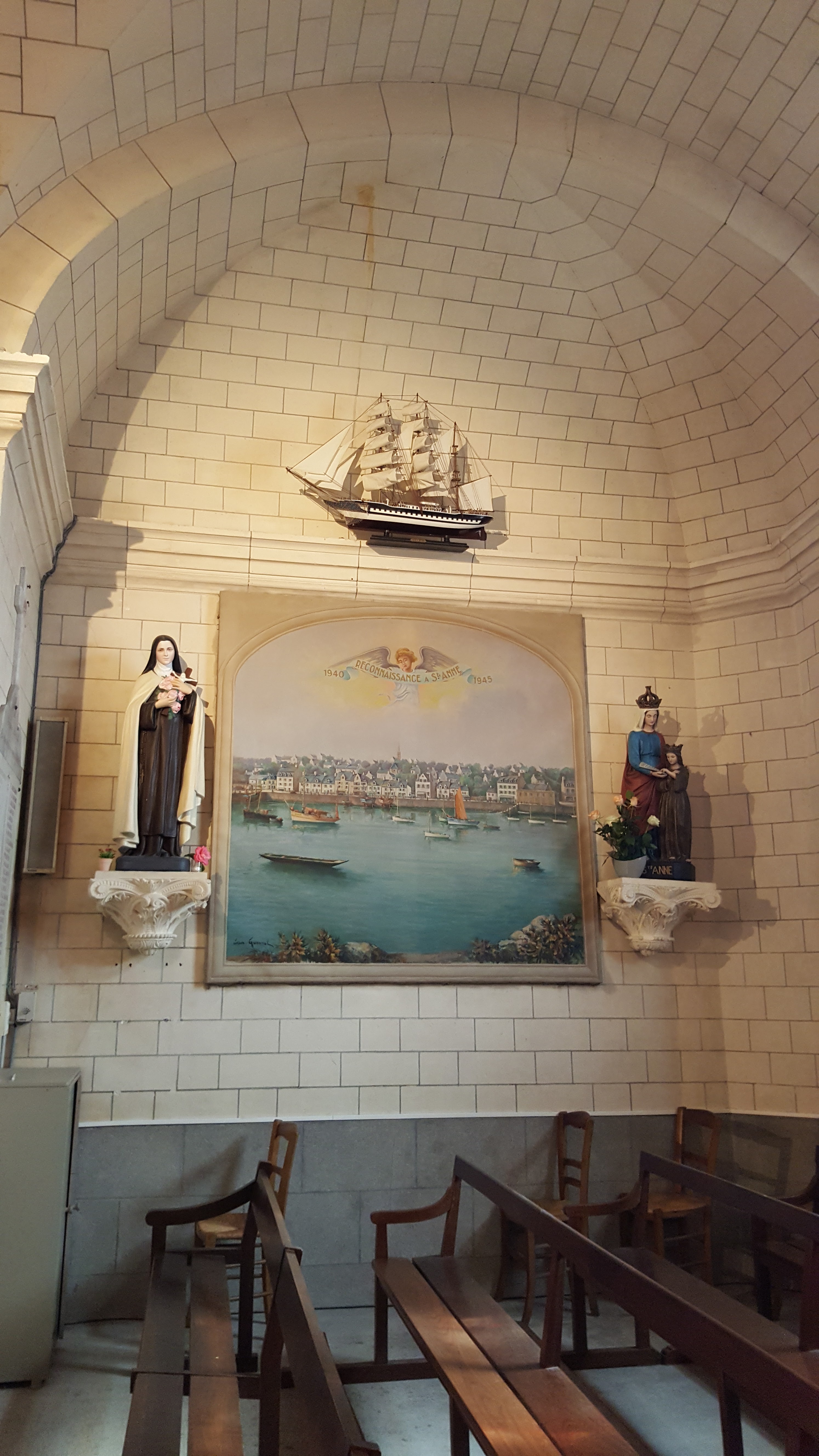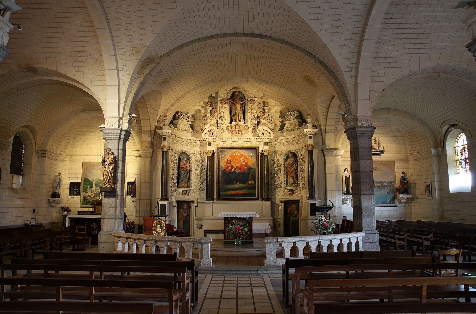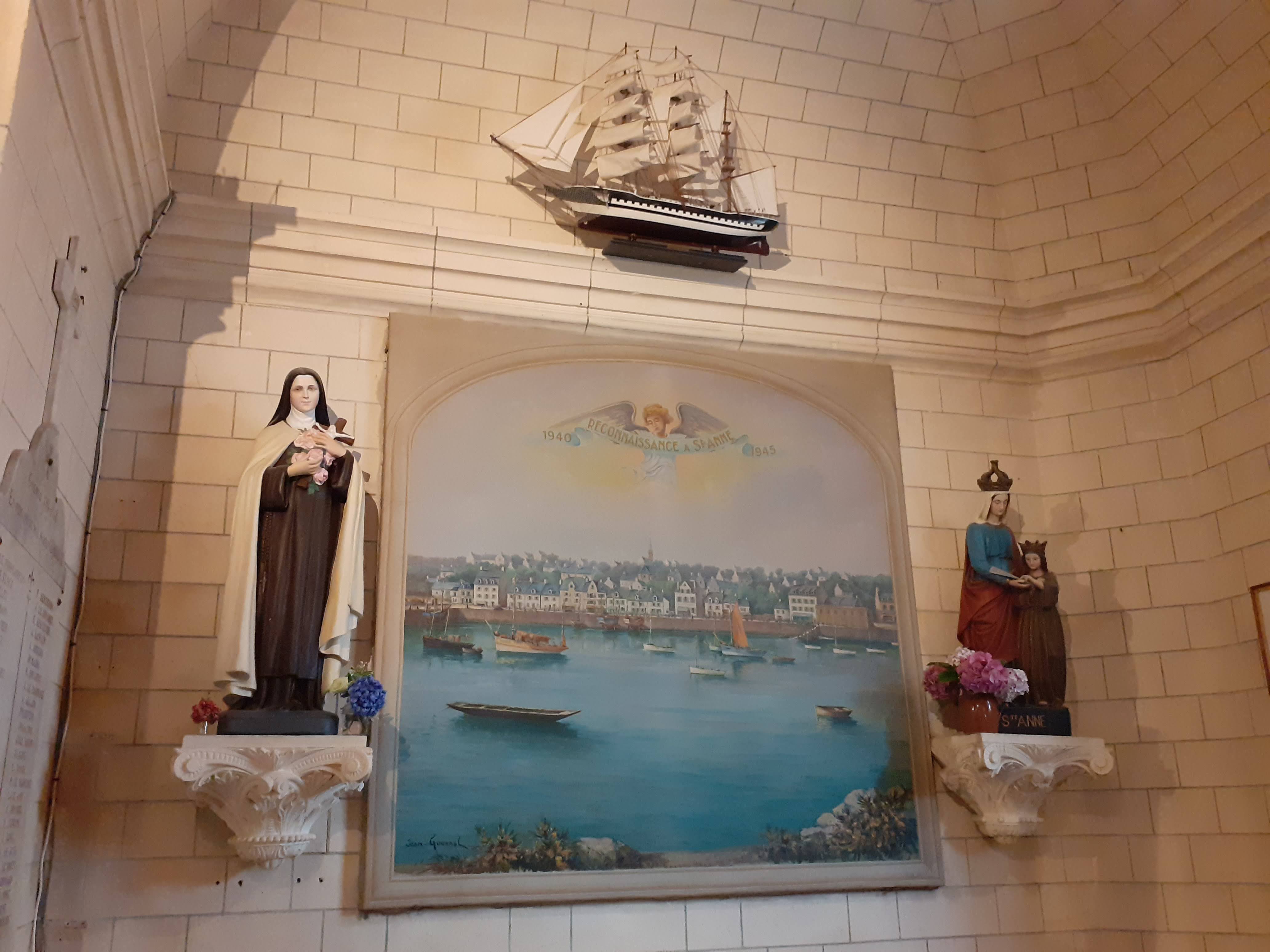 Une église où l'on se sent bien pas oppressé car elle est très lumineuse. De très beaux vitraux et les fresques de chaque côté de l'autel SUPER Une préférence pour celle à droite de l'autel qui représente le port e la Trinité sur Mer il y a bien longtemps. Croyant ou non. Une belle découverte vous attend