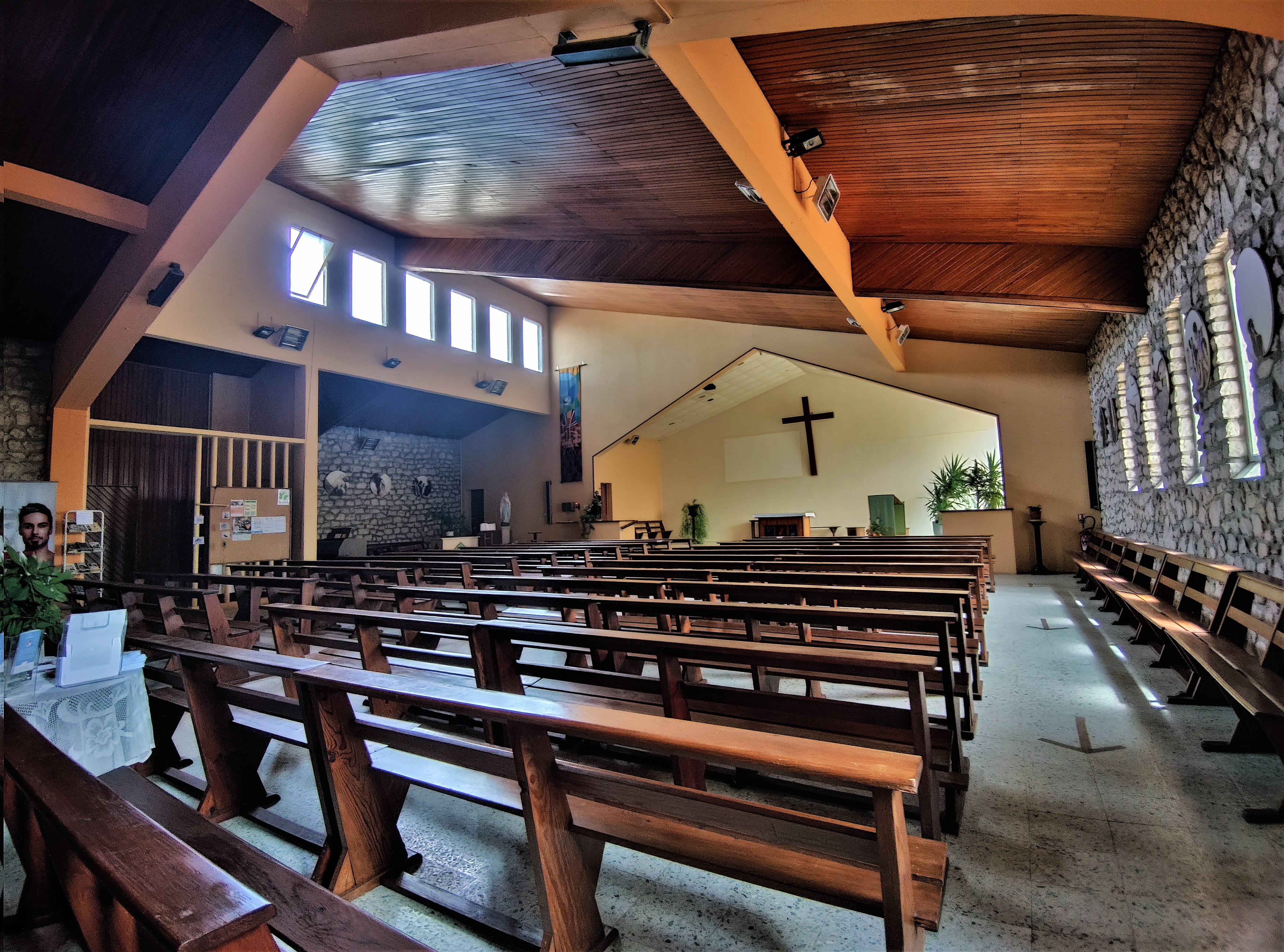 Église qui étonne de par son architecture dépouillée mais qui ne laisse pas indifférent. Perso ce n'est pas de mon goût mais il en faut pour tout le monde.