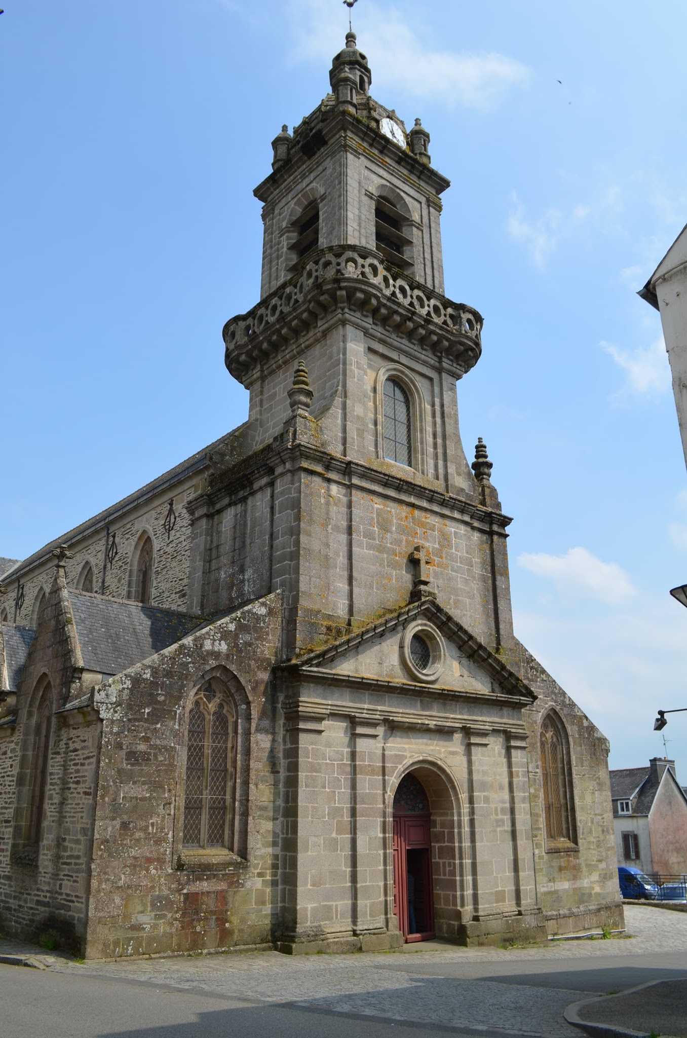 L'église a été reconstruite en 1878 mais a conservé le clocher datant de 1737. Elle est remarquable par la présence de peintures de Paul Sérusier (1864 - 1927 mouvement des nabis) dans le baptistère.
