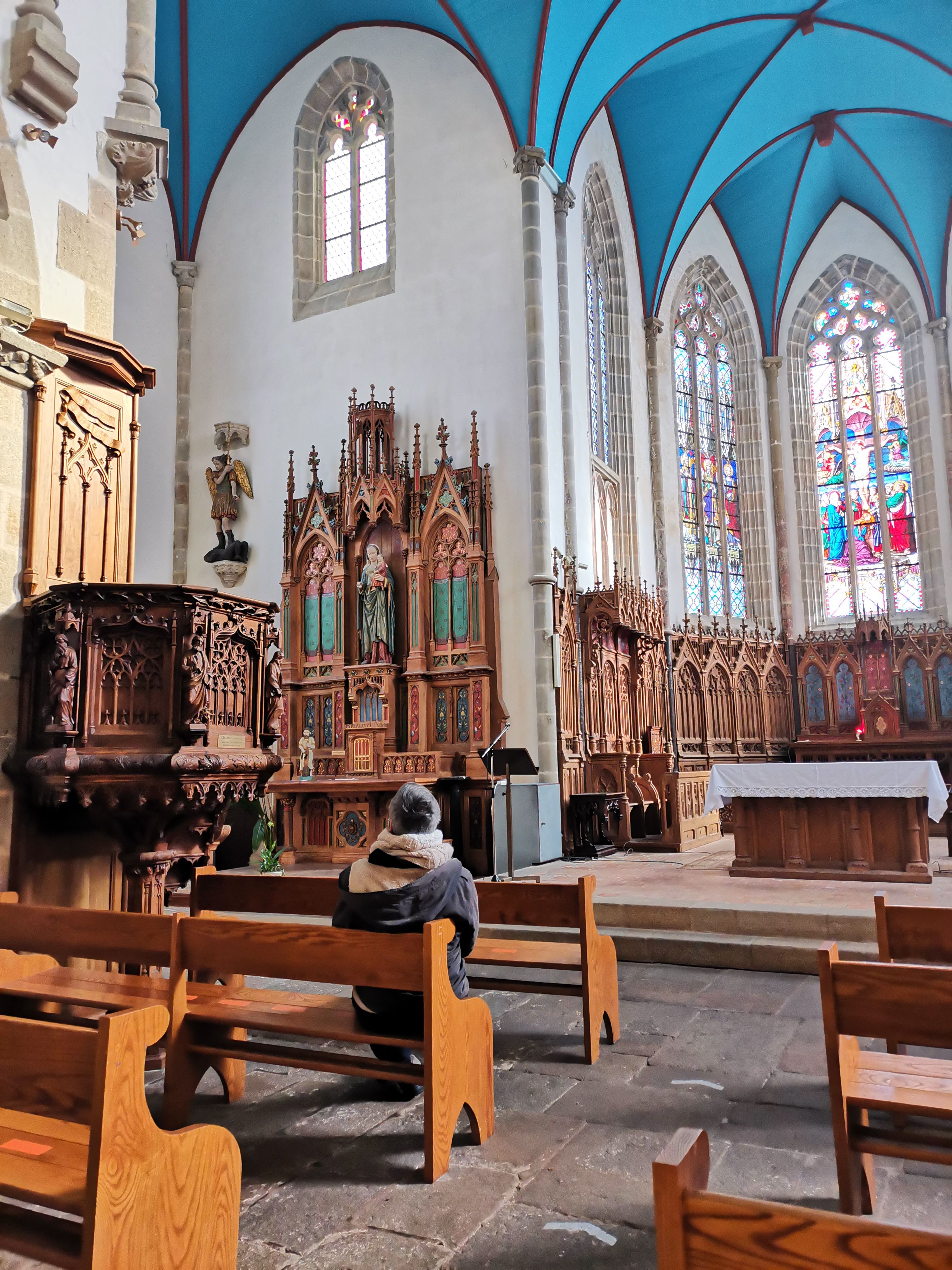 Cela fait presque 7 mois que nous emménageons ici dans cette ville et la première fois que j'ai visité cette belle église avec mon mari j'ai toujours été émerveillée dans toutes les églises que je visite enfin je vois l'intérieur de l'église ici à Châteauneuf du faou ❤️🙏⛪