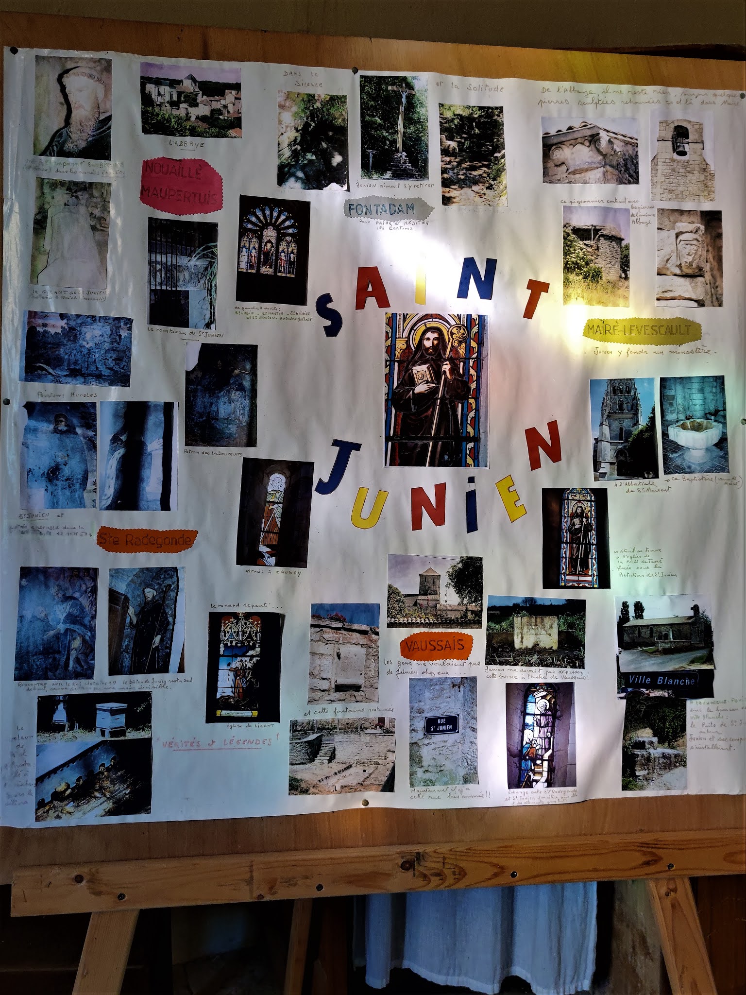 La petite église Saint-Junien mérite une visite, elle témoigne d'un passé parfois violent et dévastateur. L'extraordinaire modestie de cette église est terriblement parlante et son histoire est adossée à celle du village. Mairé-Levescault posséda une abbaye-forteresse dont il reste quelques fortifications. Créée Au 6ème siècle par Junien, ermite devenu abbé, élevé au rang d'évêque par son amie Sainte-Radegonde ; la commune de Mairé reçu alors le suffixe Levescault et l'abbaye dépendit de l'évêché de Poitiers. Au 8ème siècle, pour Pépin le Bref, les conflits sont nombreux, guerres territoriales aux frontières et révoltes à l'intérieur du royaume. L'abbaye de Mairé-Levescault en souffre, diminuée, elle est rattachée à l'abbaye de Nouaillé. Sur le site de l'abbaye, fut bâtie au 12ème siècle une église romane, église primitive appartenant également à l'abbaye de Nouaillé. Cette abbaye de Mairé-Levescault, en partie détruite au 8ème siècle, fut totalement dévastée à la révolution, l'église romane fut pillée et ravagée. Puis en 1814, les restes de l'abbaye et de l'église furent vendus, l'église fut rasée en 1830. La nécessité de reconstruire une église devint rapidement une évidence, la décision fut prise dès 1839. Mais l'époque est à l'austérité, l'Abbé Charles Chaubier de Larnay parle d'extrême pauvreté. Transformer en église la grange de l'ancien presbytère semble un projet réalisable. C'est donc l'église actuelle, ouverte et accueillante, des vitraux colorés apportent joie et fantaisie. La nécessité de reconstruire une église devint rapidement une évidence, la décision fut prise dès 1839. Mais l'époque est à l'austérité, l'Abbé Charles Chaubier de Larnay parle d'extrême pauvreté. Transformer en église la grange de l'ancien presbytère semble un projet réalisable. C'est donc l'église actuelle, ouverte et accueillante, des vitraux colorés apportent joie et fantaisie.