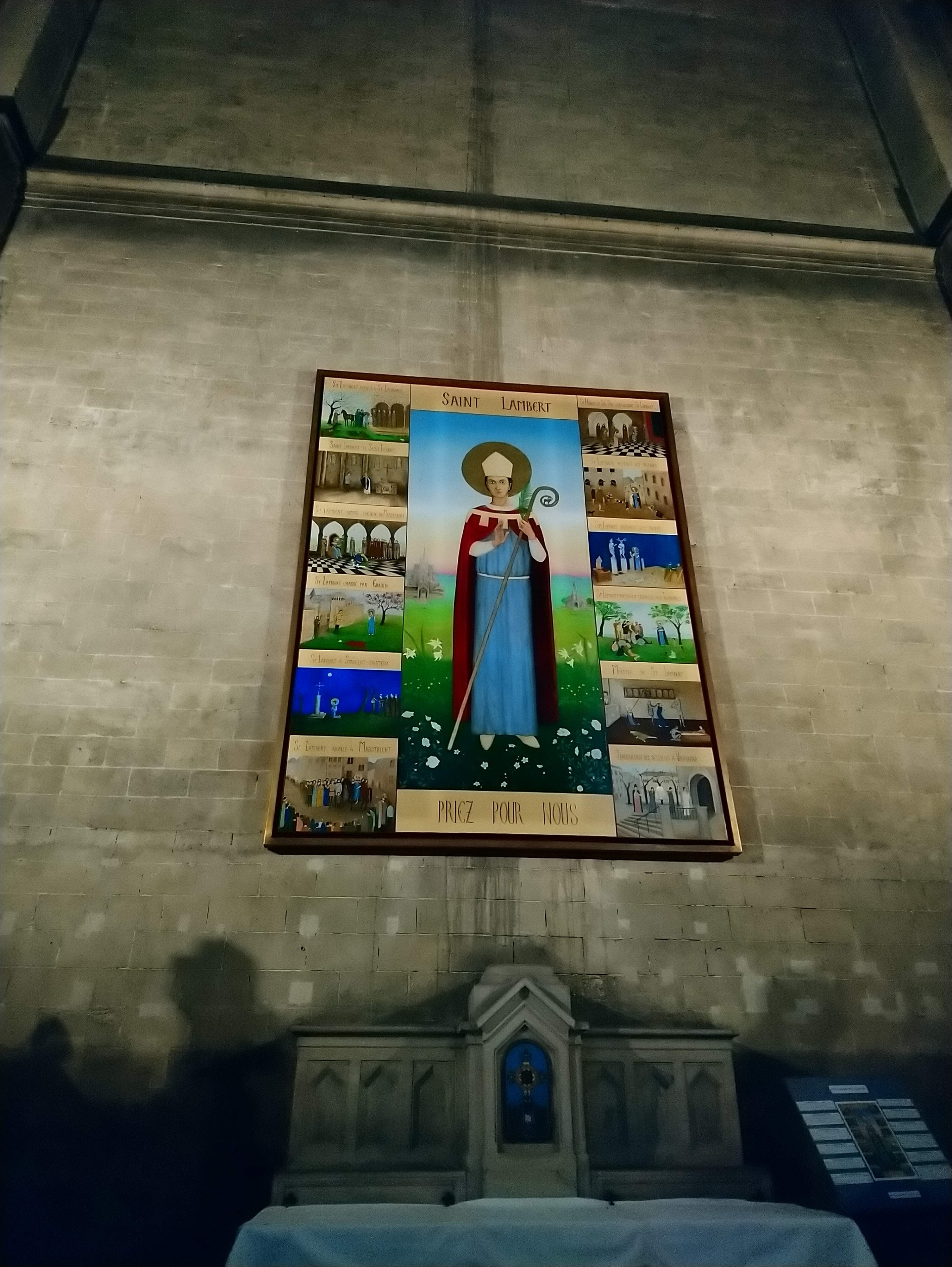 Il m'est difficile de parler de cette église car c'est toujours avec l'émotion de l'enfant de 6 ans qui la découvre pour la première fois. Cette église au début des années 1950 était régit essentiellement par des abbés dont l'abbé De lille qui s'occupait de la centaine de gamins entre 6 et 12 ans. Bien que turbulent et peu attentif au catéchisme, je fus choisit pour servir la messe en tant qu'enfant de coeur pendant 5 ans. Autant vous dire que l'église n'avait plus de secrets pour moi et mes copains. L'église Saint-Lambert avait une décoration et un ameublement austère qui allait très bien avec les interminables messes de Noël et de Pâques toutes célébrées en latin. J'ai la nostalgie de cette époque certes imparfaite mais au combien chaleureuse. Les gens se voyaient, se parlaient....une autre époque, une autre église.