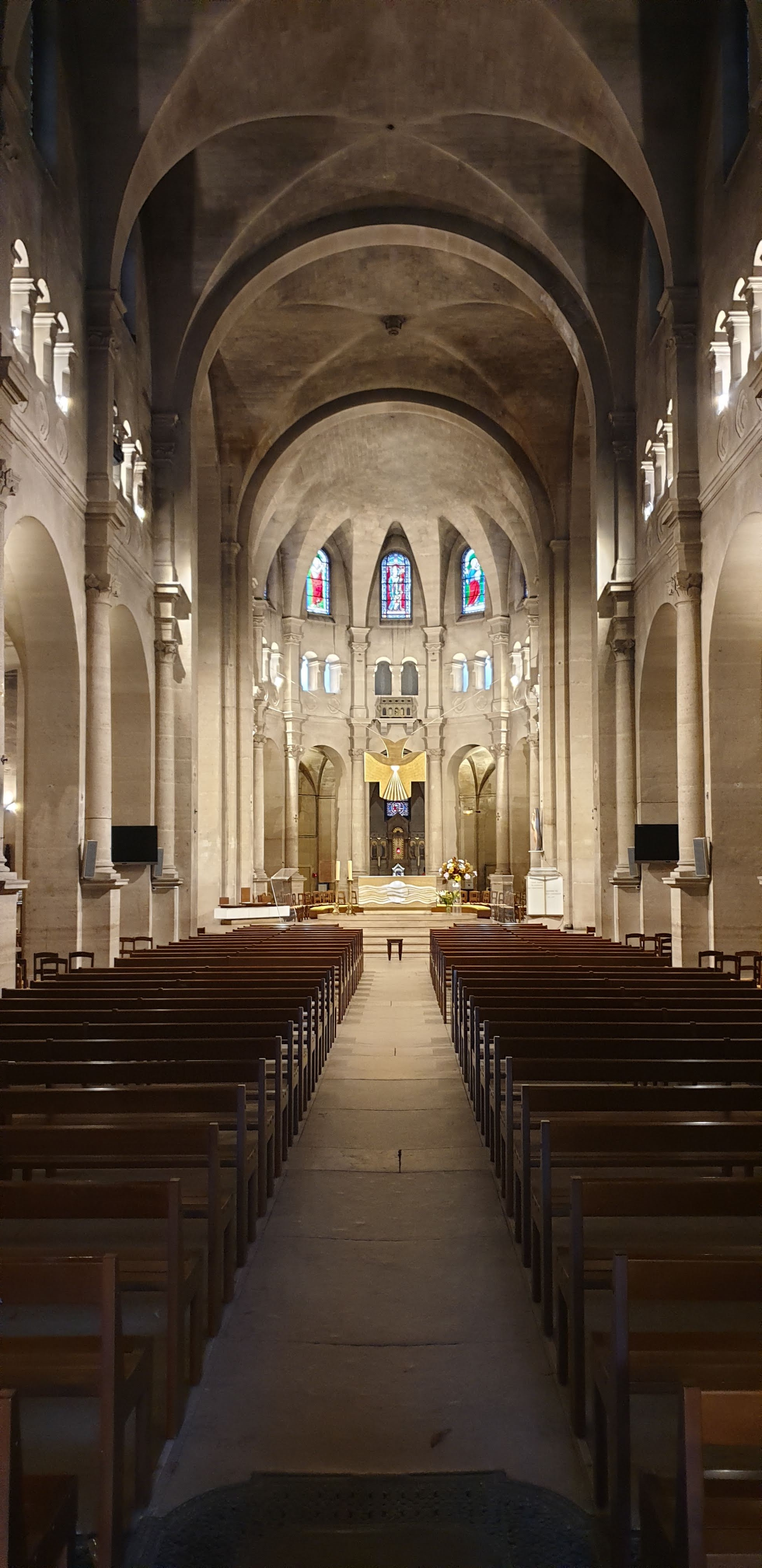 Très belle église avec des beaux vitraux ,dommage qu'elle soit cachée par des grands immeubles !