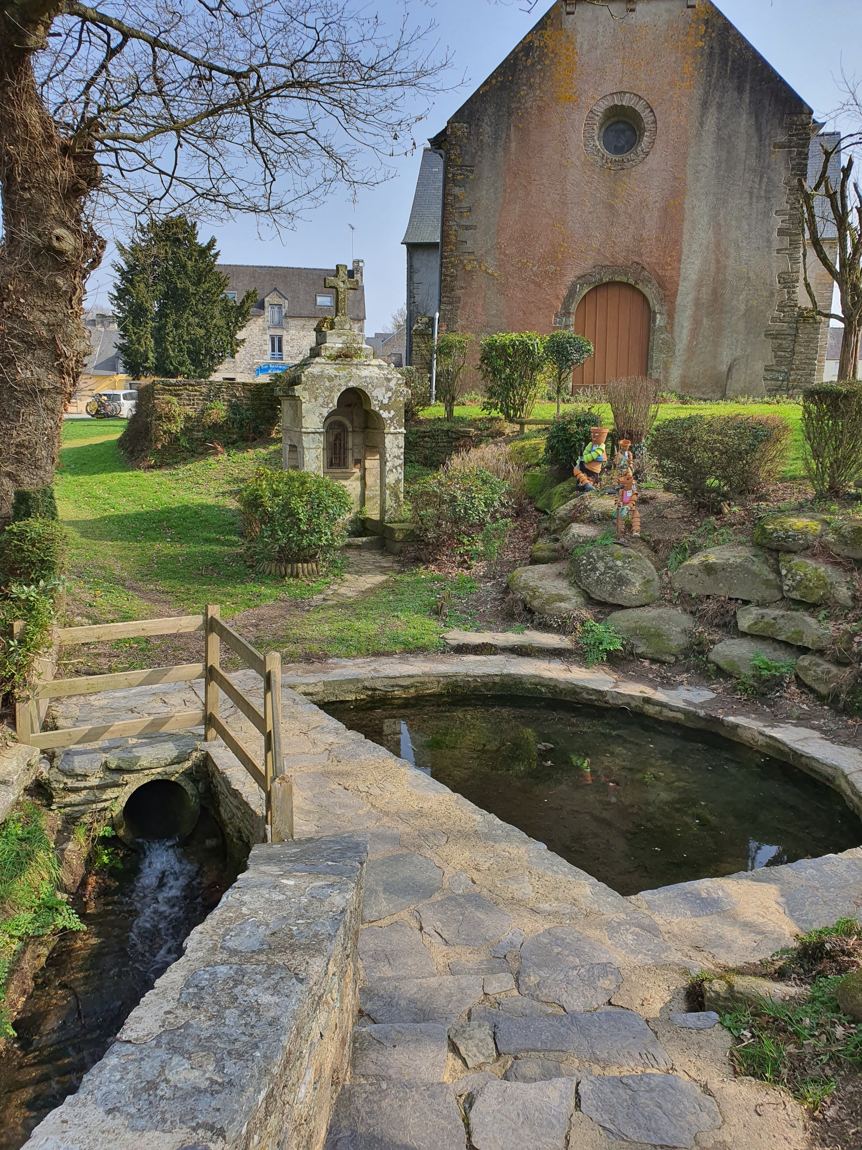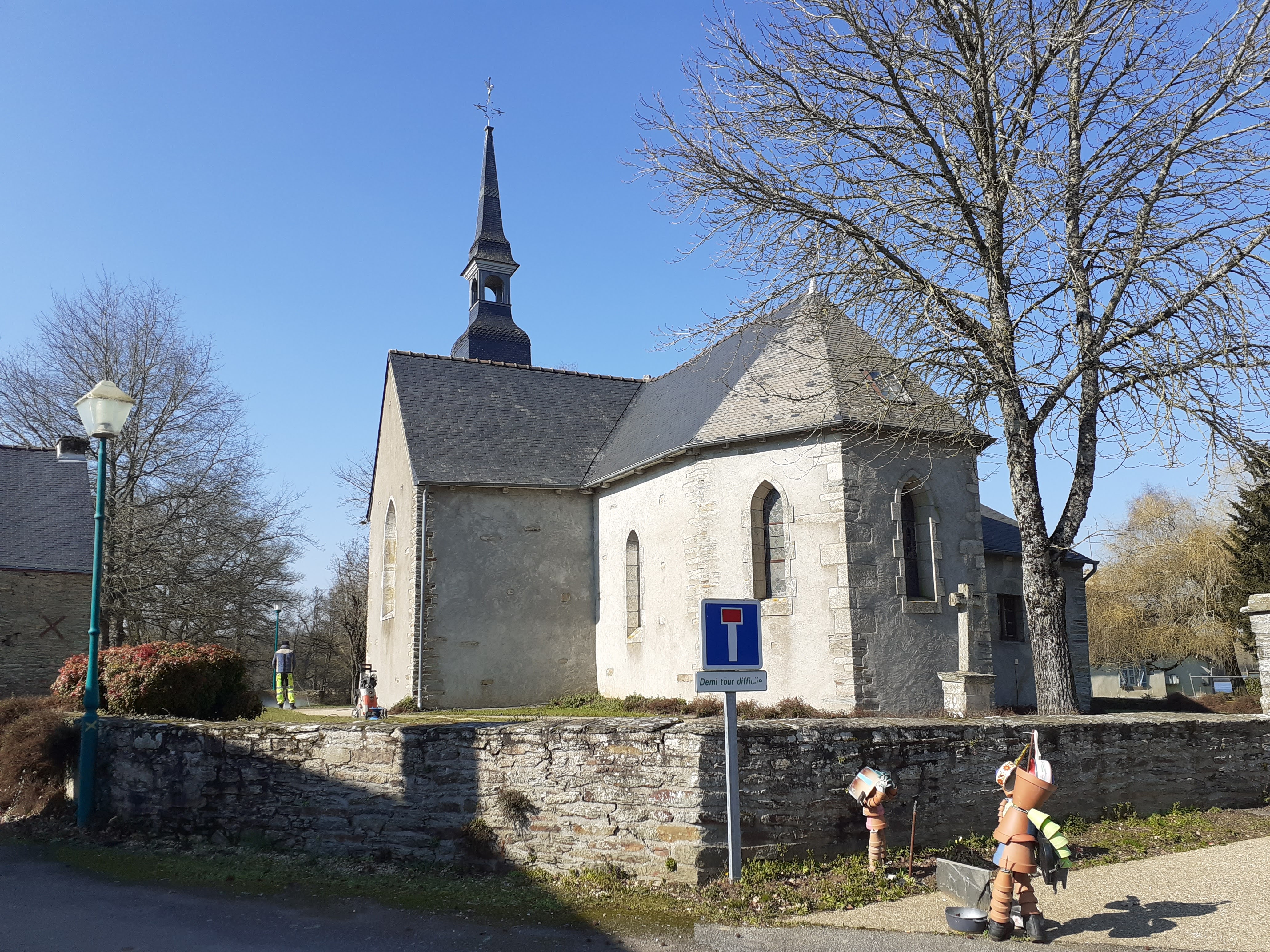 Première chapelle, milieu XV ème, au XVII ème, agrandissement. Sa fontaine et les bords de l'Oust. Très joli clocher.