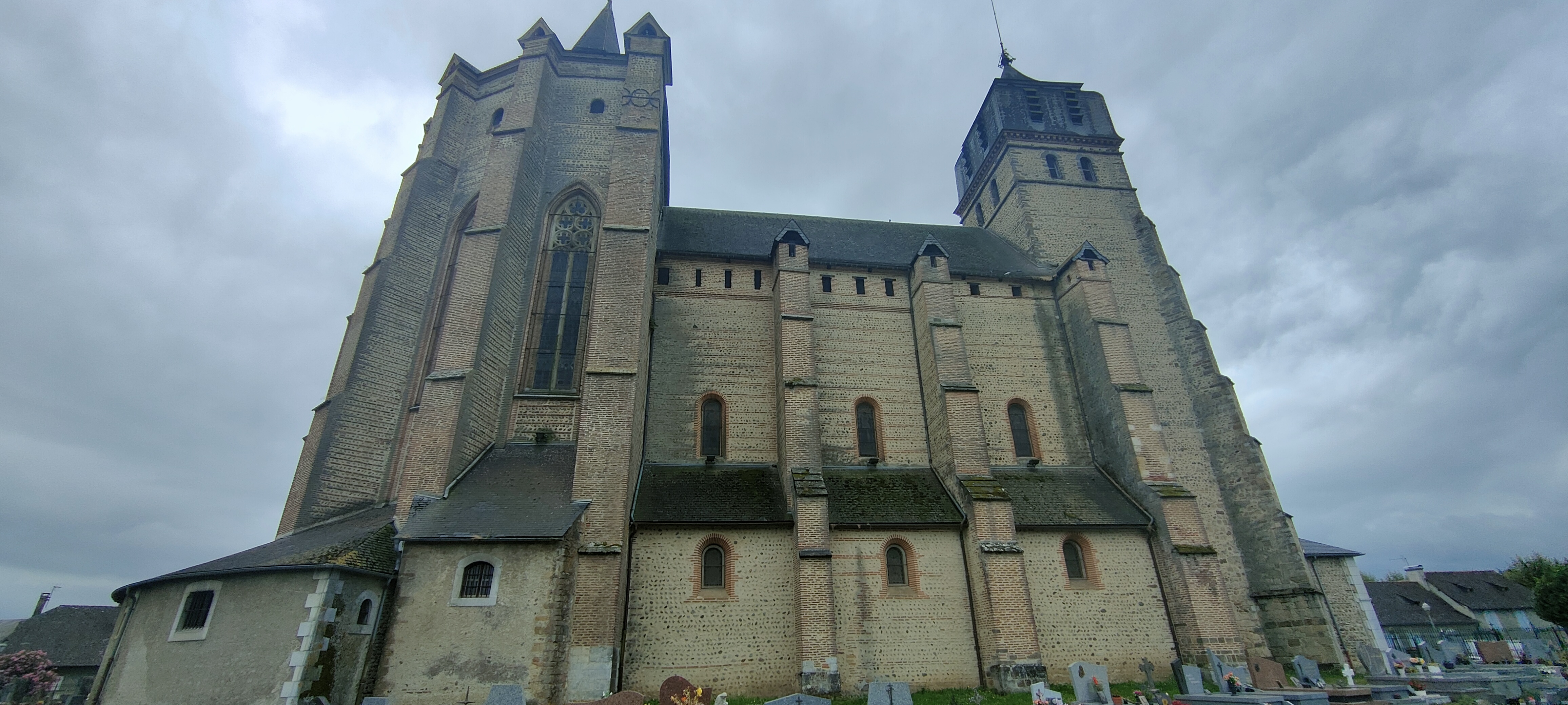 C'est une collégiale qui se détache dans le paysage, vue de prèt très imposante style gothique, l'intérieur ne peut être visible qu'en passant par la mairie ...et en semaine ! Nous avons pu admirer l'architecture de l'extérieur. Les galets de l'Adour ressortent bien et le village d'Ibos mérite d'être parcouru à pied.