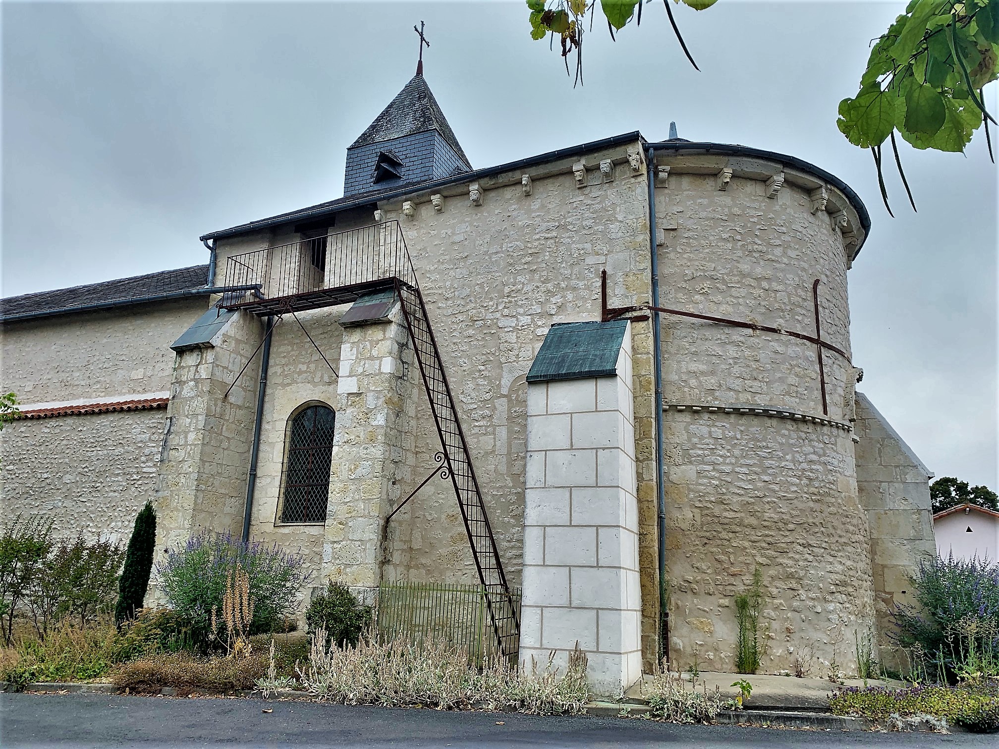 L'édifice est très ancien, cette église est citée depuis le 10ème siècle. L'abside et le chœur, parties les plus anciennes, sont datées du 11ème ou 12ème siècle, éléments d'une église qui a remplacé celle du 10ème siècle. Des modillons sont visibles sur l'abside. Au 15ème siècle, la nef unique de l'édifice roman s'est vue adjoindre, au nord, un bas-côté prolongé par la chapelle seigneuriale construite précédemment. La nef romane a été beaucoup transformée, piliers et arcades la séparent du bas-côté nord, des arcatures meublent et décorent le mur sud qui est aveugle. Monter à la tribune permet d'avoir une vue d'ensemble de l'église, on peut se placer en face de chaque vaisseau, voir les croisés d'ogives du collatéral et la voûte en berceau de la nef principale. Cette dernière voûte est en plâtre. Ouverte et accueillante, cette église témoigne de 1000 ans d'histoire.