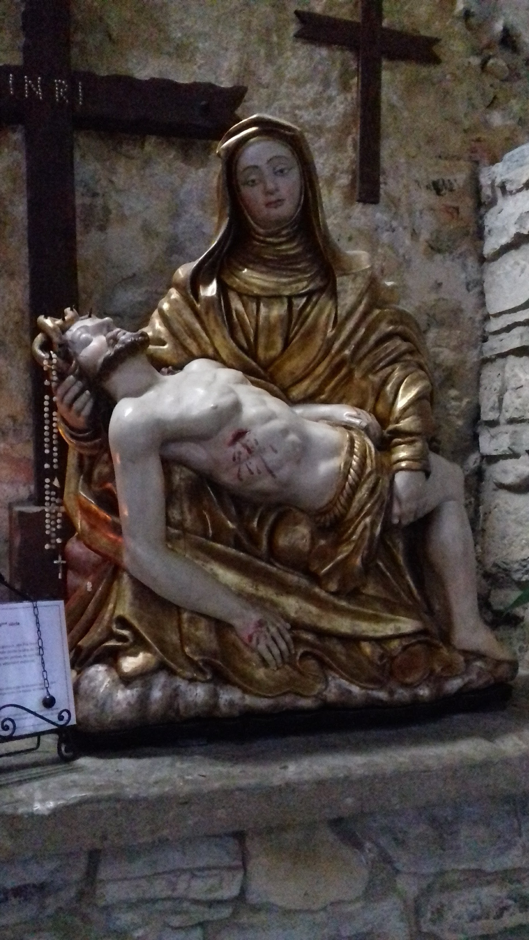 Une très belle église tte blanche avec son drôle de clocher. Un intérieur style de la région mais avec un choeur magnifiquement décoré. Très belle Pieta.