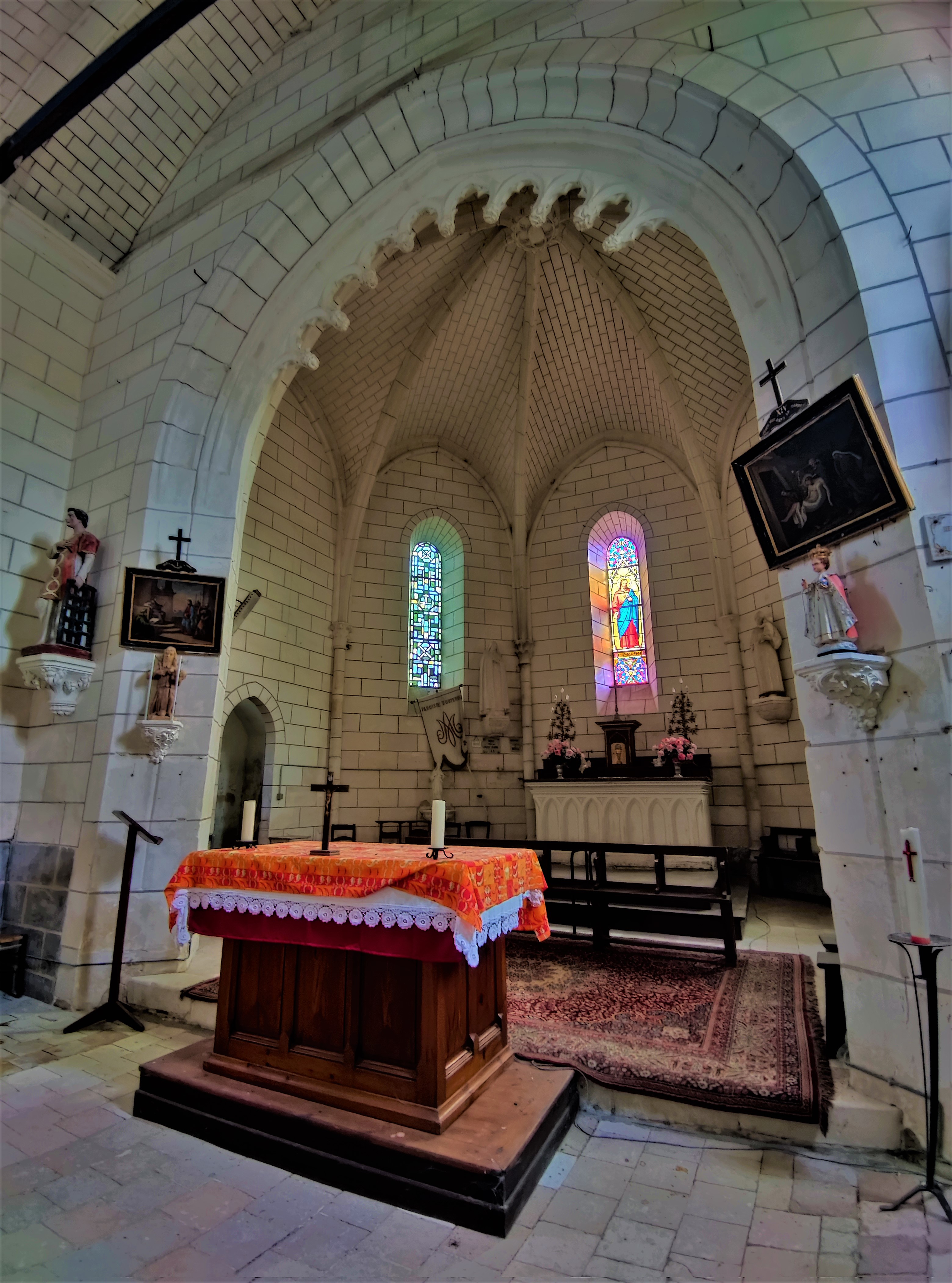 L'histoire du village d'Obterre remonte loin dans le temps, son église a des origines millénaires, il faut s'adresser à la mairie pour la visiter. Depuis la mairie, l'église, située sur les hauteurs, est accessible à pied pour les courageux. L'édifice roman primitif a été modifié et agrandi au 16ème, prolongé d'un chœur et abside à 5 pans. Le chœur était alors la partie basse du clocher qui s'élevait à l'Est de l'église. Au 19ème de nouvelles modifications eurent lieu. Ce chantier de 1860 vit le clocher démonté et reconstruit à l'Ouest, d'où le clocher-porche actuel. Bien entretenue et bien tenue, cette église est accueillante, les vitraux de belle facture diffusent un éclairage fort agréable. Obterre est une commune rurale située à proximité de la réserve zoologique de la Haute-Touche, visite incontournable pour les amoureux des animaux. un endroit où l'on a développé l'idée d'élevage et du confort animal avant l'idée de spectacle.