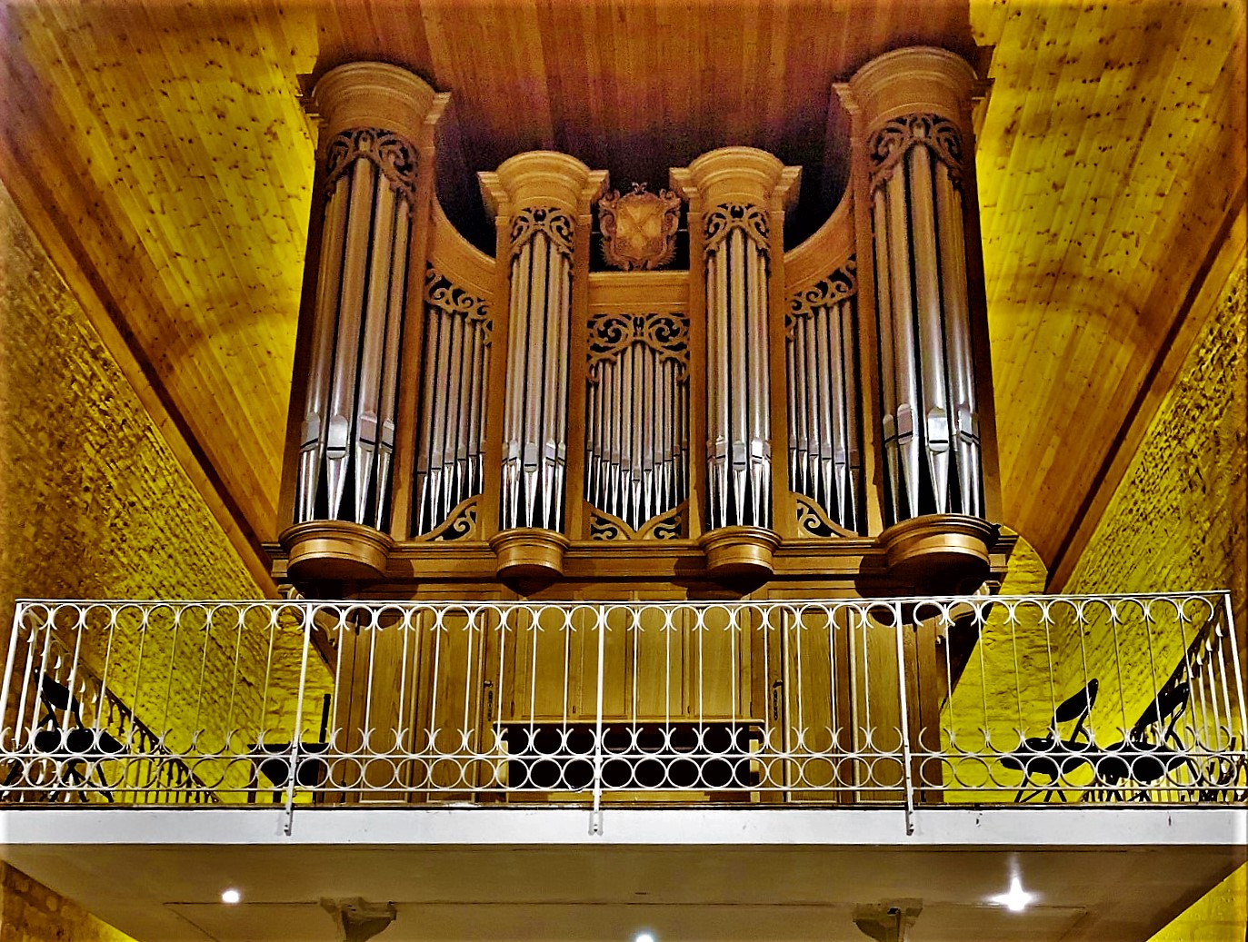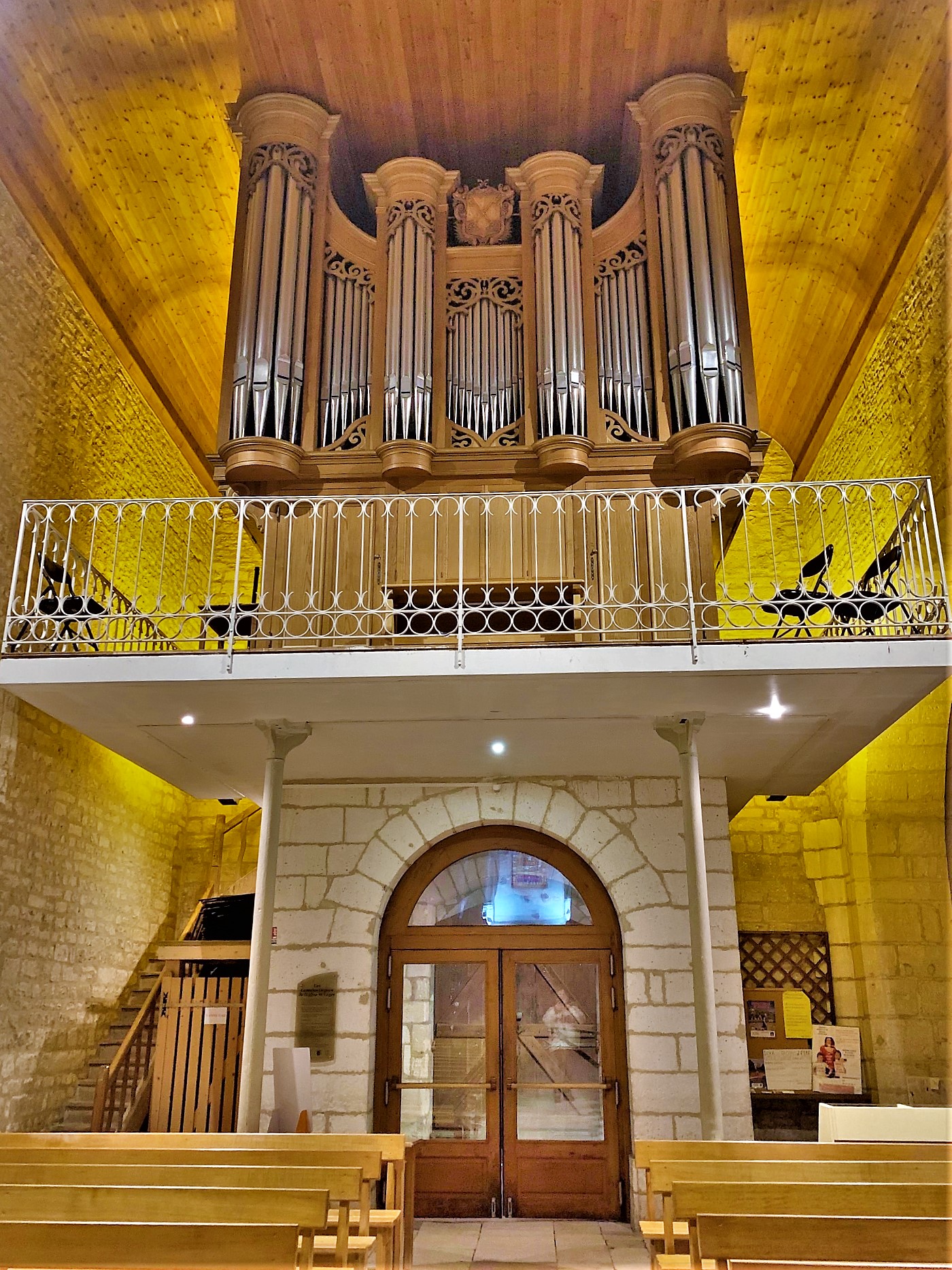 Le charme de l'incohérence architecturale, témoin des différentes périodes de constructions. L'église primitive du 12ème siècle a presque disparue, elle-même et les reconstructions ont souffert des conflits militaires qui ont émaillé les siècles. On y entre par un portail ouvert dans une façade qui annonce fort bien les juxtapositions architecturales. Ces dernières donnent un charme particulier à l'édifice par leurs incohérences. Elles éveillent la curiosité et offrent finalement au visiteur une certaine intimité. Un orgue à l'histoire originale a été installé. C'est l'oeuvre ultime de Ivan Peychès (1906-1978), chercheur scientifique de génie mais aussi artiste plasticien, musicien et compositeur. Brillant innovateur dans le domaine des sciences-appliquées, il construira cet instrument dans son salon en dix ans pendant sa retraite.