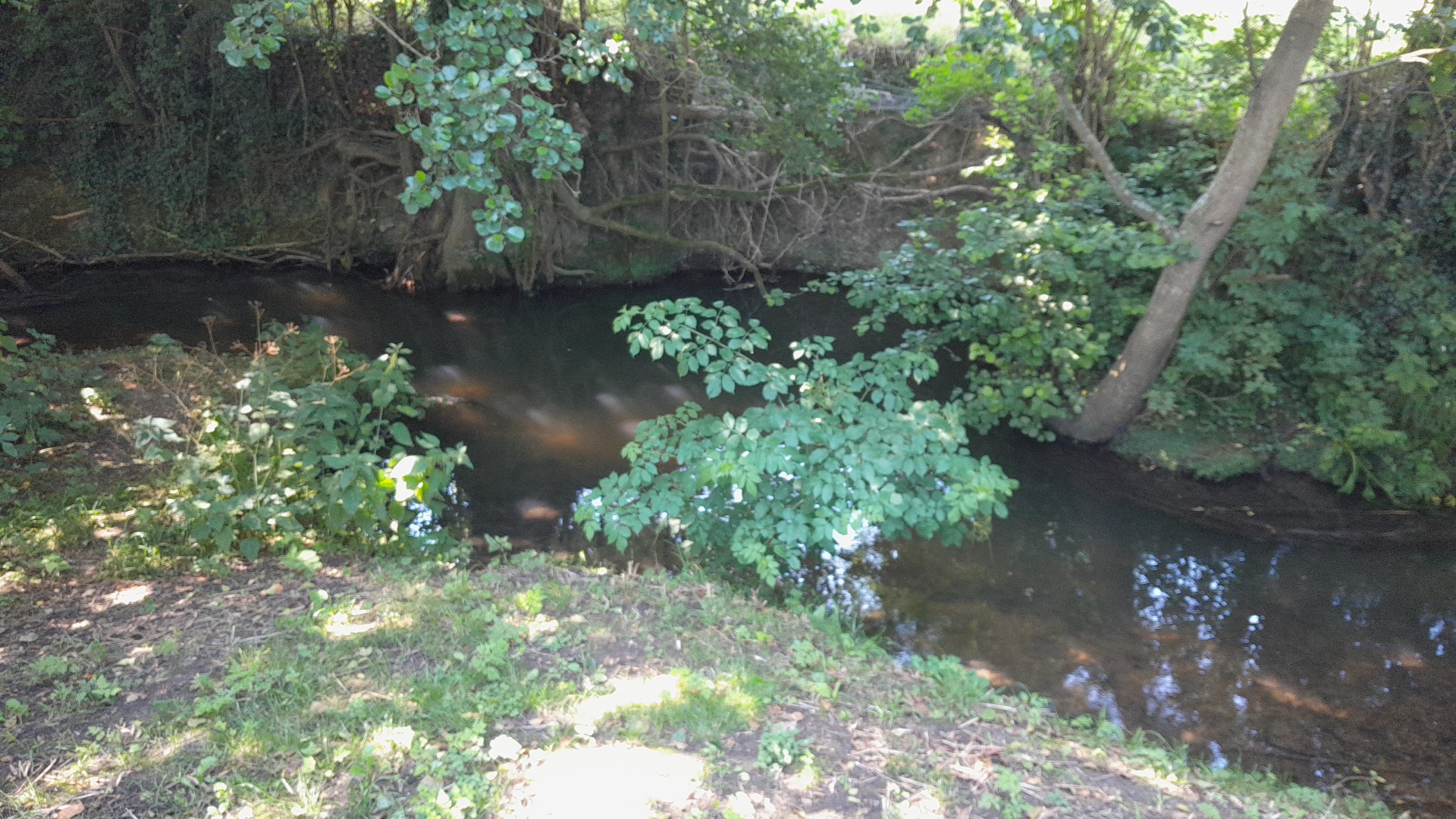 Petit endroit calme pour pique-nique. Avec table terrain de pétanque au bord d'une rivière