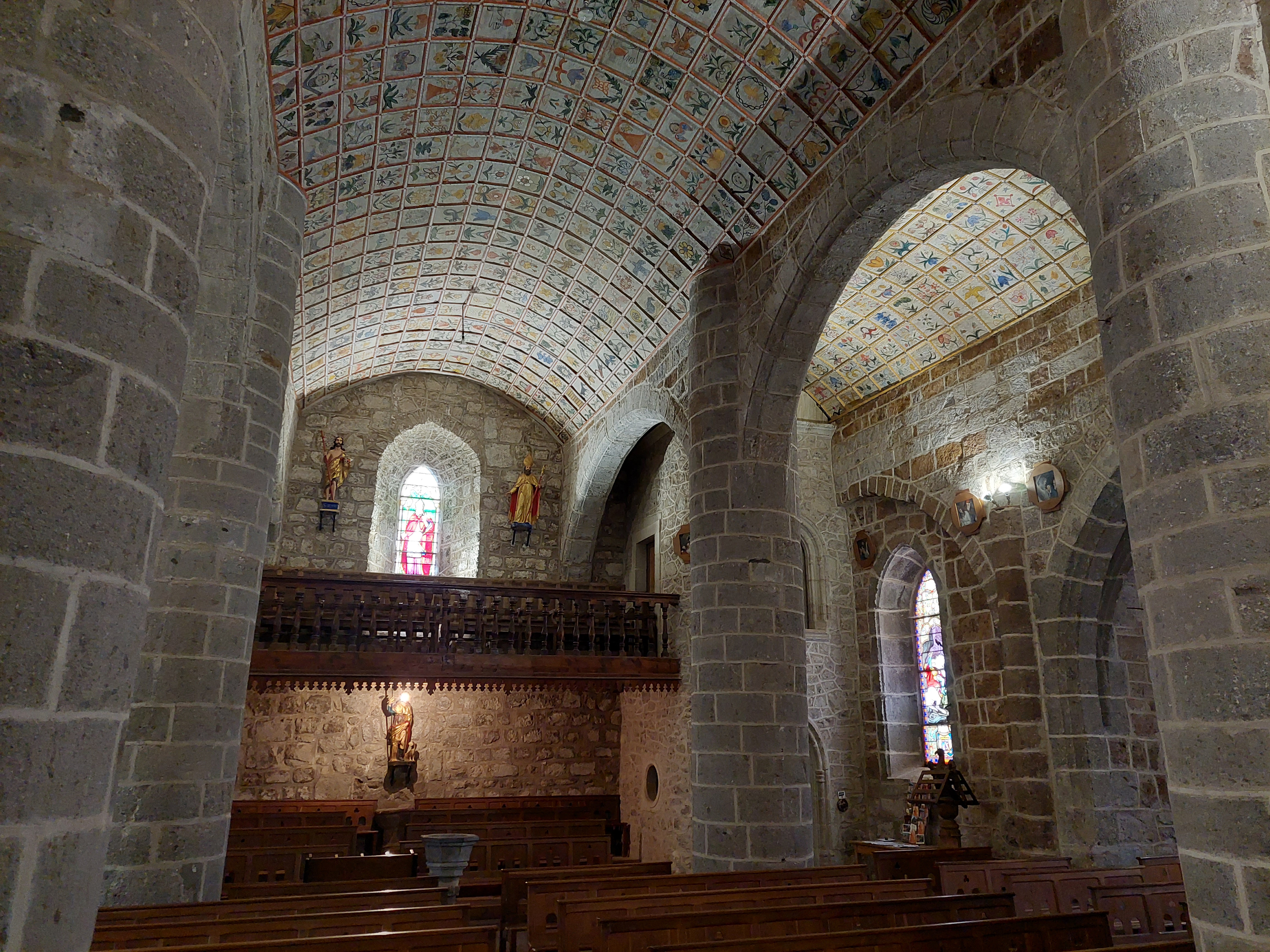 Superbe église romane restaurée et authentique. Toit de Lauzes, plafonds peints très originaux. A voir sans aucune hésitation.