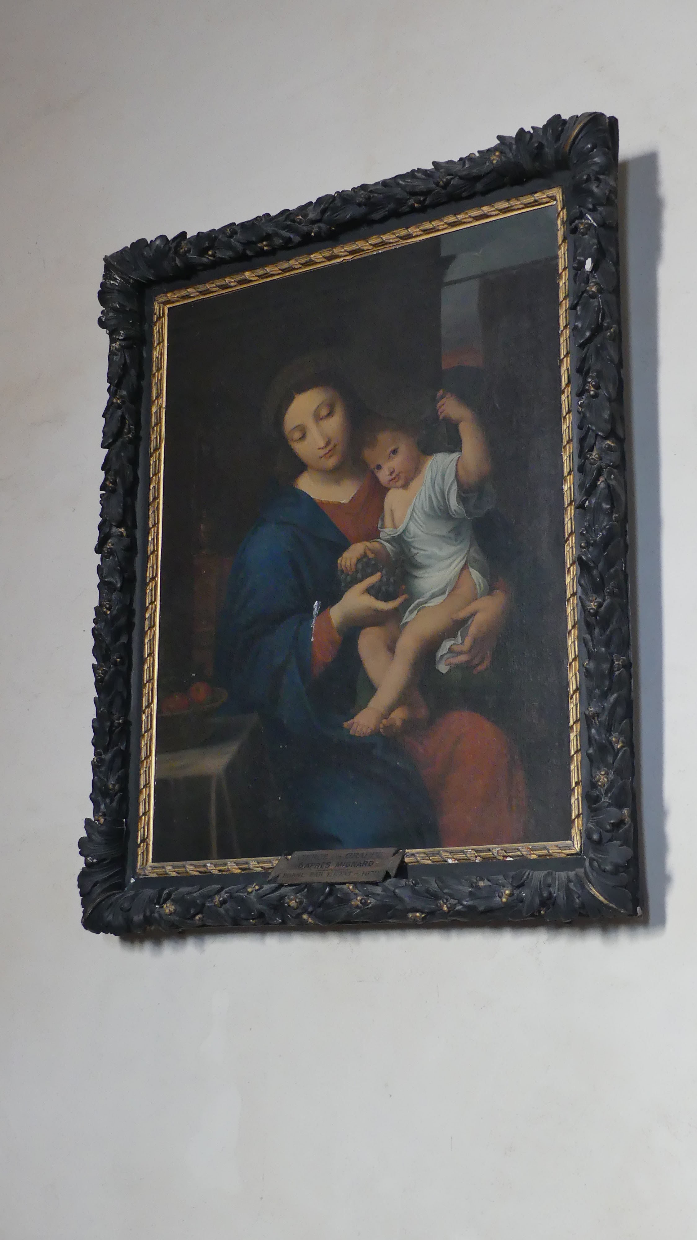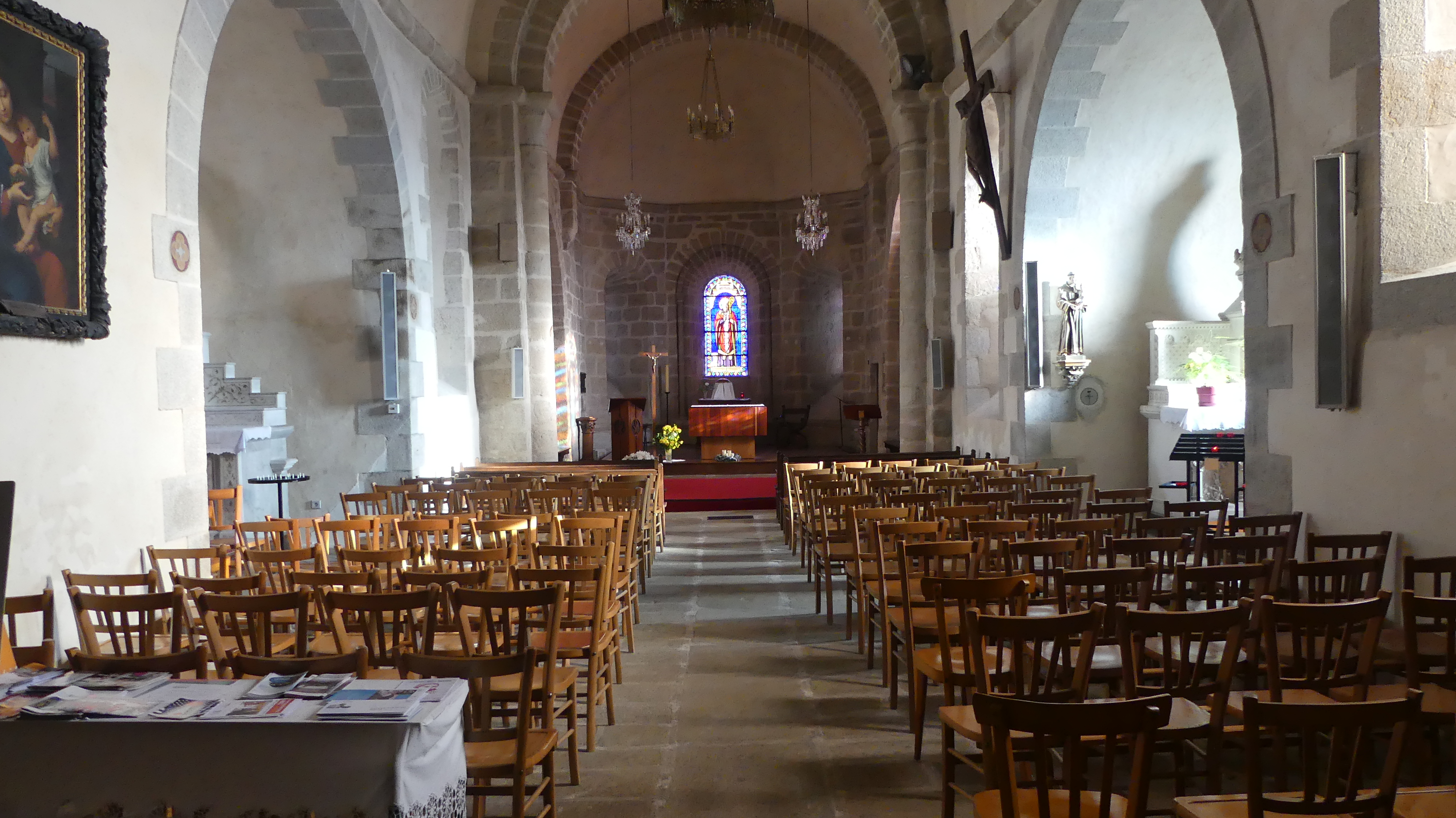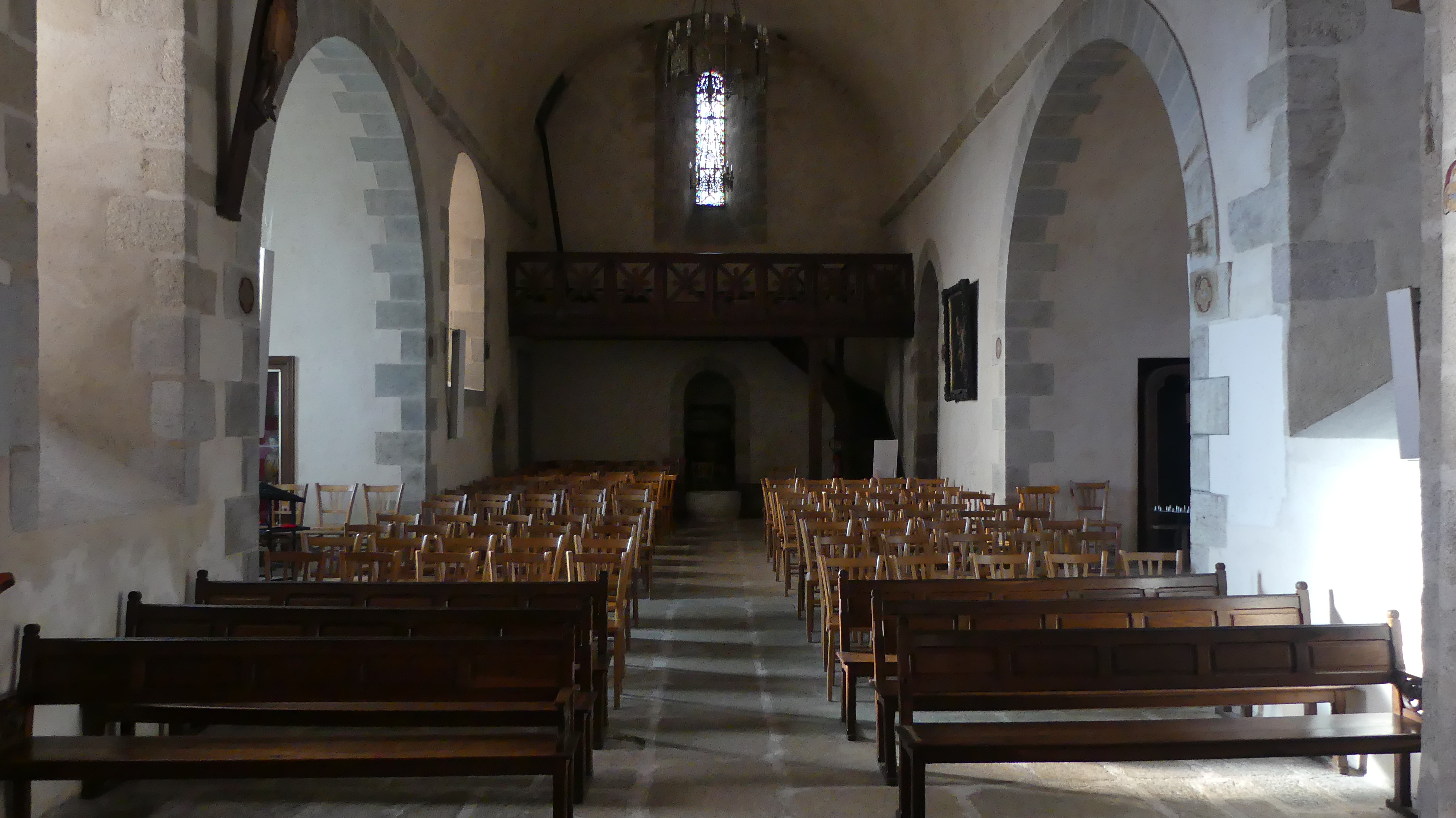 Bizarre dont a été orienté cette église, le clocher se retrouvant face à une maison. Du coup, il est difficile de la prendre en photo sans avoir l'impression qu'il manque quelque chose. Son clocher un simple mur abritant les 2 grosse cloches. On y pénètre par une entrée couverte placée sur le côté. Son intérieur est classique, avec un très joli hôtel en bois. Cependant sur la droite, l'une des 2 chapelles renferme une vitrine remplie de reliques bien gardées.