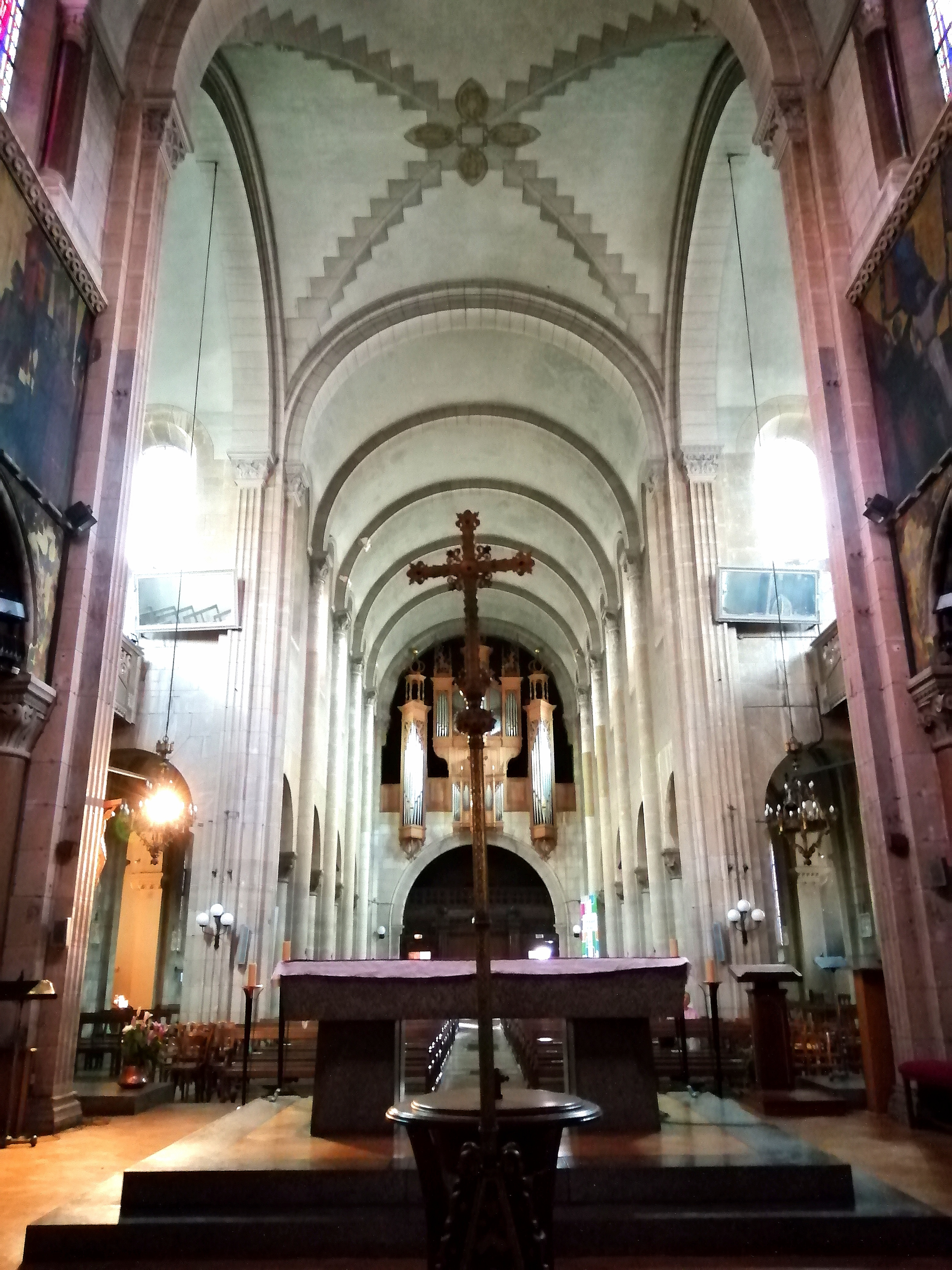 Eglise de quartier, vaste parvis lumineux, orgues de grande qualité