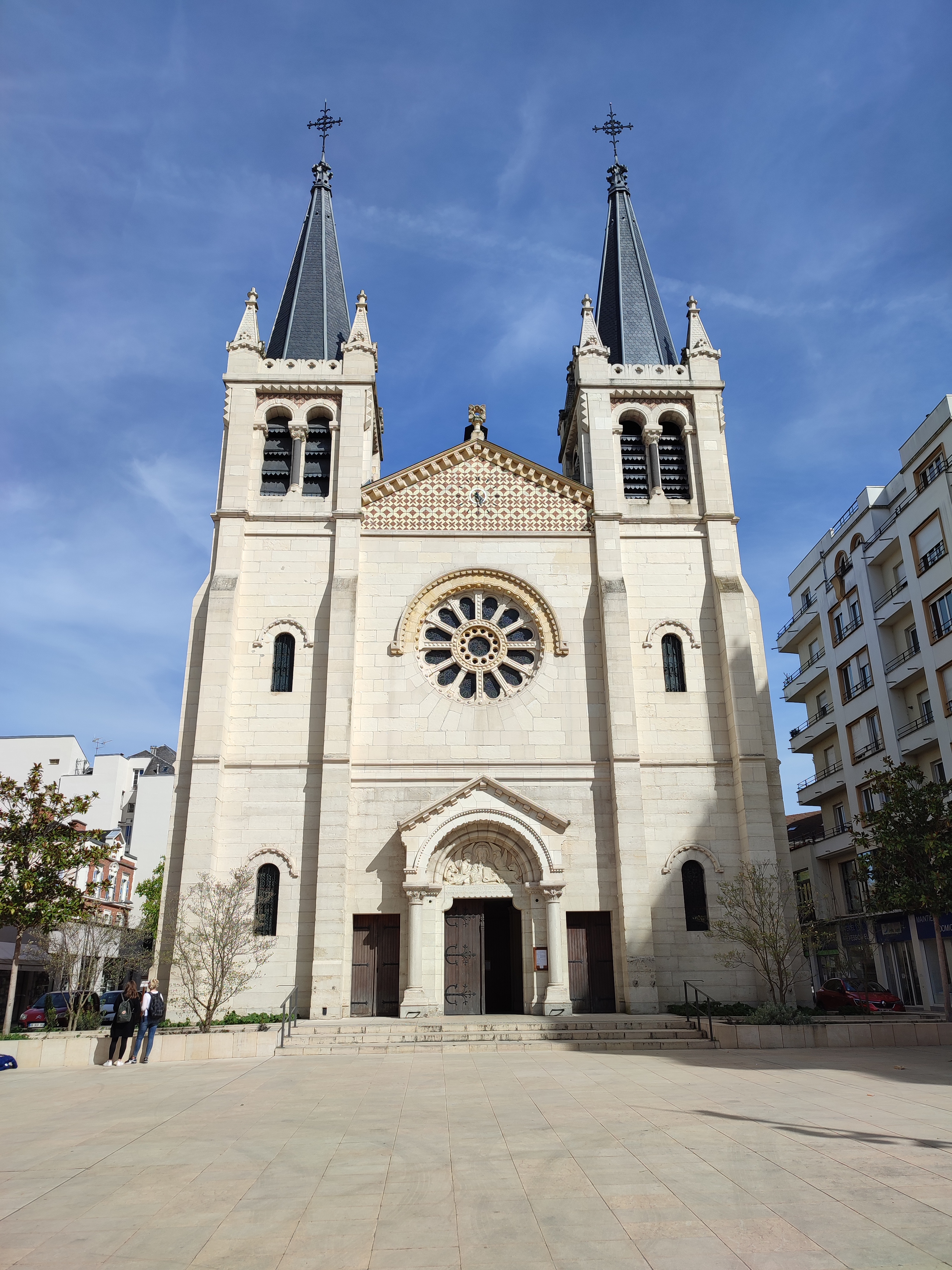 En passant par le Passage Giboin depuis le Parc des Sources, vos yeux s'éclaireront car vous verrez cette belle église Elle est située dans un quartier commerçant bordé de boutiques, elle se dresse là au calme et mérite une visite.