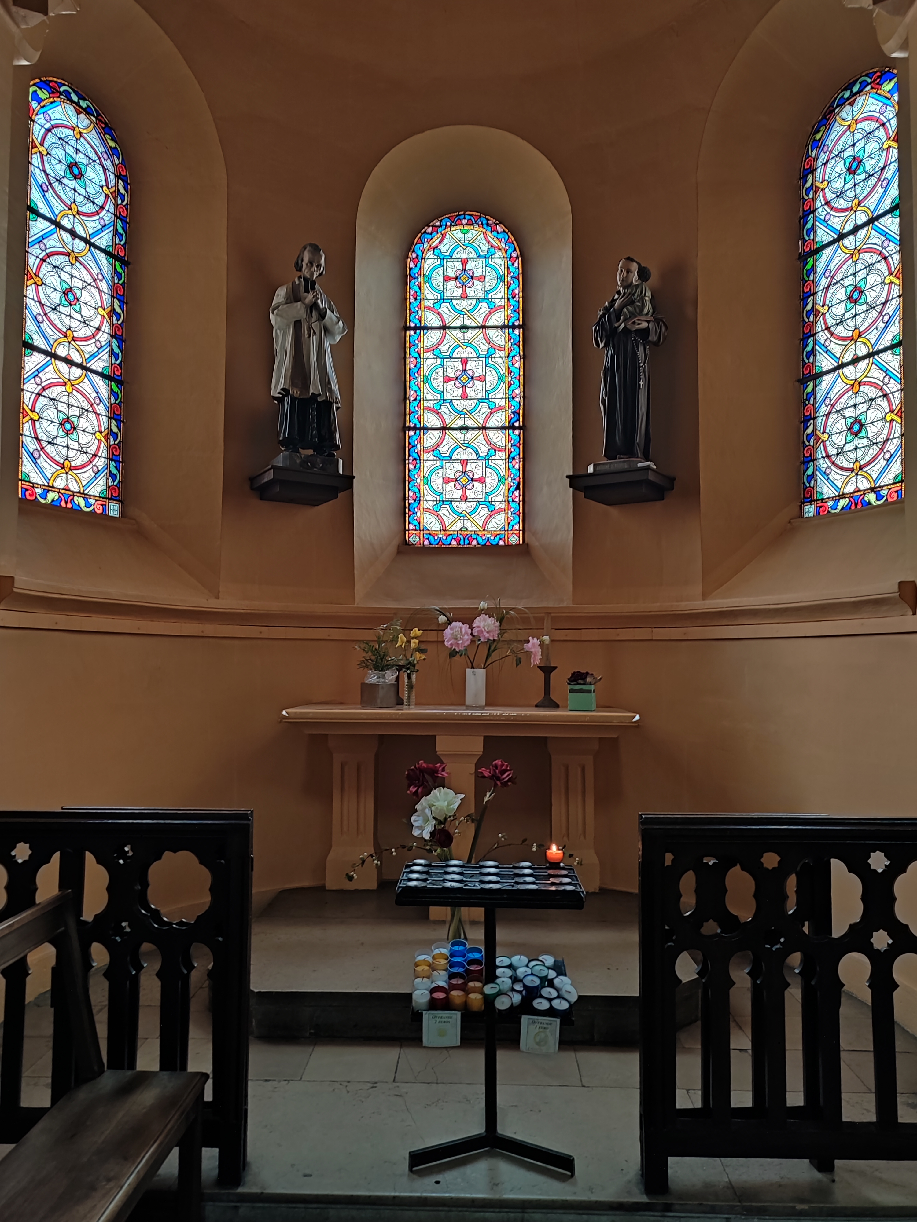 Des chapelles où il fait bon prier, notamment avec ND de Lourdes et devant le St Sacrement.
