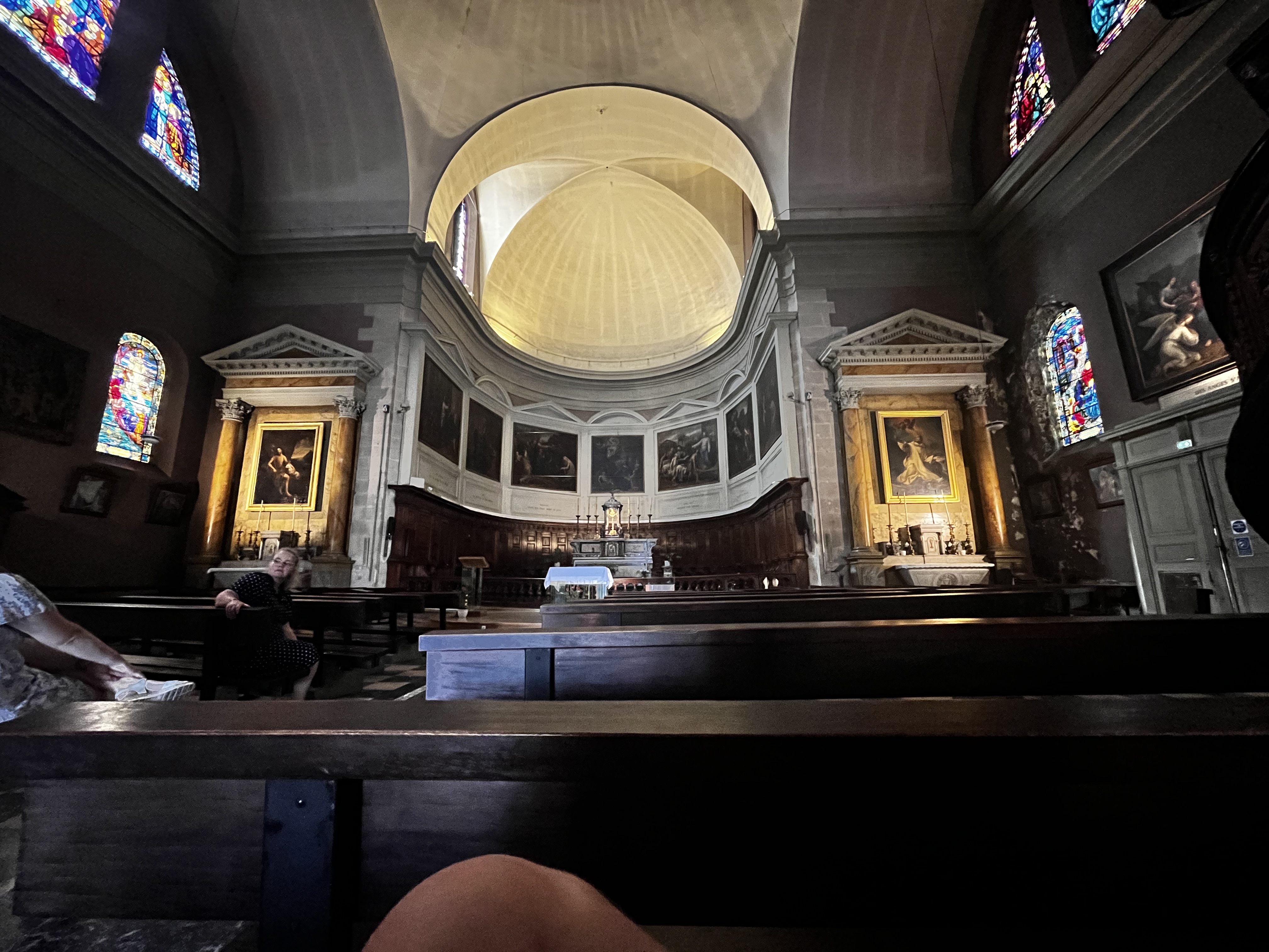 Église avec un chœur bizarre (sièges ronds pour le clergé). Belle visite.