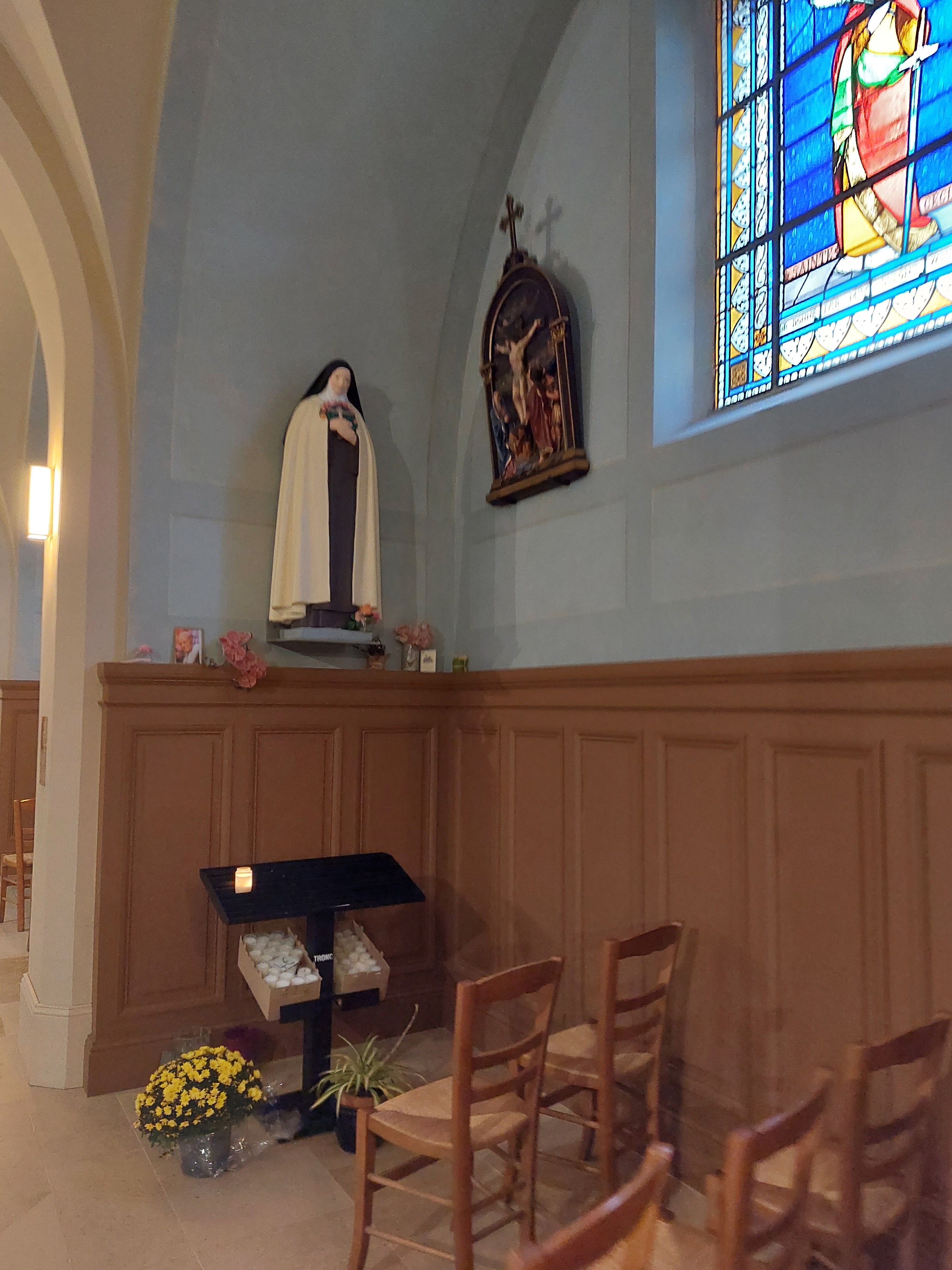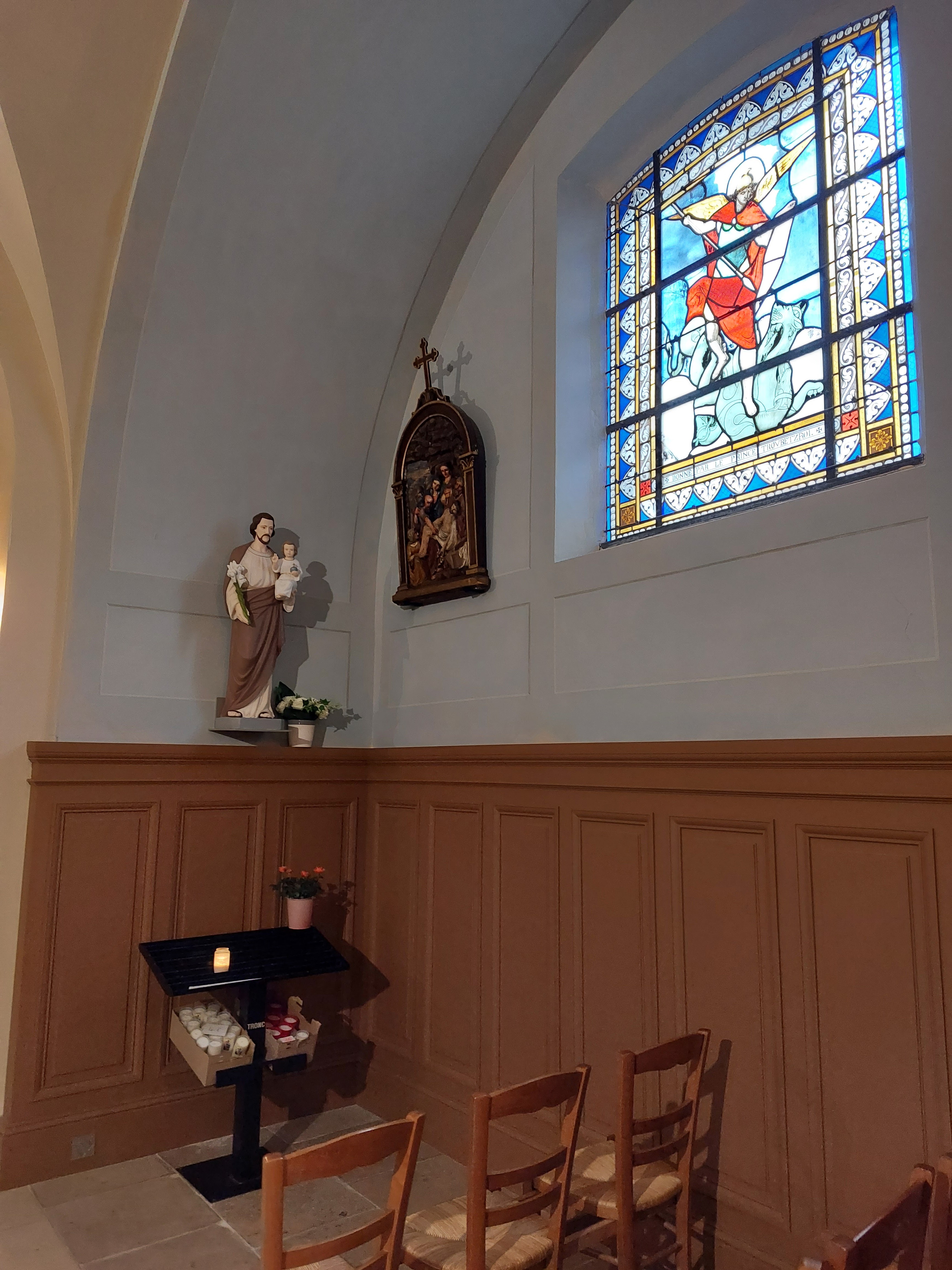 C'est Une Paroisse qui a beaucoup de Charme , l'ambiance fait que très Vite , On est en parfaite Communion avec le Saint Esprit : Le désir de prier , le désir de Chanter Dieu sans se forcer . le mûr de l'église dégage encore la Sève de la France Chrétienne qui nous parle , qui nous écoute et qui nous montre les belles Images , les quatre Saisons de Ma Chère France féerique . Ici , On n'est pas seulement avec Saint Joseph Ou Marie , mais les mottes de terre , les gerbes de blés , puis la Cloche sonne , l'heure du Vêpres : Je Suis Amour , peu Importe que tu es , je suis là pour t'aimer . Que la Joie du Christ Soit avec Vous !