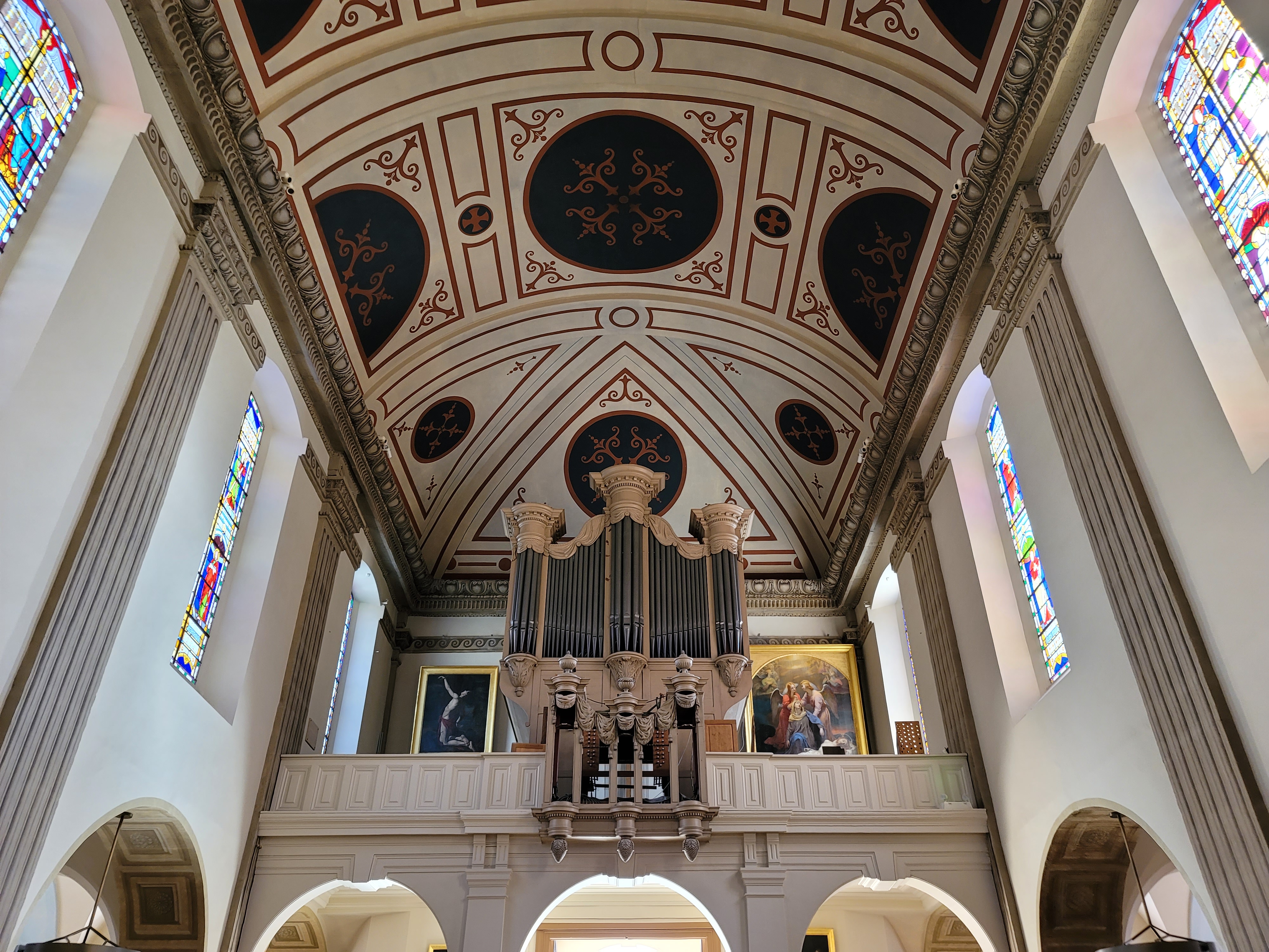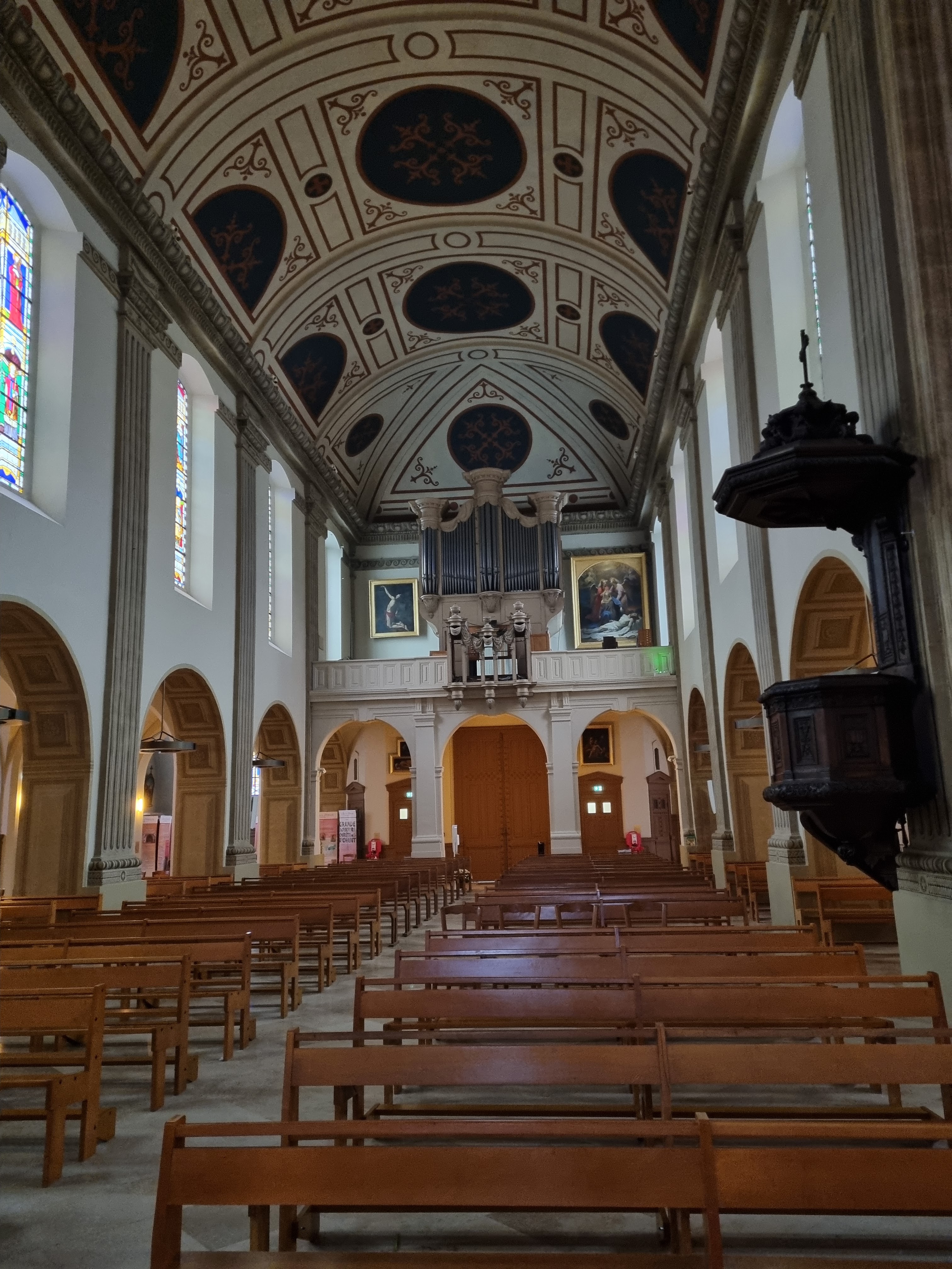 Magnifique église au centre de Fontainebleau. Le Jolie plafond.