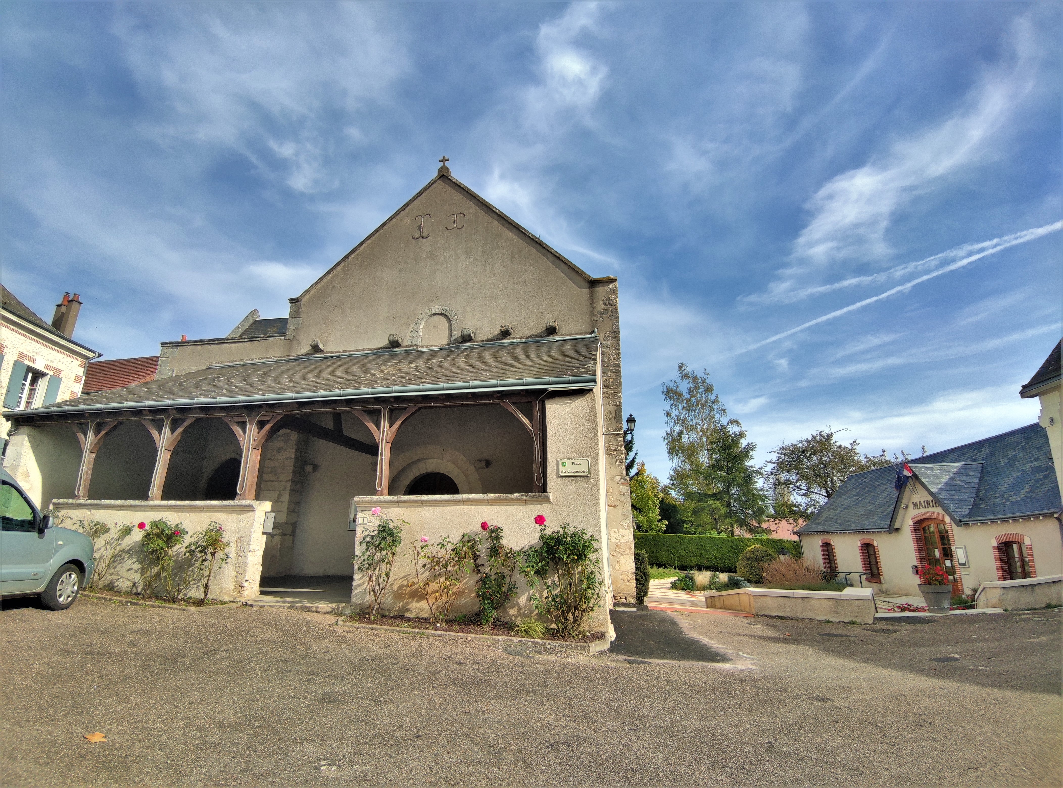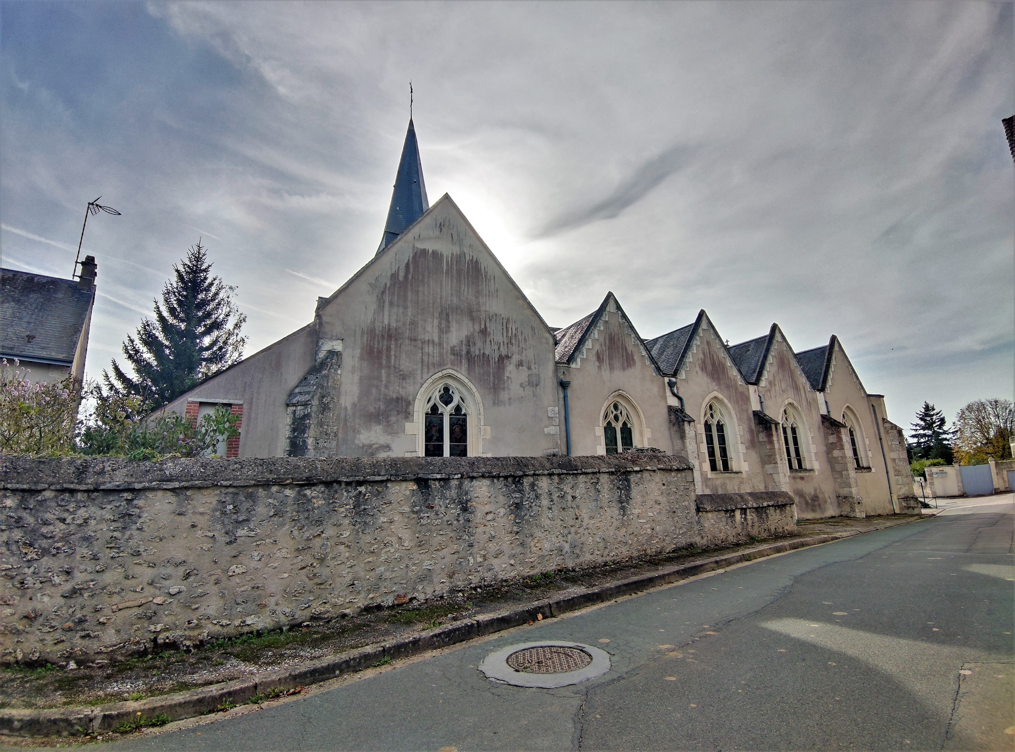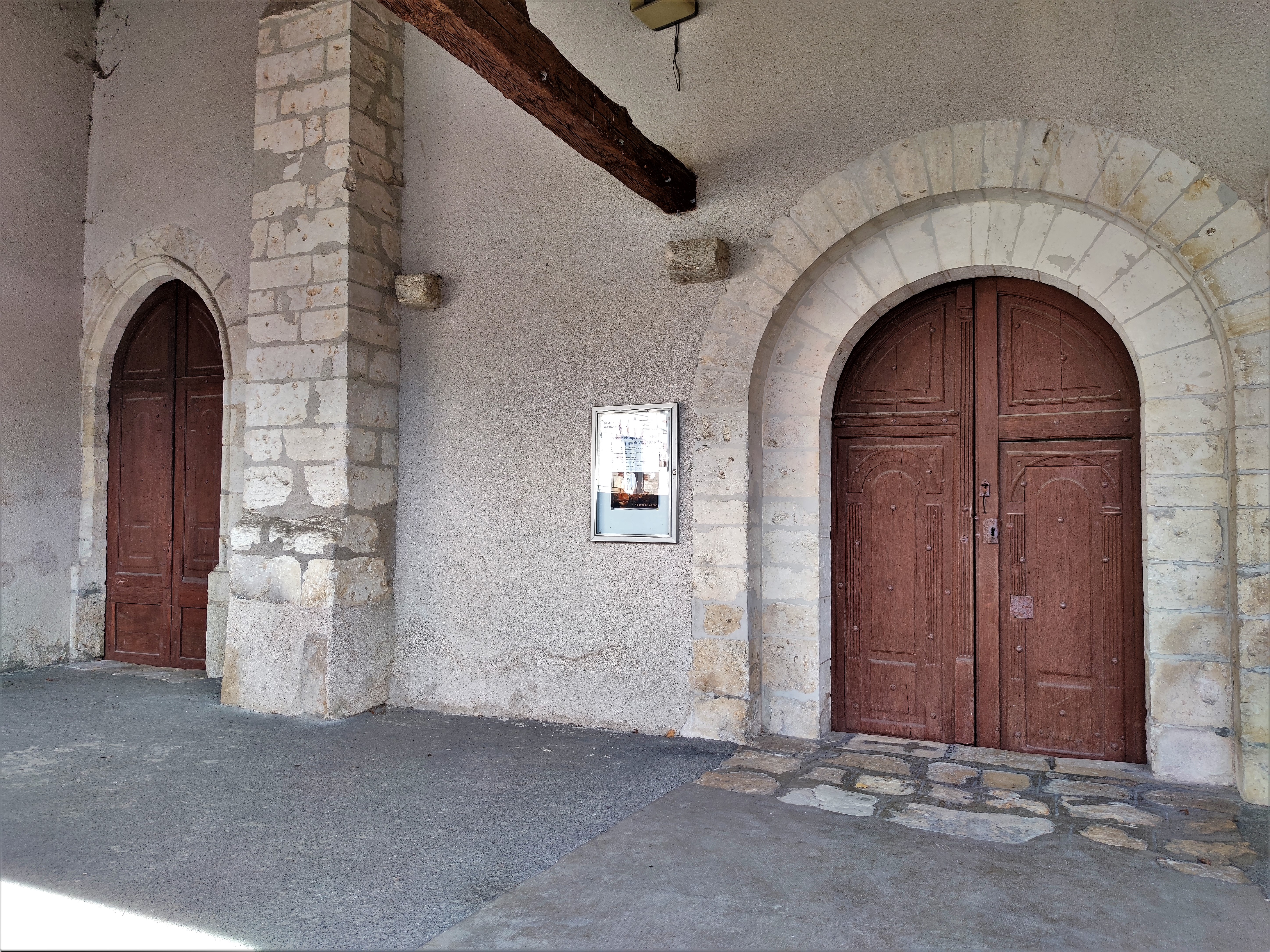 Le centre du village est agréable, l'église est située en face de la mairie, l'ensemble est charmant. L'église accueille les visiteurs à l'Ouest, par une salle des conversations, nommée caquetoire, ballet ou galerie selon les régions. Une série de pignons surmontent le mur gouttereau Nord. Pour entrer dans l'église, il faut s'adresser à la mairie, en téléphonant avant si possible. Pour ma part, je fus déçu de la trouver fermée, sans aucune indication des possibilités de visite. La mairie était fermée, je me suis contenté des extérieurs.